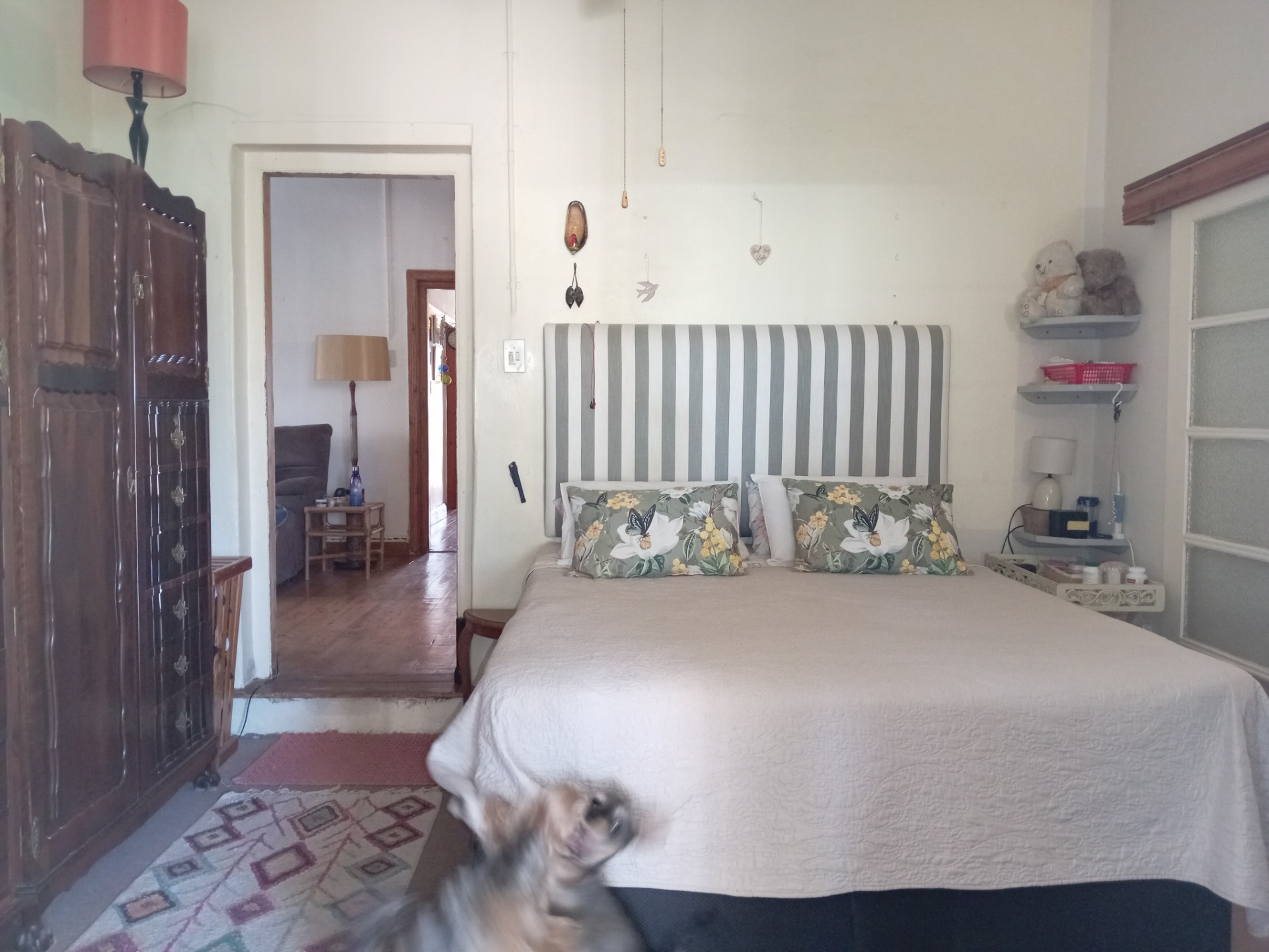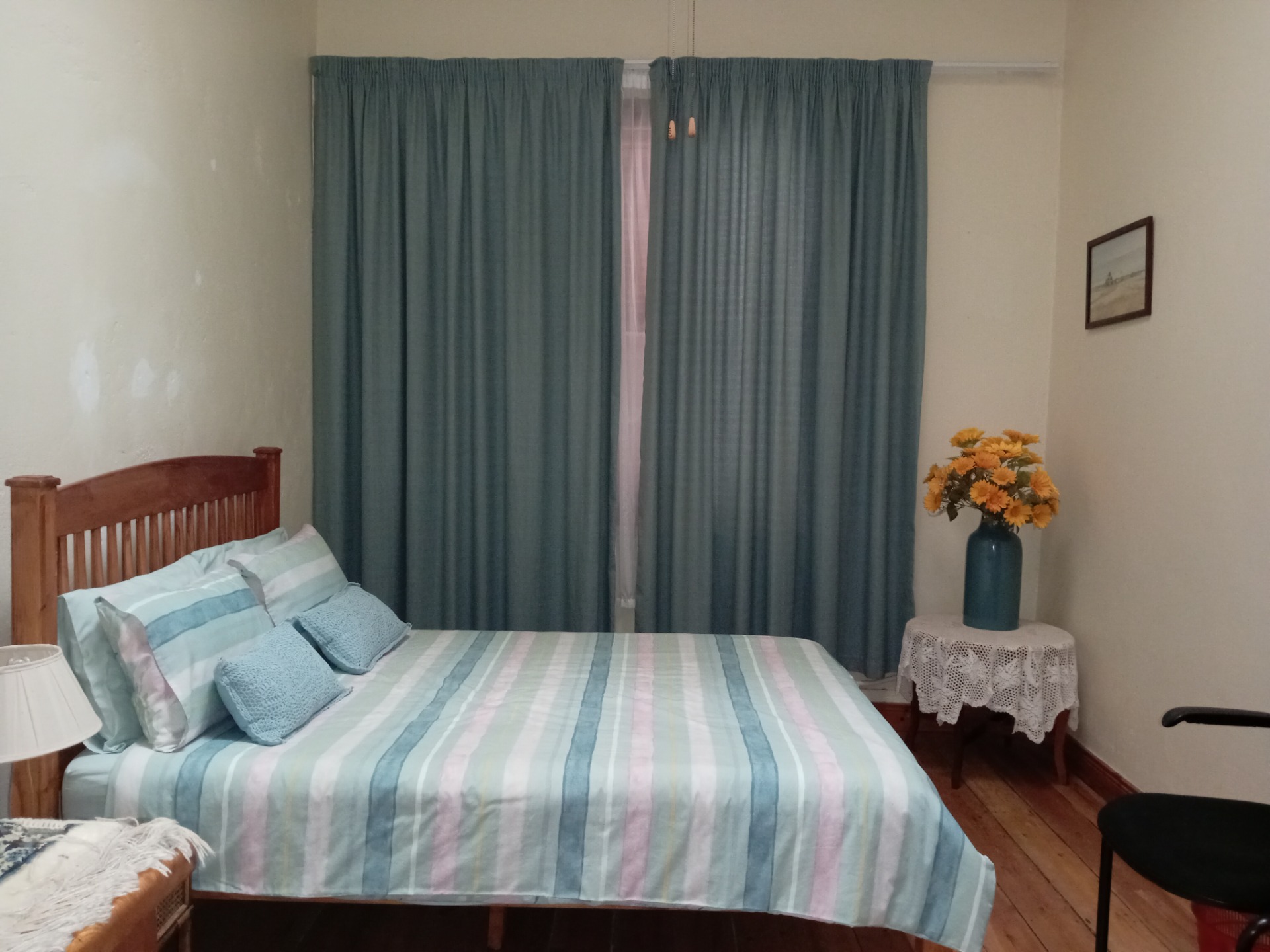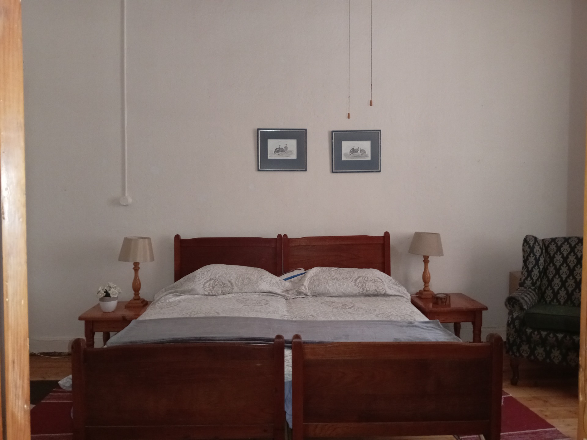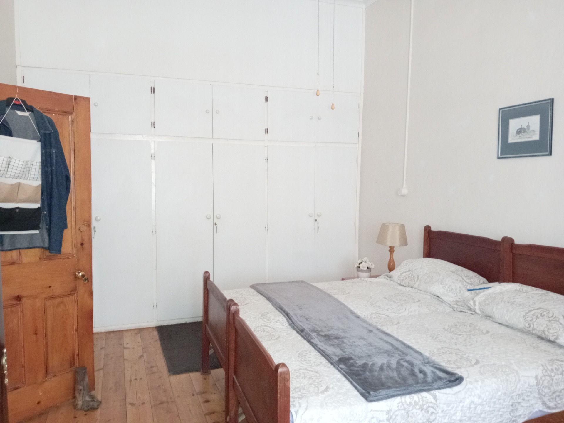 - The bedrooms are elegantly appointed with beautiful wooden floors and charming wooden door panes, enhancing the cottage's classic appeal.
