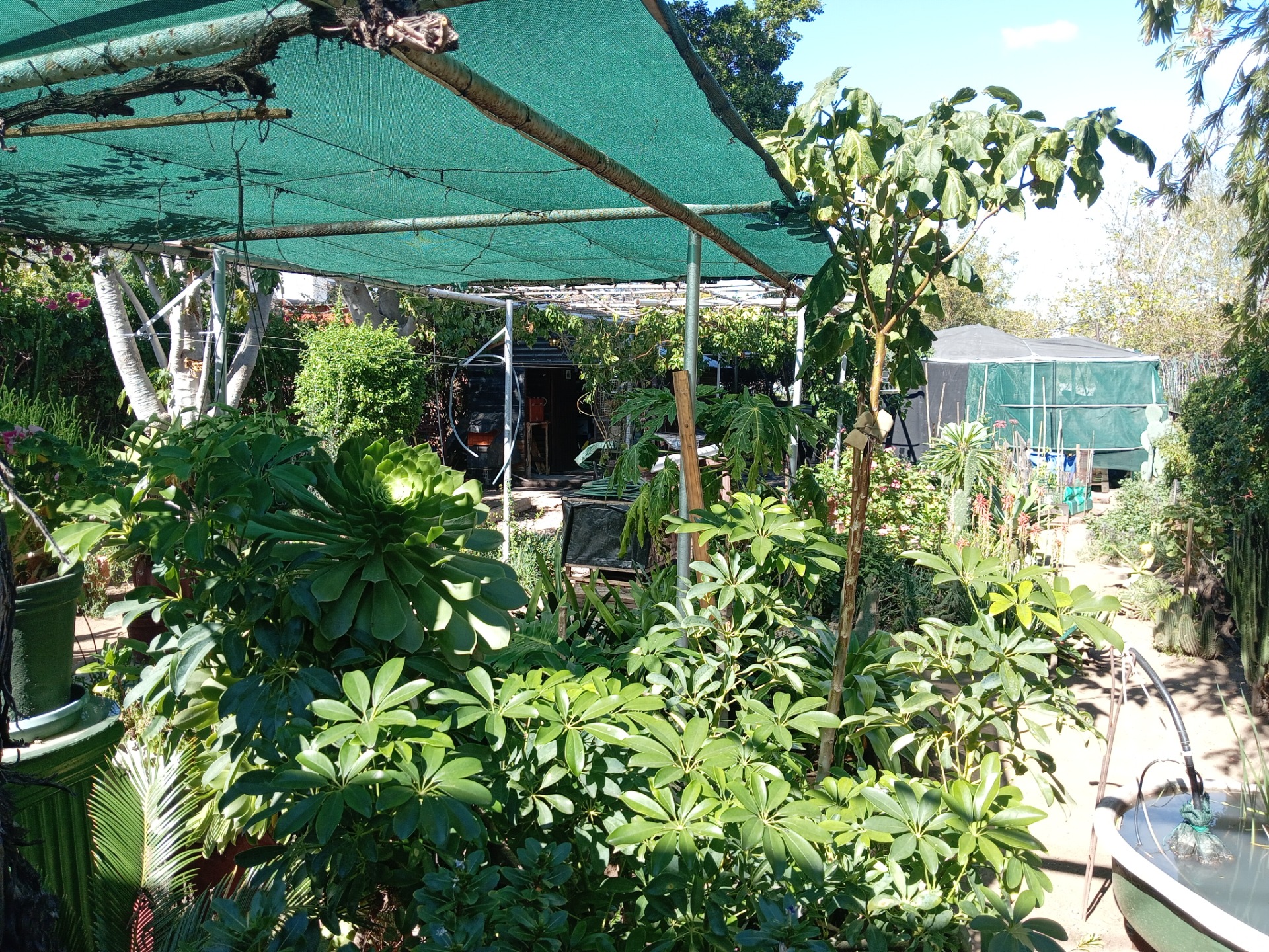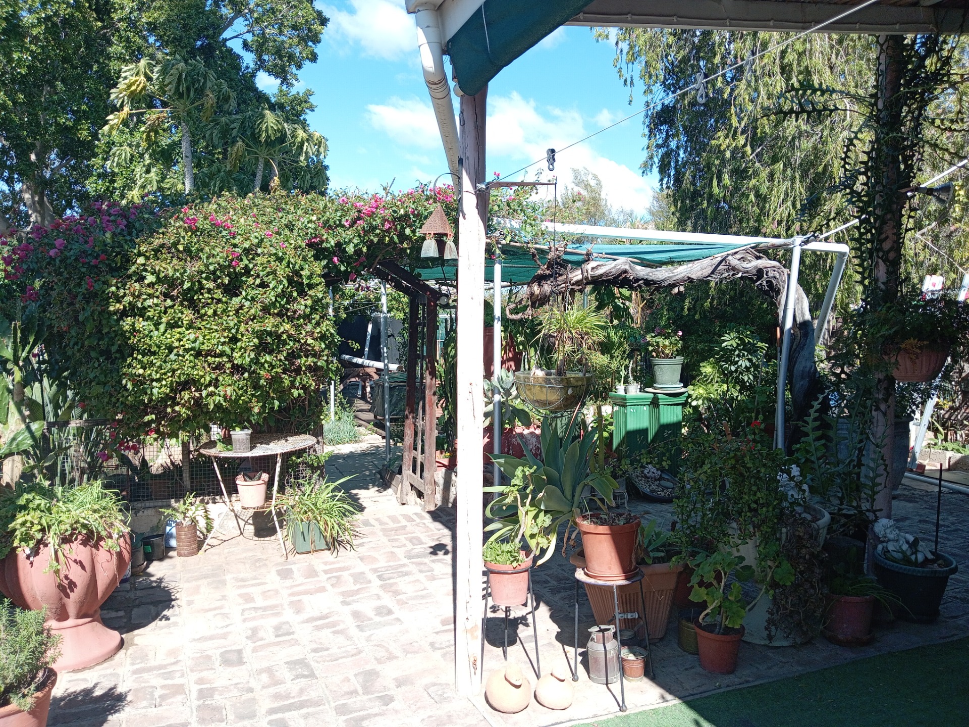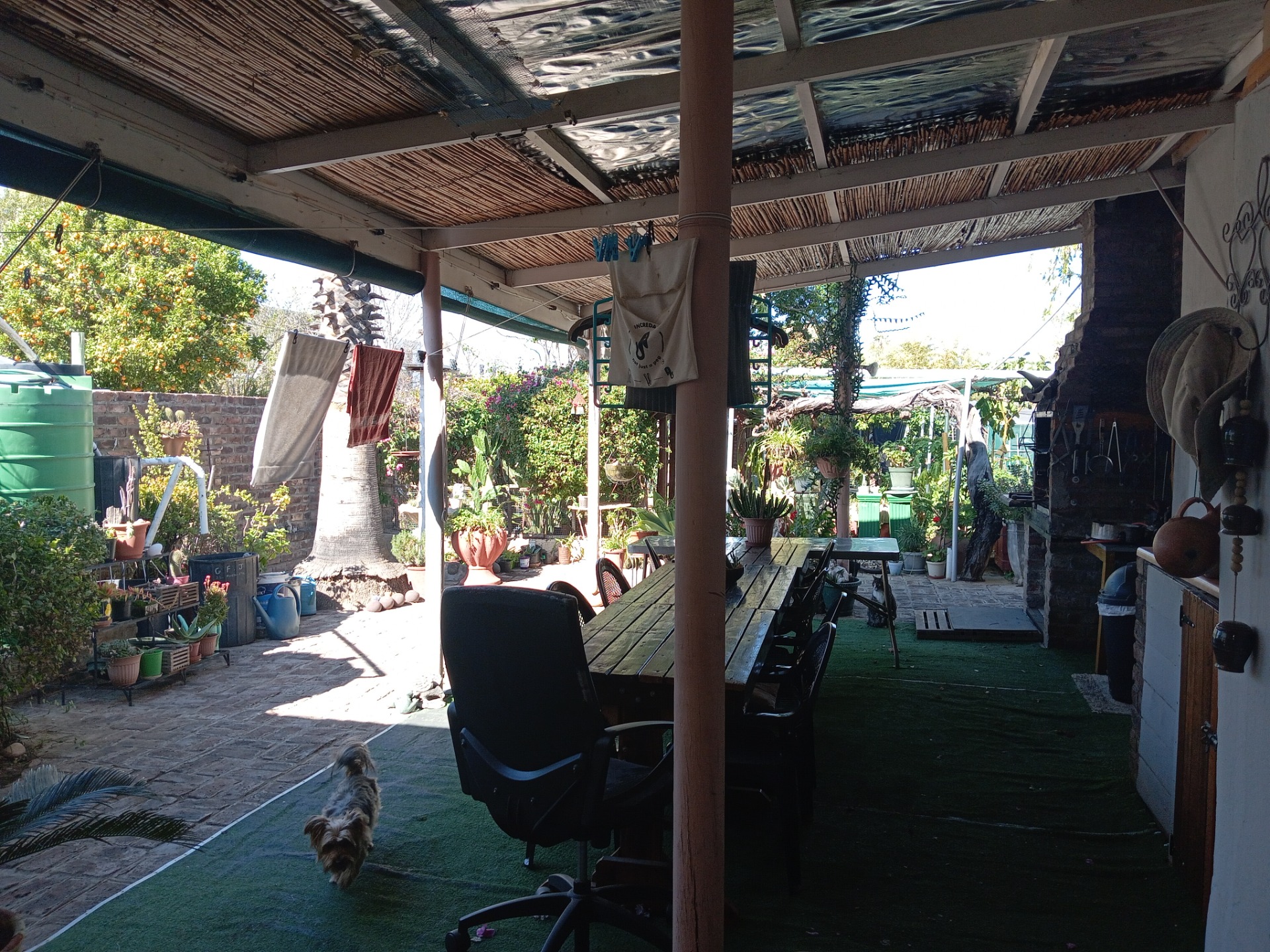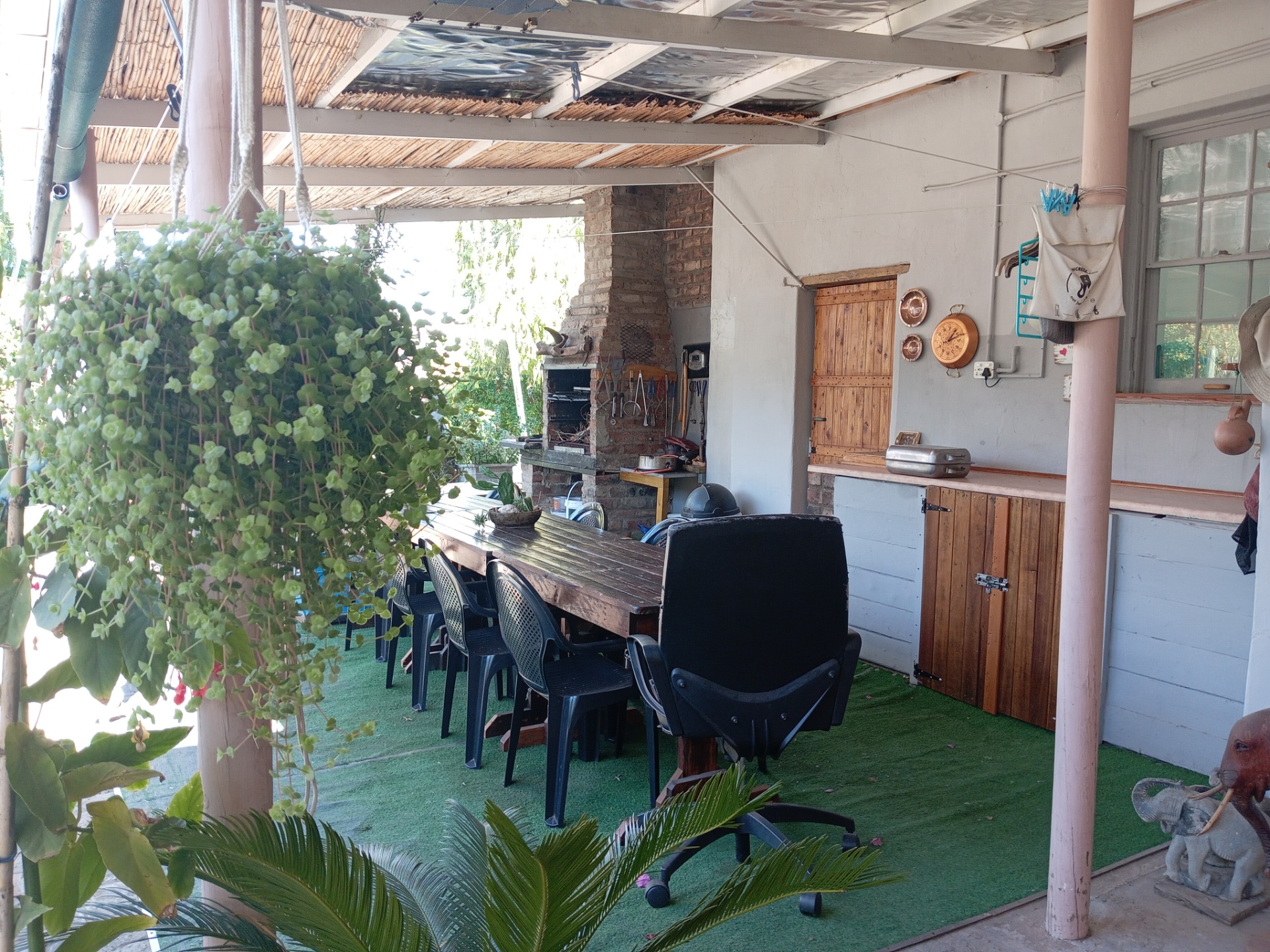 - Step out onto the back stoep and immerse yourself in the tranquility of a lush, established shrub garden. The outdoor entertainment area is ideal for hosting gatherings or relaxing in a serene setting.