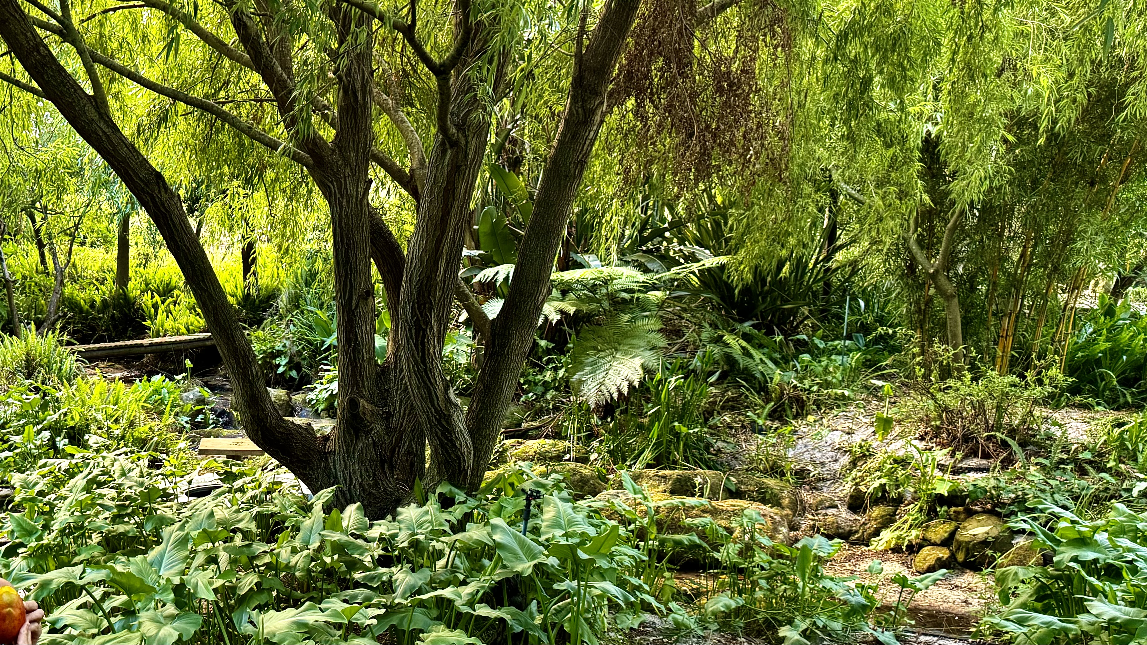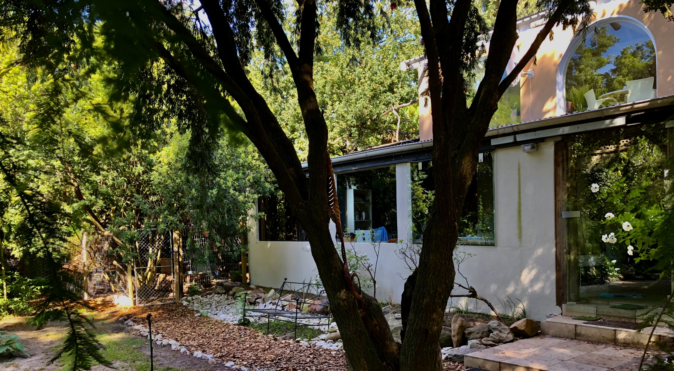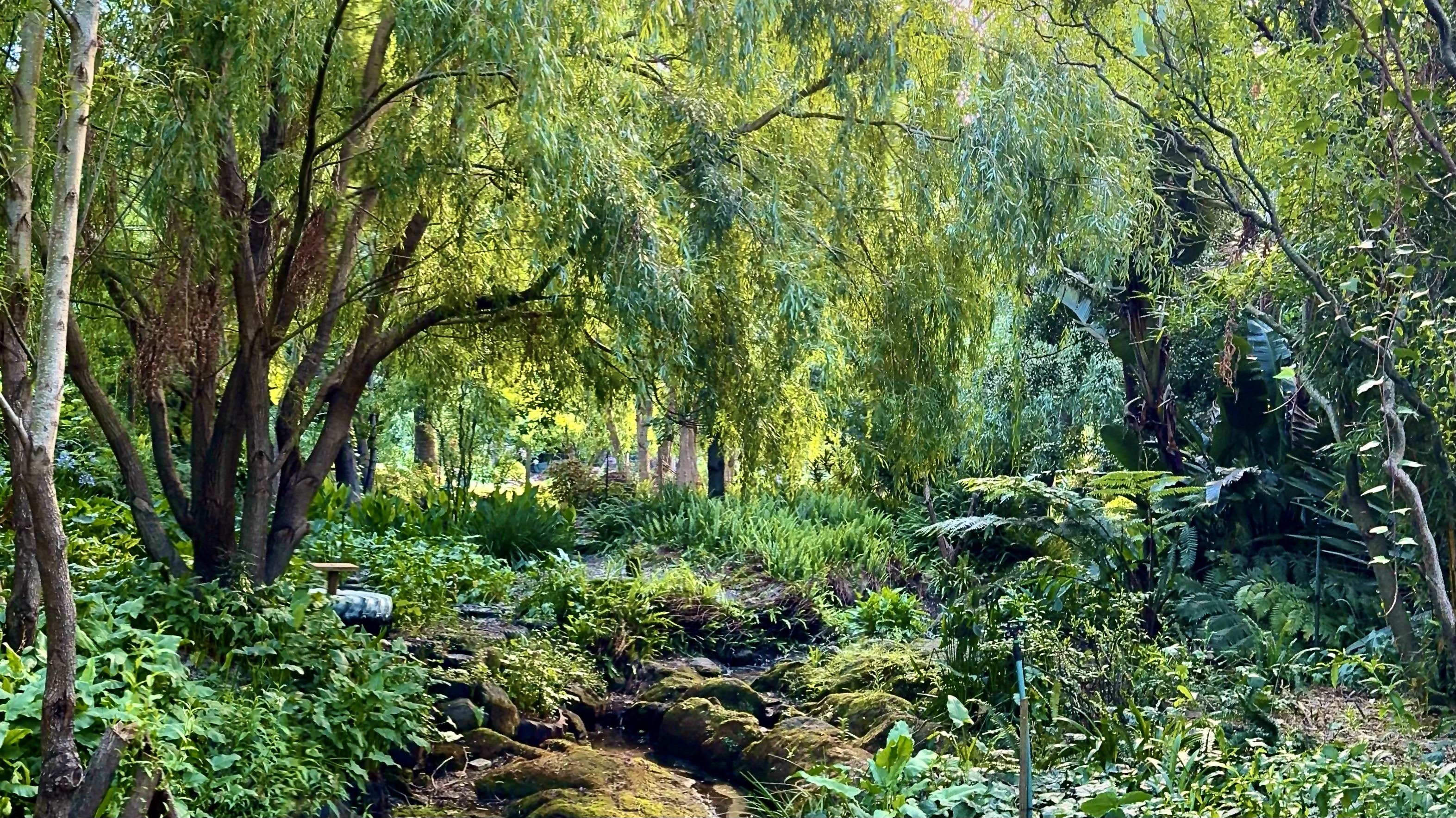 The one-acre garden is a paradise with abundant trees. Perfect area for growing your own vegetables.