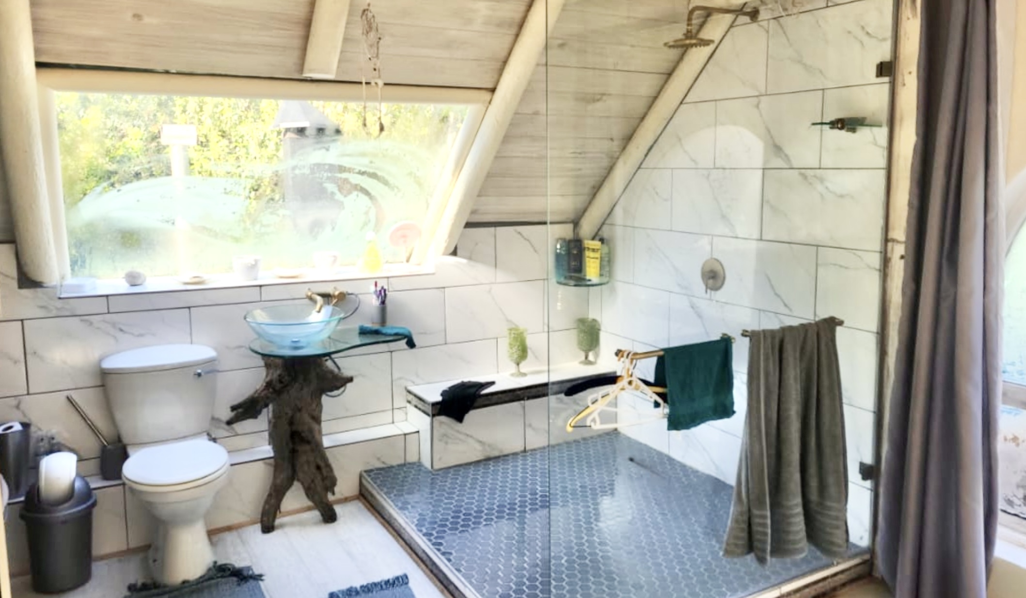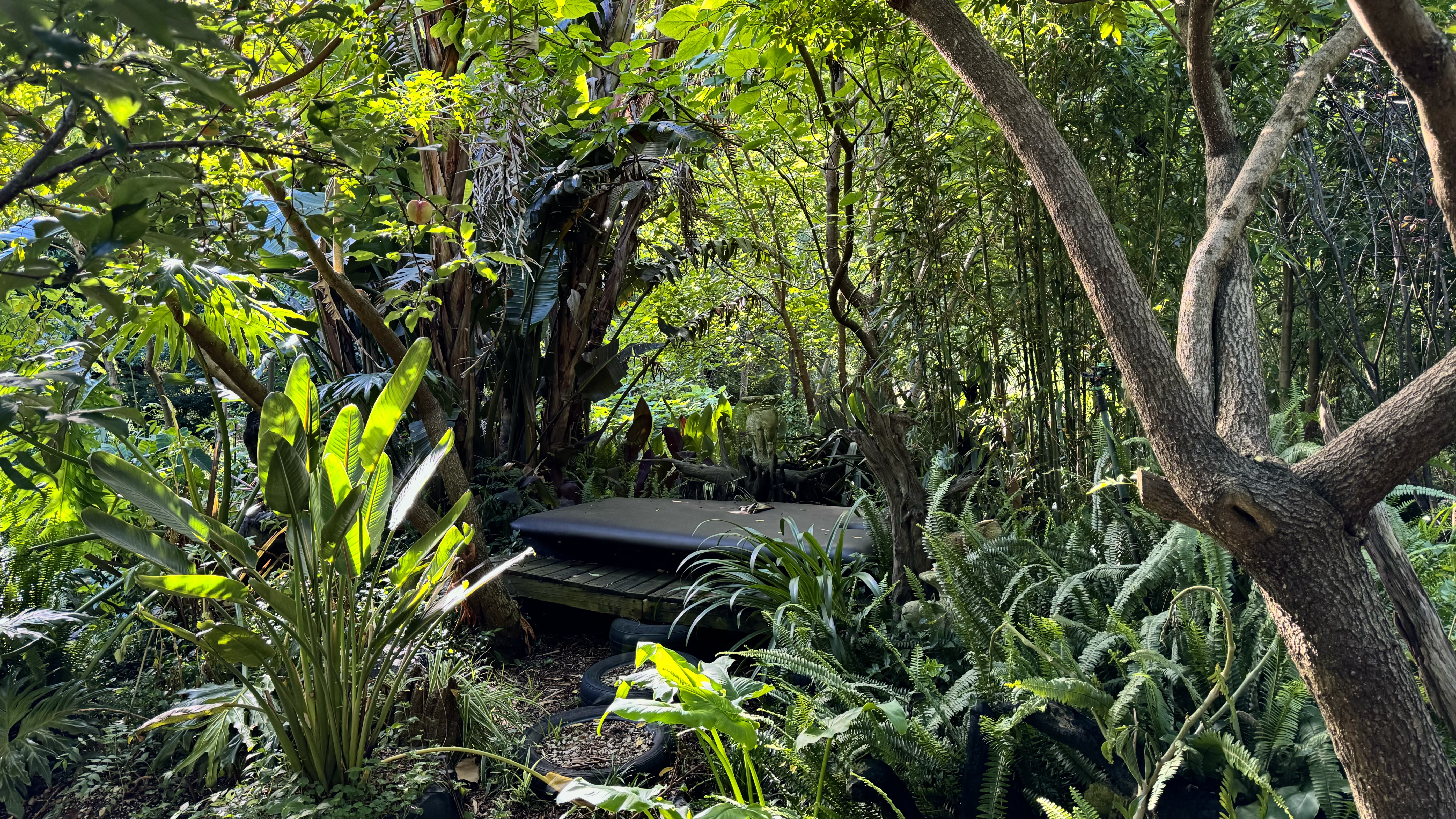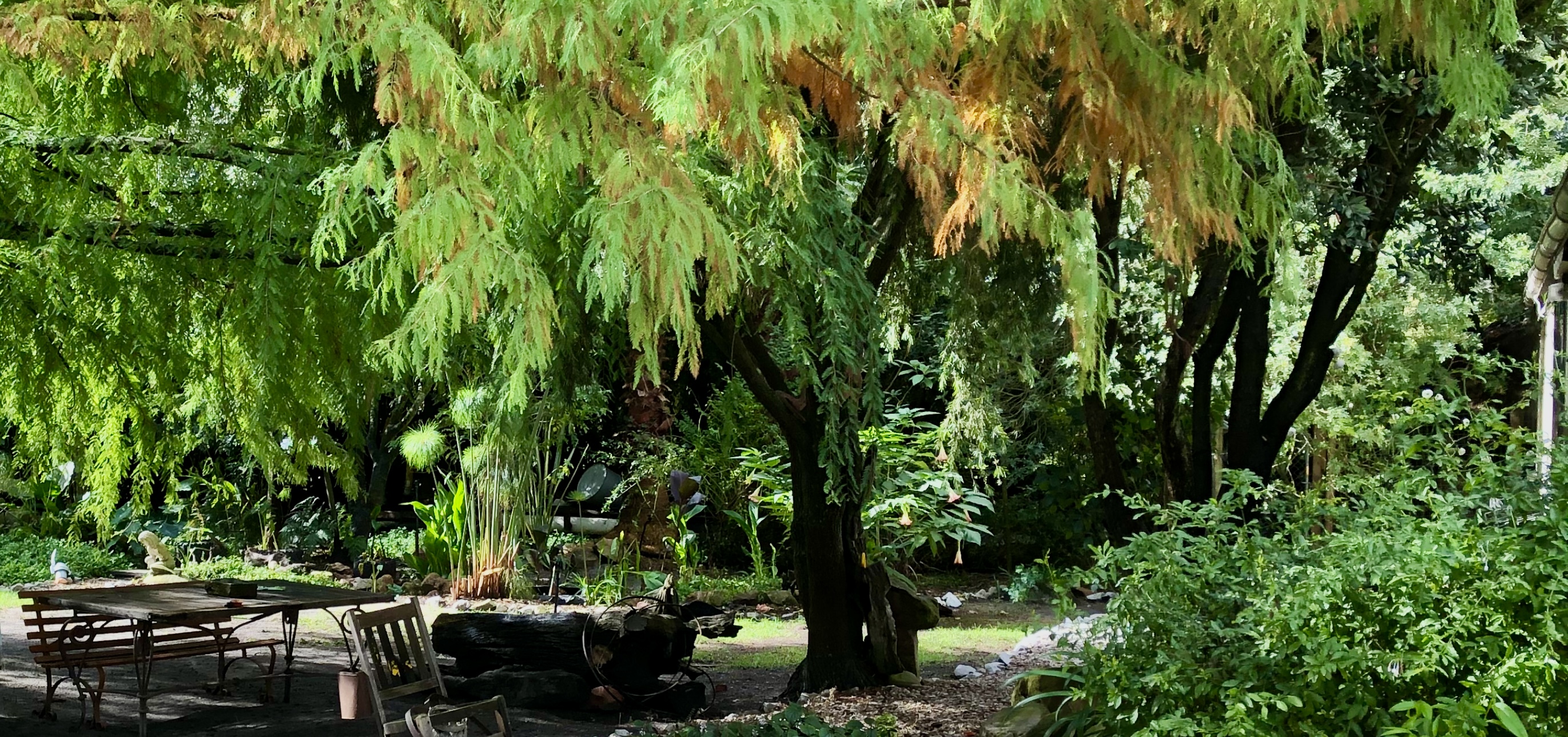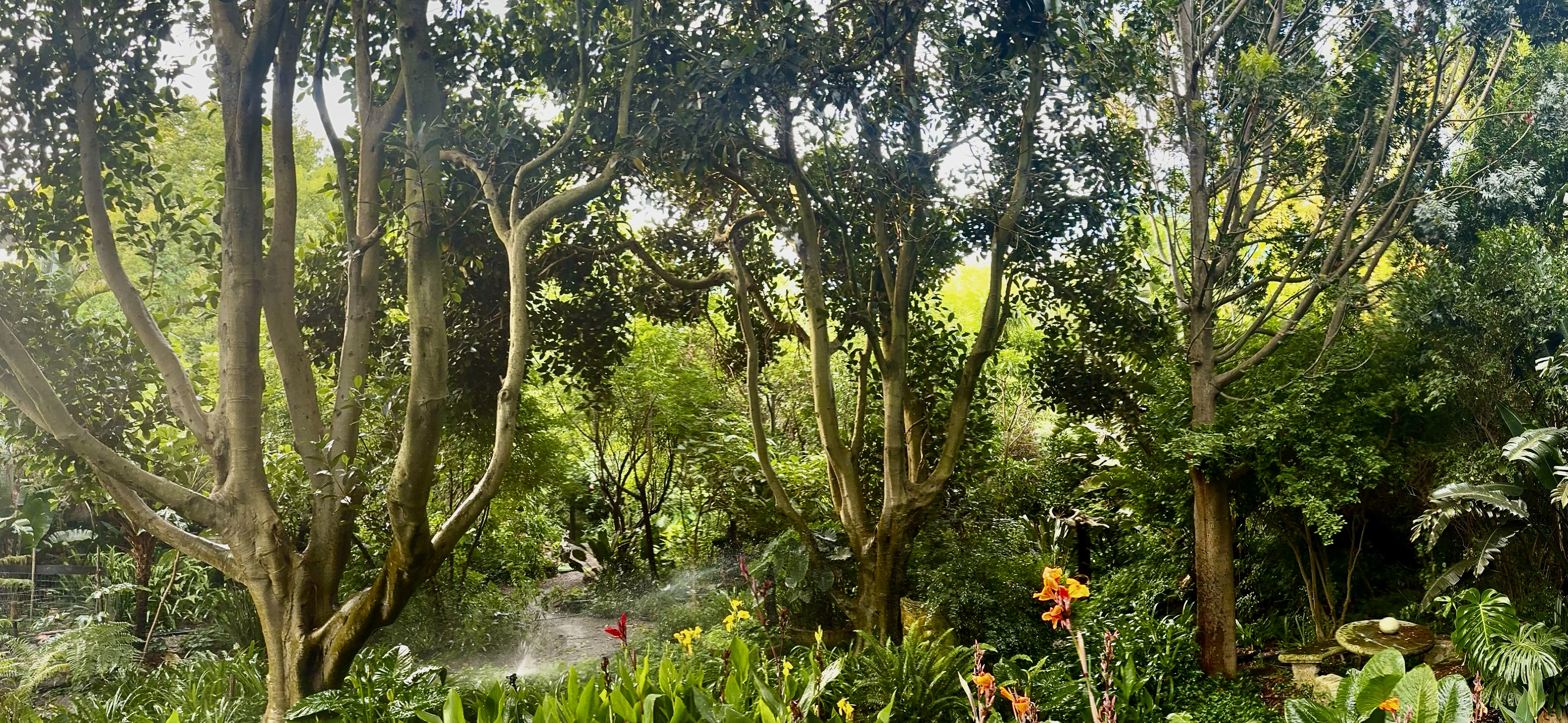 The one-acre garden is a paradise with abundant trees. Perfect area for growing your own vegetables.