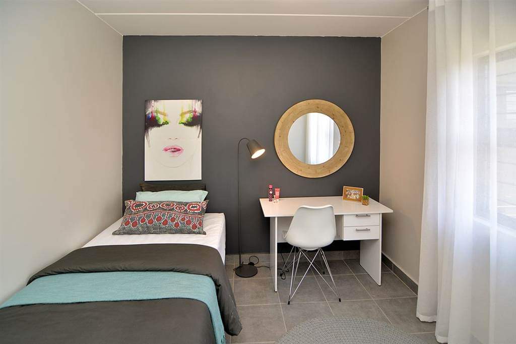 This Modern 2 Bedroom, EDGE certified unit, with 1 full bathroom is equipped with a solar geyser, prepaid electricity and DSTV and fibre ready.