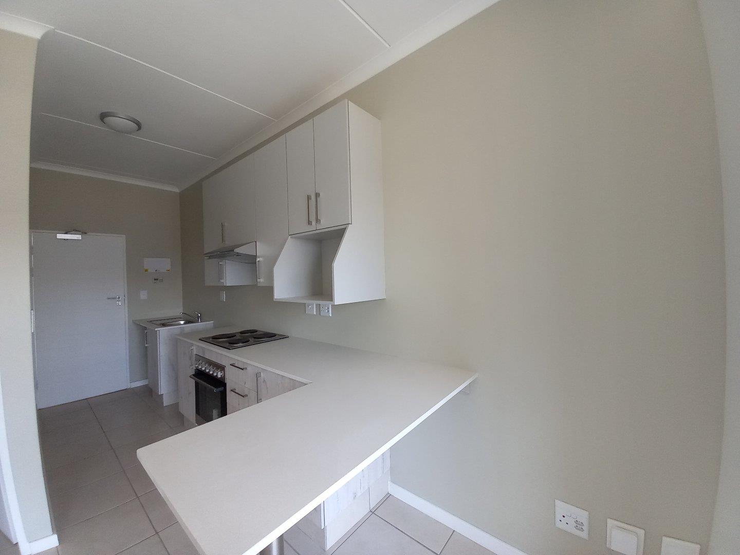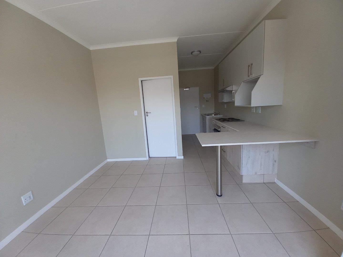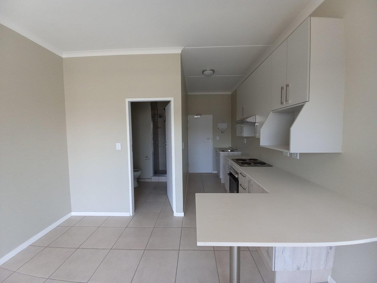 This stylish bachelor flat offers an open plan modern kitchen with ample cupboard space and overlooks the lounge area which is cozy and flows onto a small balcony. The bedroom consists of built in cupboards. 1 bathroom with shower, basin and toilet