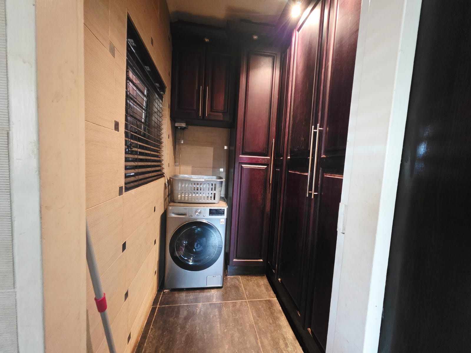 The modern fitted kitchen is complemented by ample cupboard space and a dedicated laundry area, making daily living effortless.
