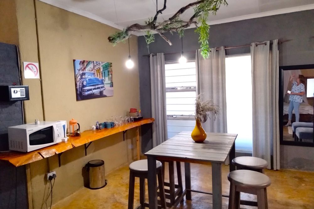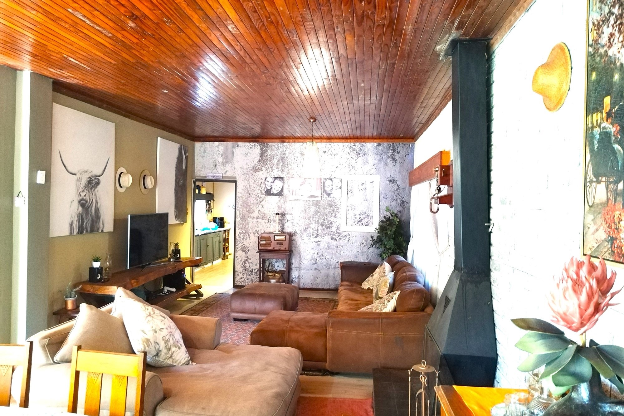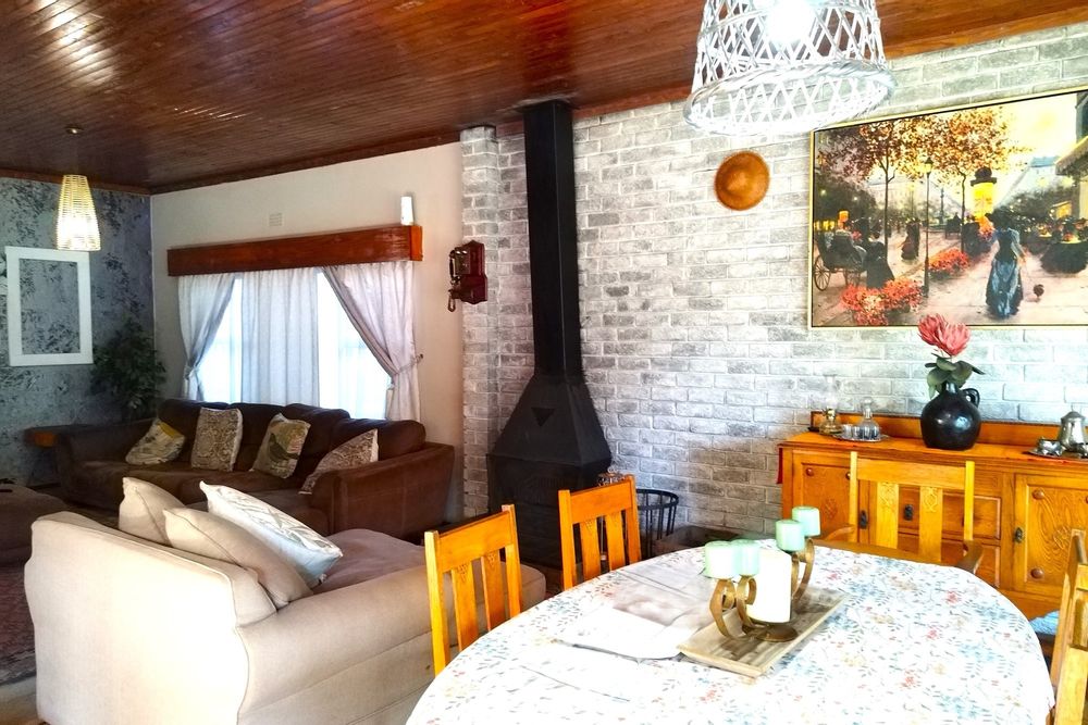 Open-plan living room and dining area, with a lovely stoep area.