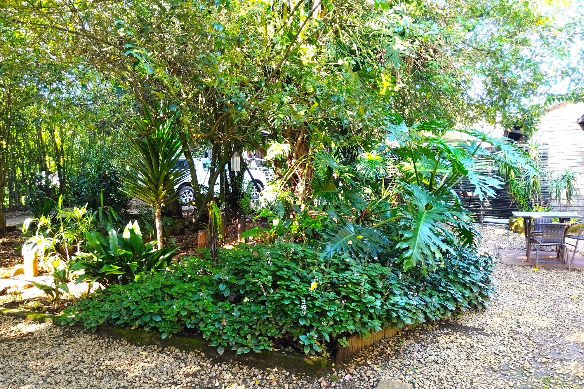 Lush garden area.