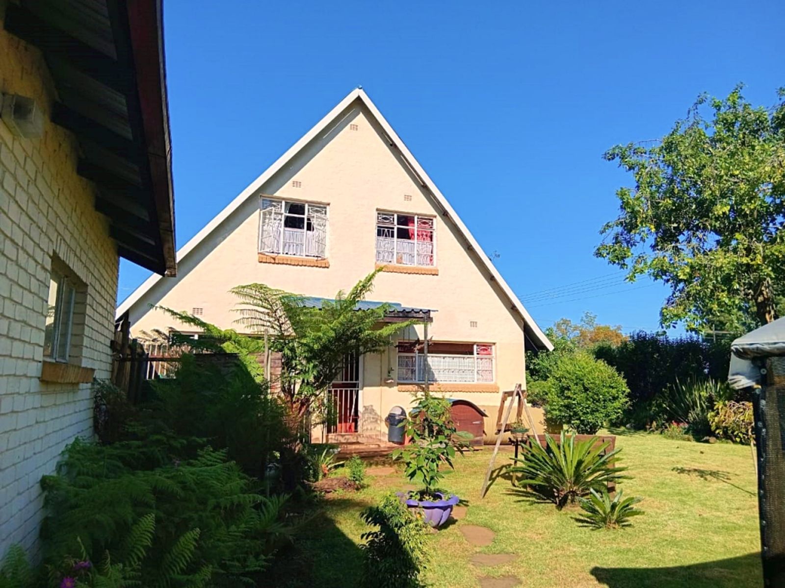 The bedrooms are spacious and offer spectacular views of the beautifully designed garden, laid out with creativity and care. For peace of mind, the property is enclosed by brick perimeter walls, partially covered with greenery, offering both security and privacy.