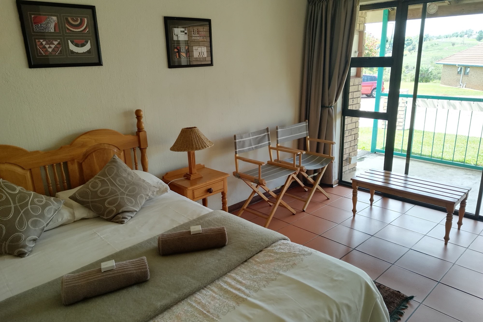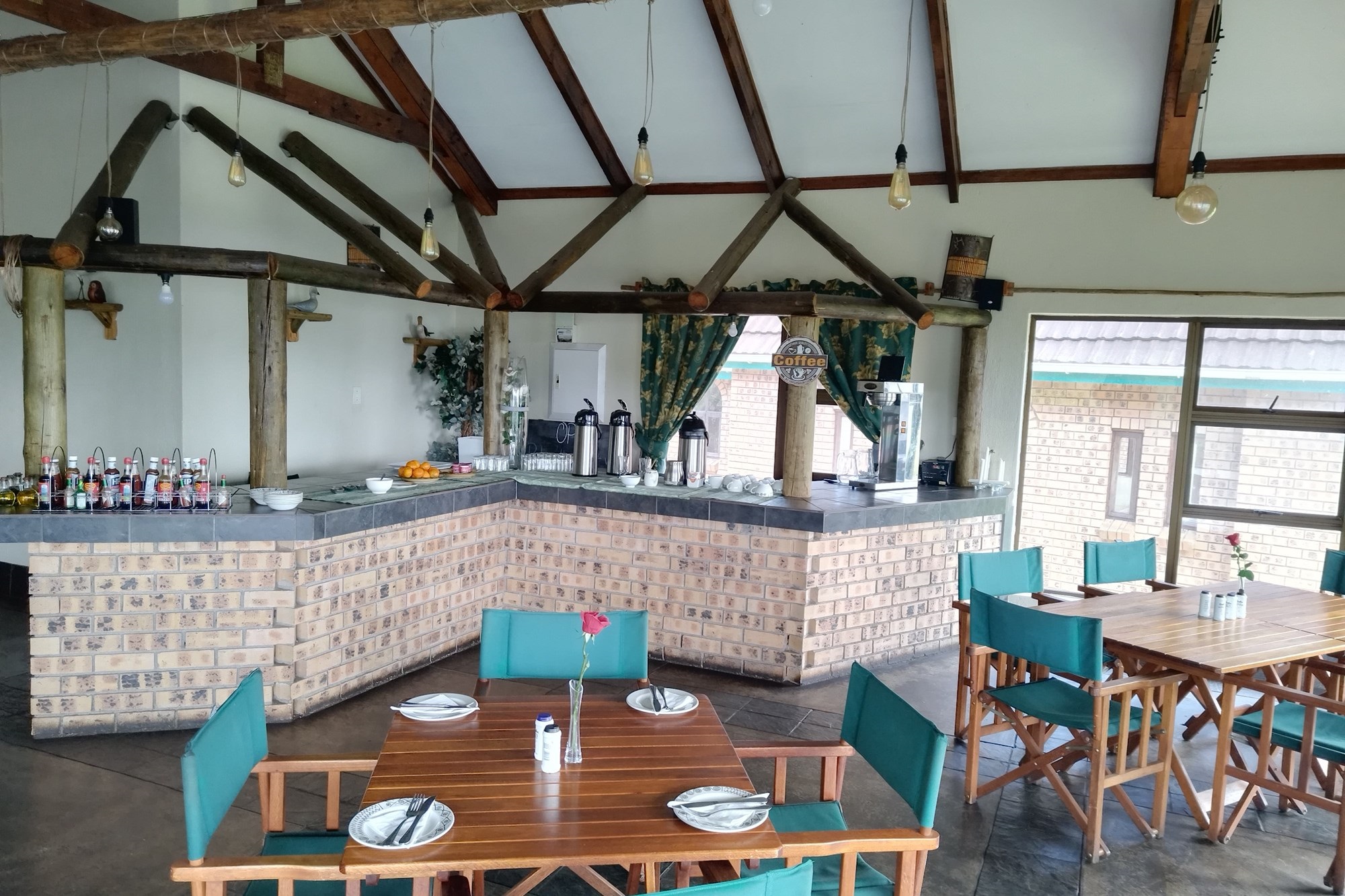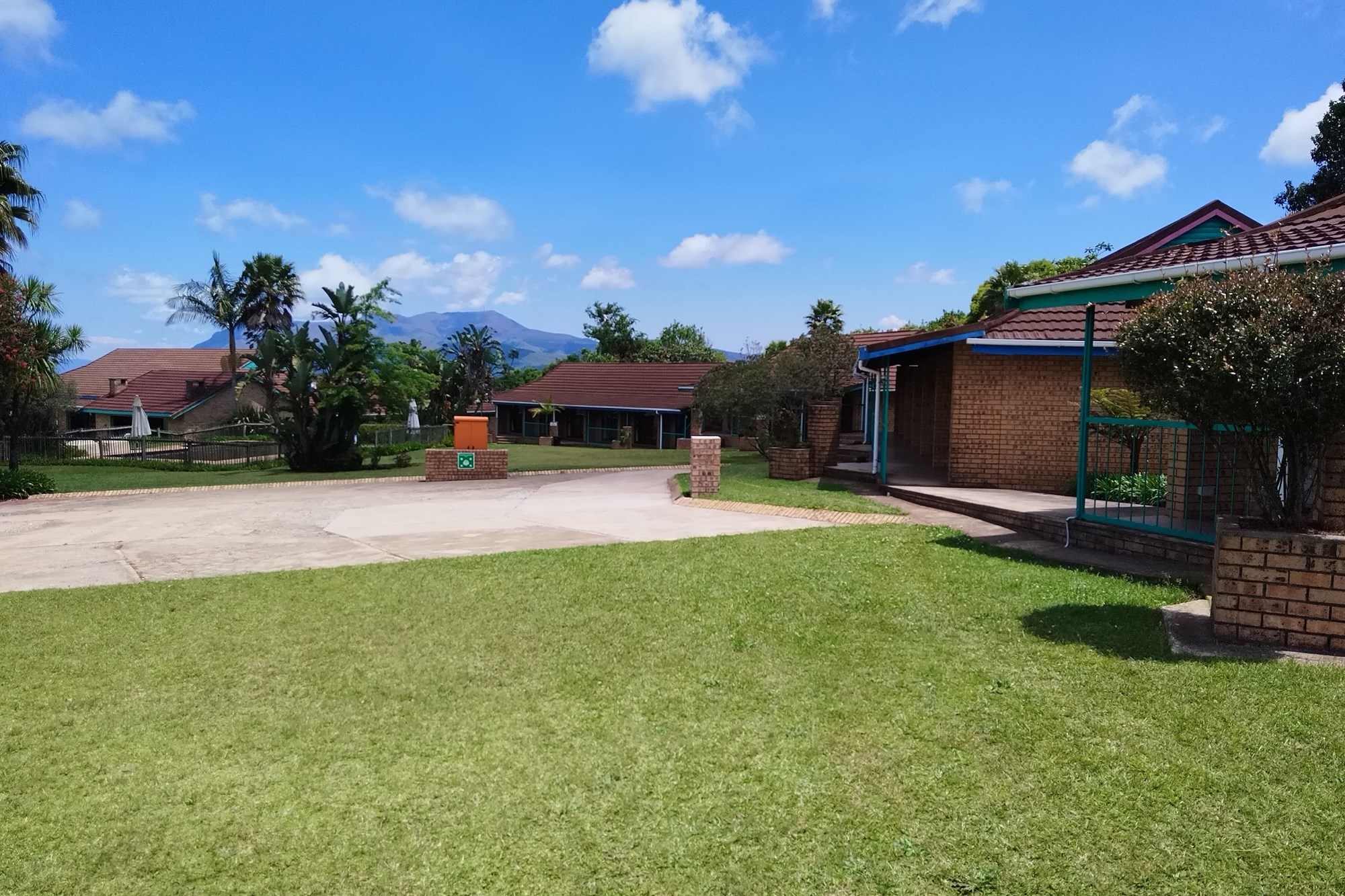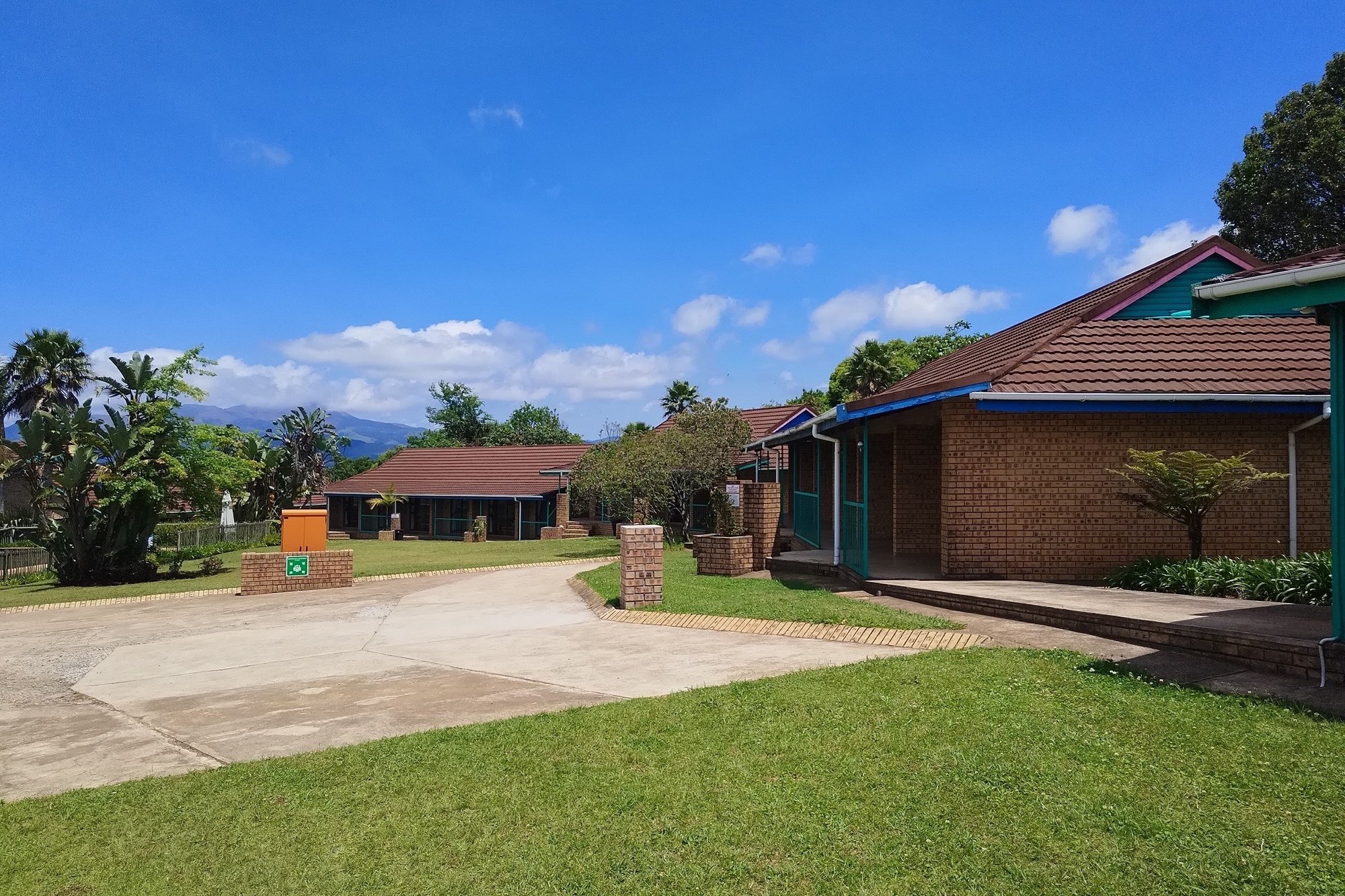 8 x One Bedroom Chalets(self catering) – Double storey building with 4 units on the top level and 4 units on the ground level. Each chalet has: Open plan bedroom (with queen bed), bathroom (shower, bath, toilet, basin), Equipped kitchenette (breakfast nook, hob, microwave, fridge/freezer, necessary cutlery, kettle, toaster), TV, panel heaters, Stoep/Balcony area.