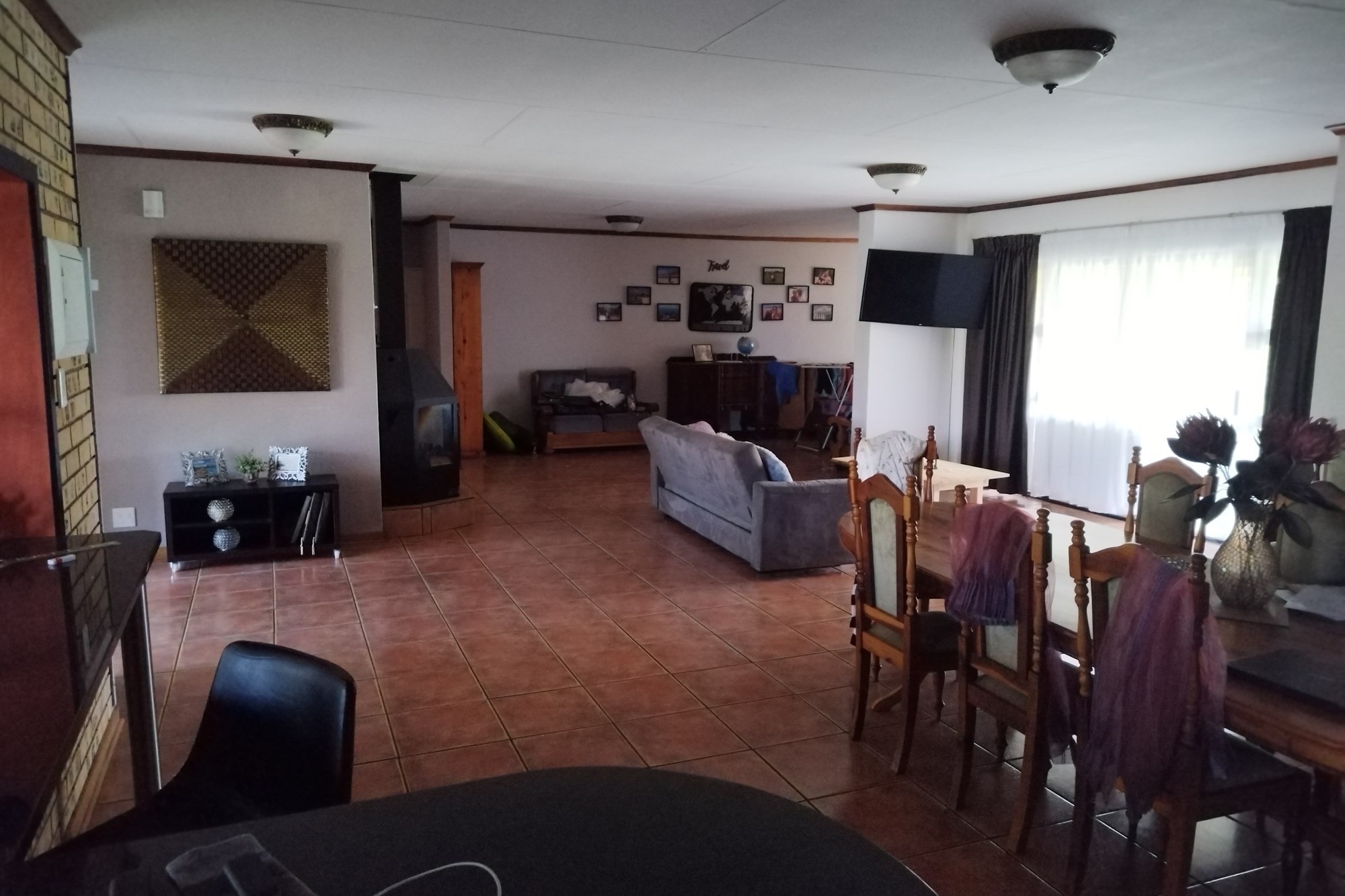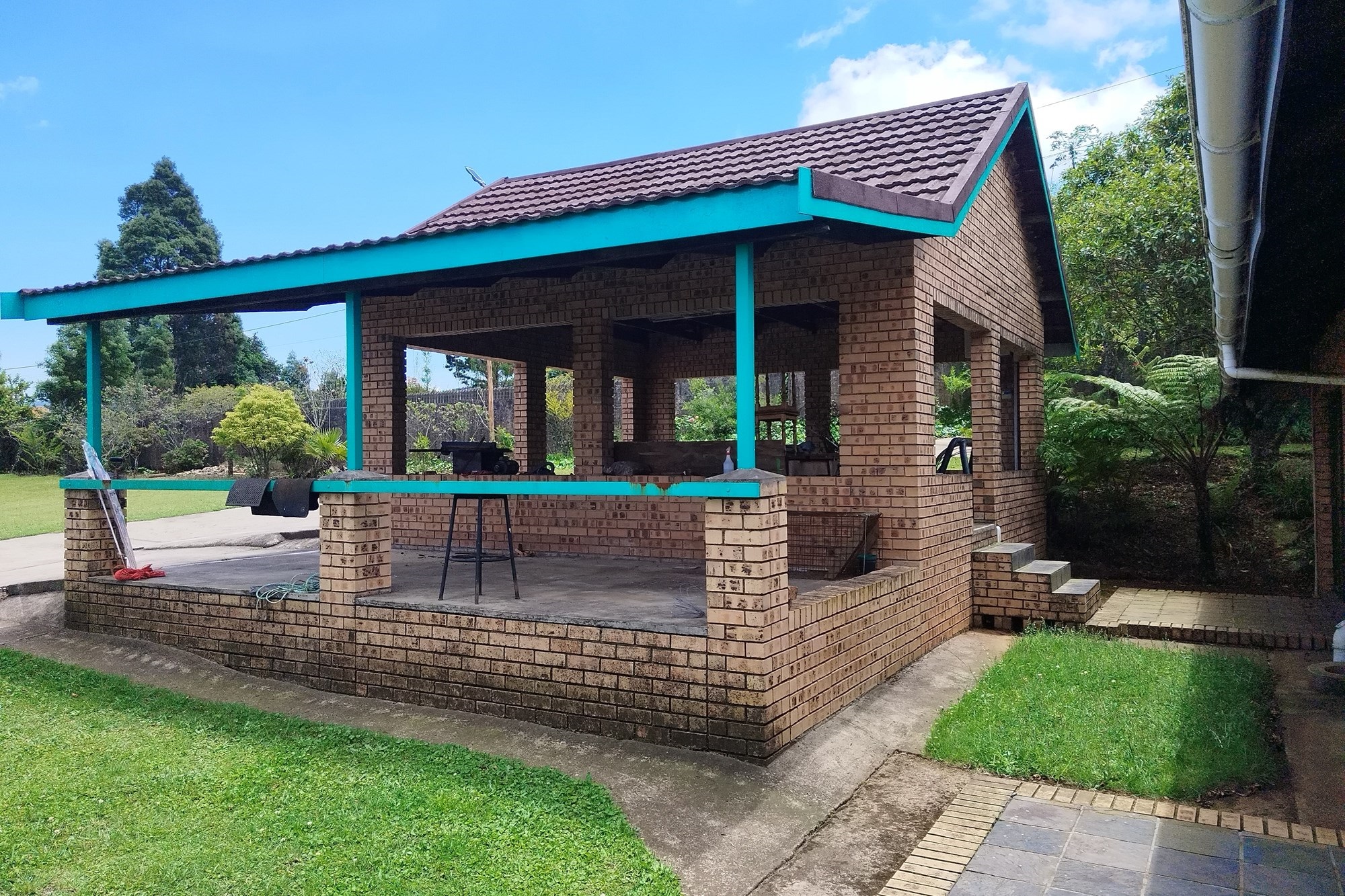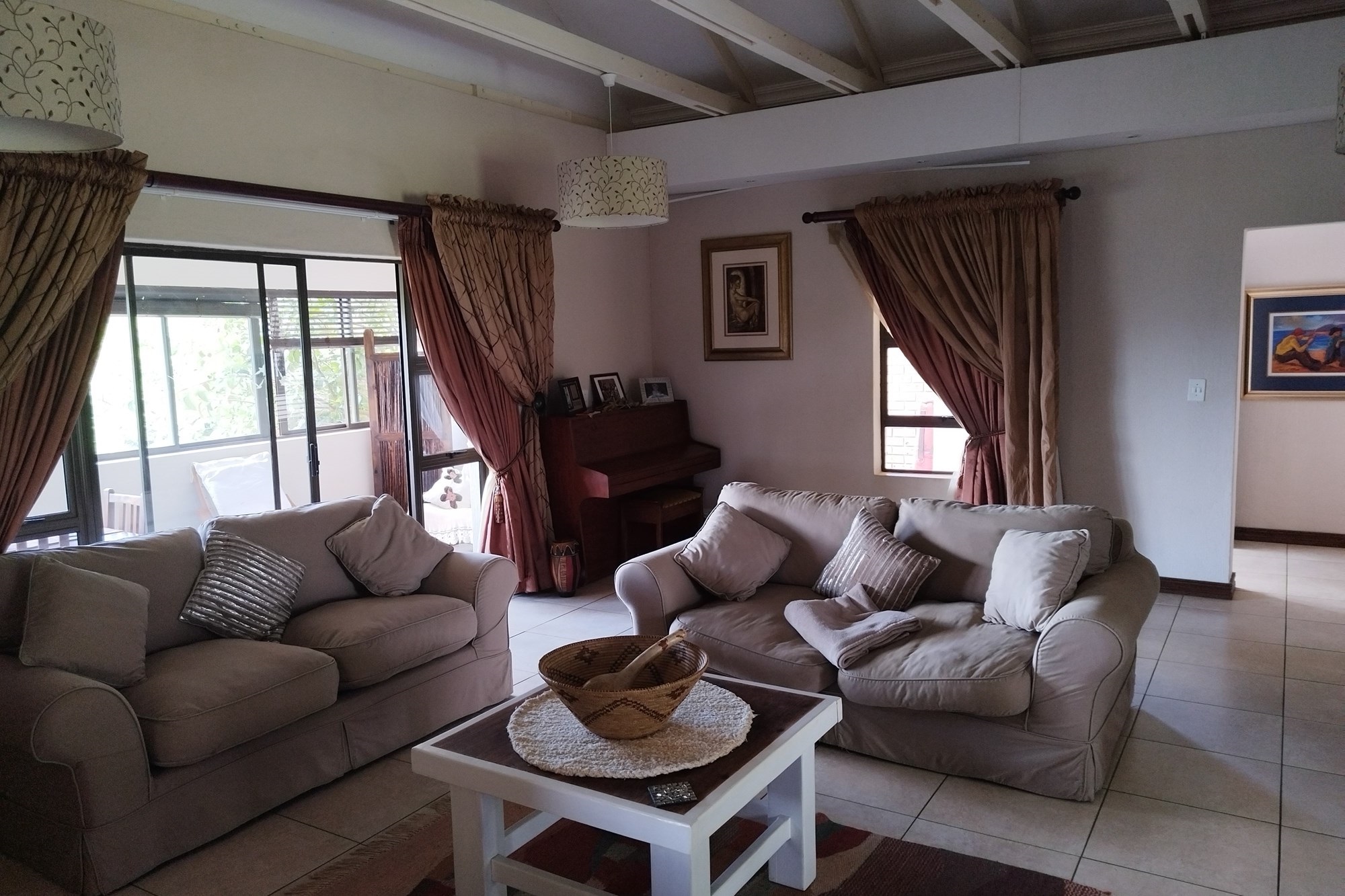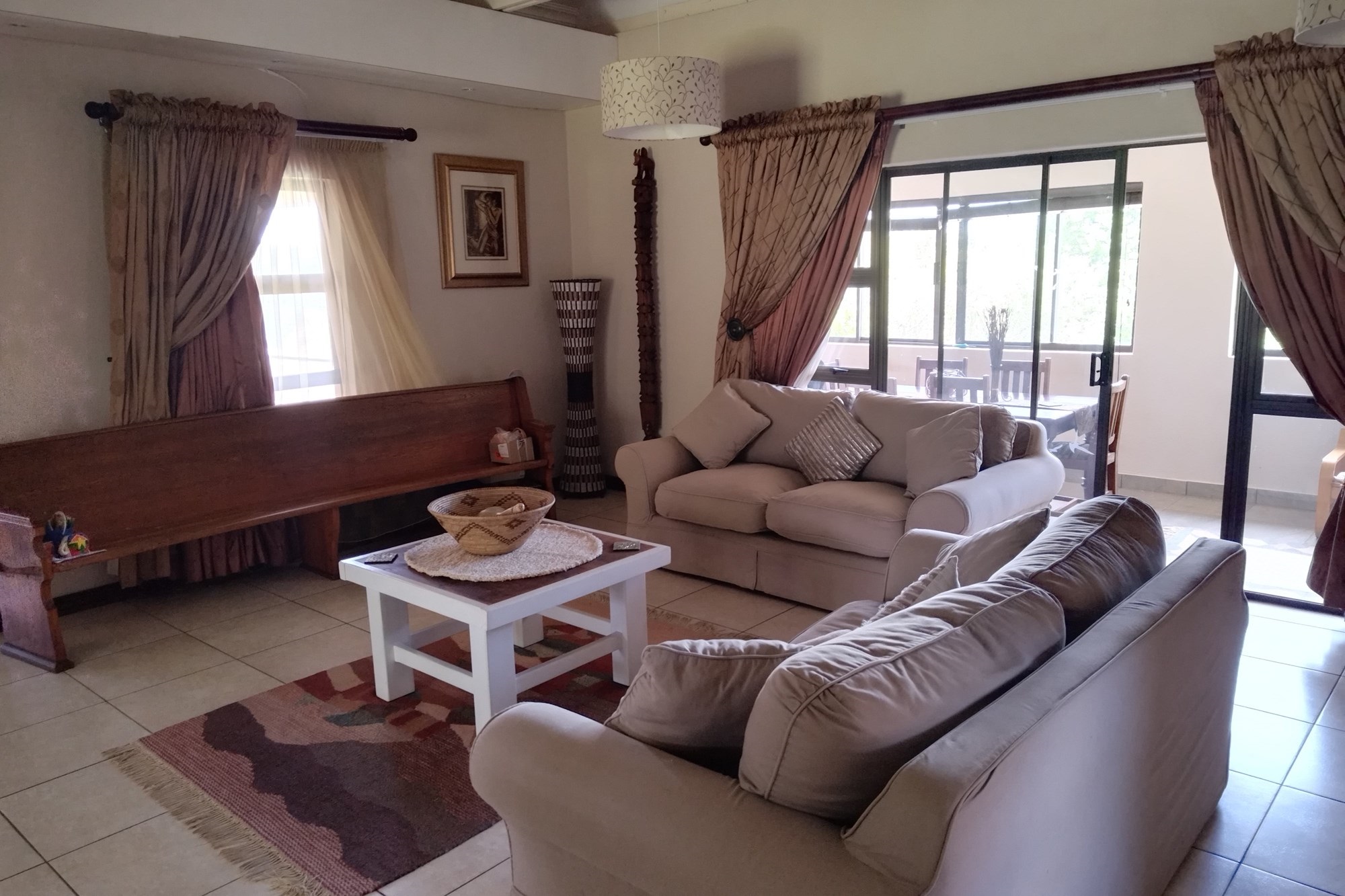 Manager House - 3 bedrooms, each with en-suite bathroom, guest toilet, kitchen and scullery, dining room, 2 living rooms, study, fireplace.Not Furnished. Open garage for 3 vehicles.
