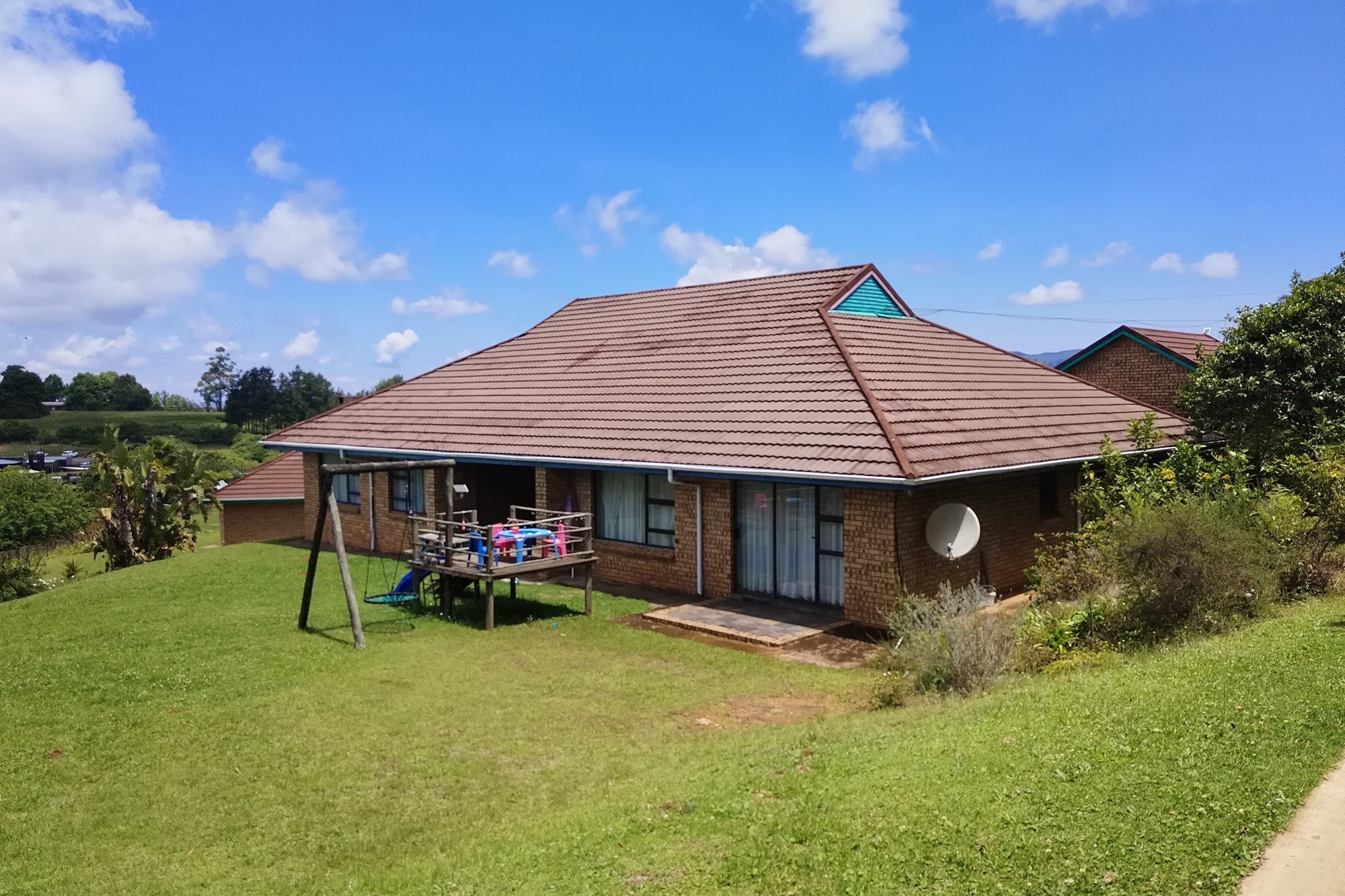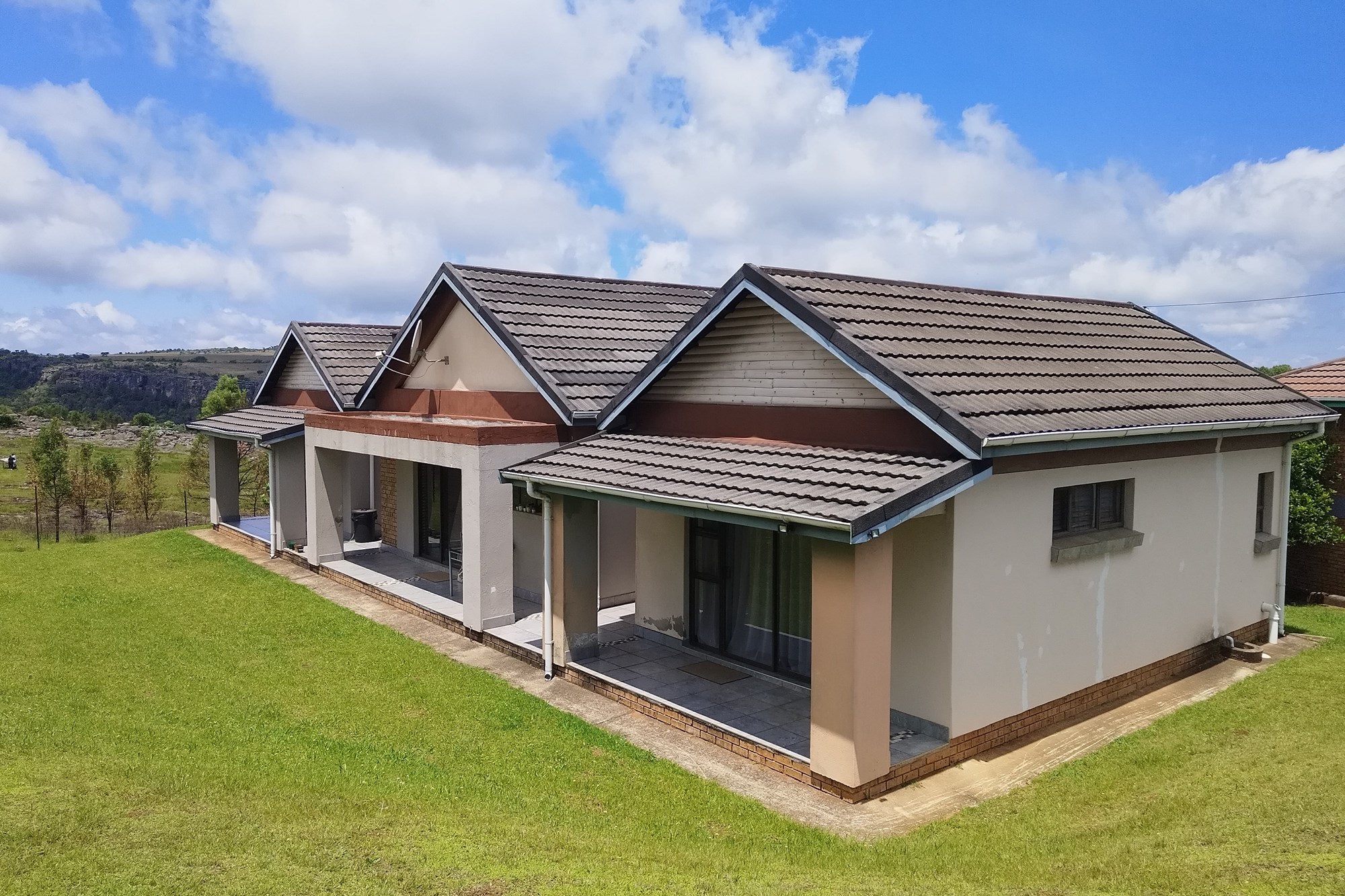 Manager House - 2 large bedrooms with en-suite bathrooms, guest toilet, Kitchen, dining room, living room, sun room, Braai area, Enclosed Patio.Not Furnished. Double garage.