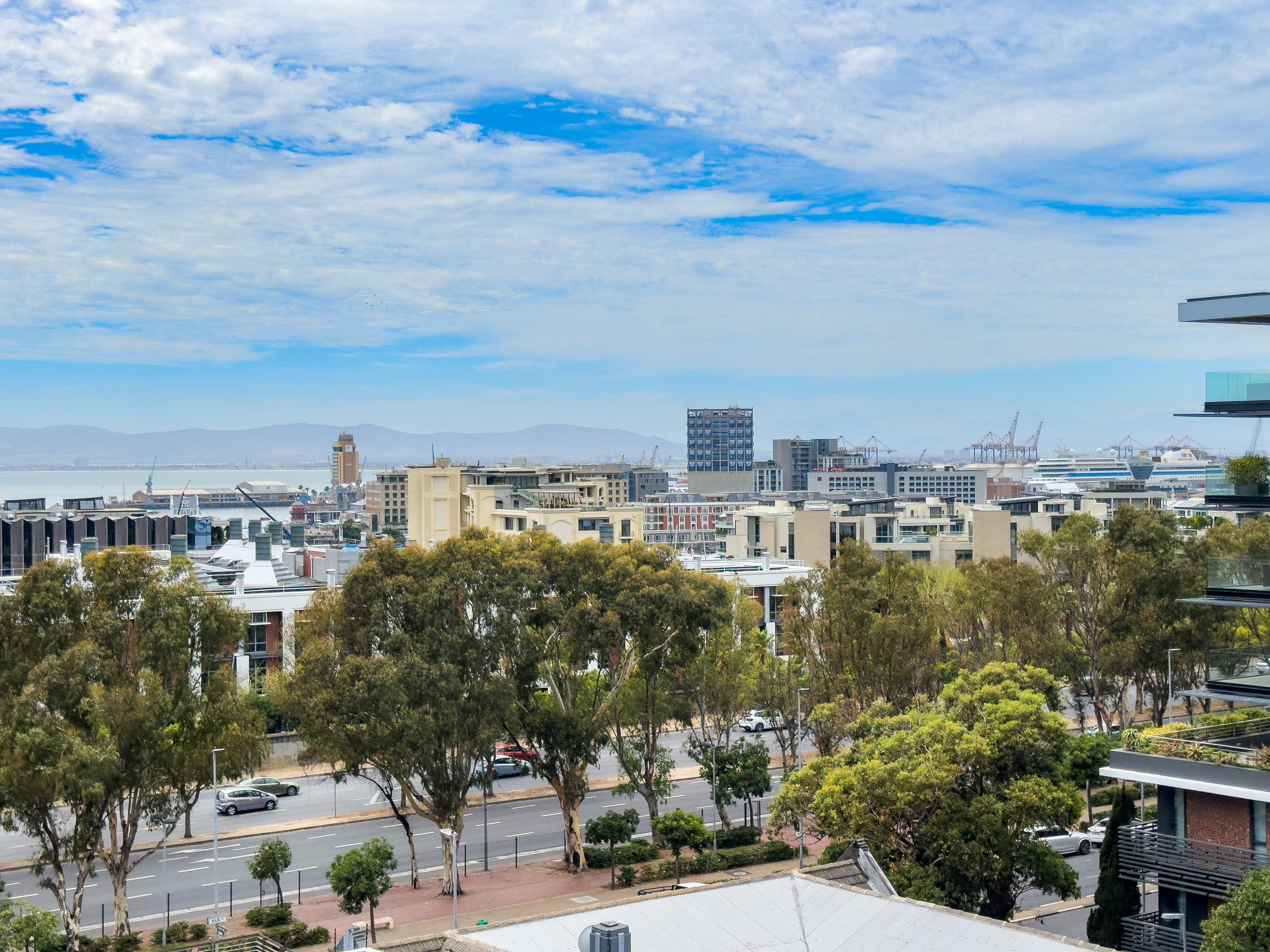 The lower level is flooded with natural light through floor-to-ceiling windows, showcasing stunning views of iconic Table Mountain and the harbour from your private balcony. Entertain in style in the sleek, modern kitchen that flows seamlessly into the expansive living area—perfect for hosting friends or simply soaking in the scenery.