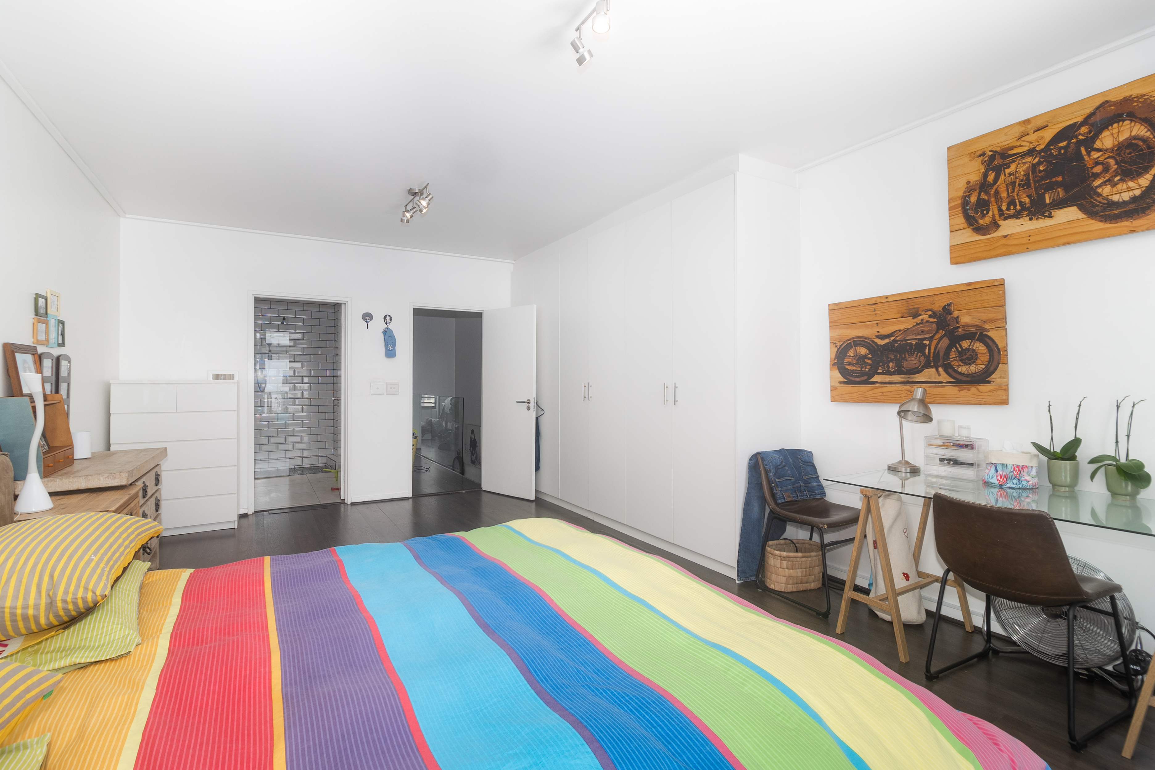 Upstairs, both bedrooms are generously sized. The main suite features a balcony and an en-suite, while the second bathroom is perfectly located for family or guests. Ample built-in storage ensures a clutter-free, elegant space.