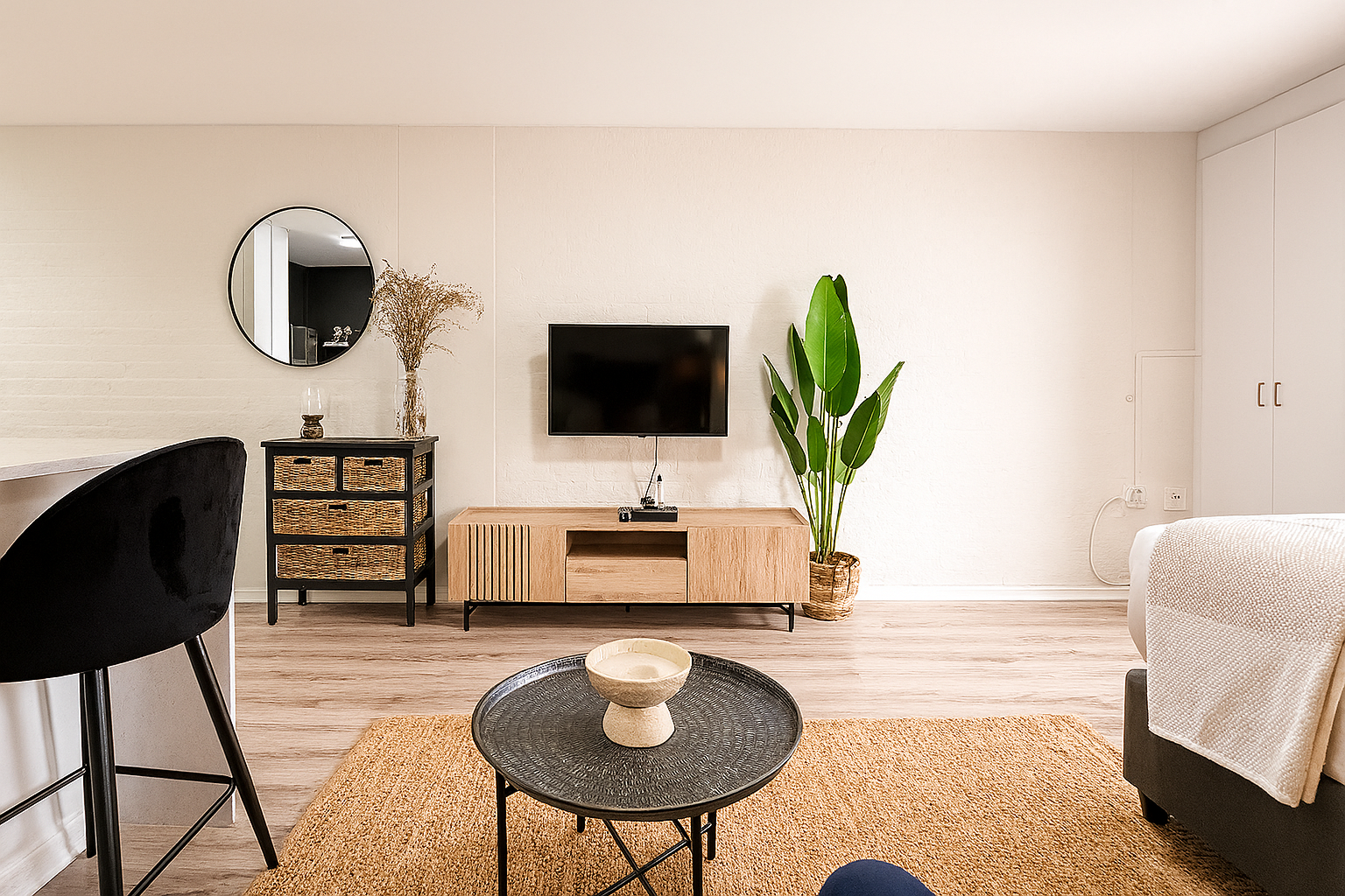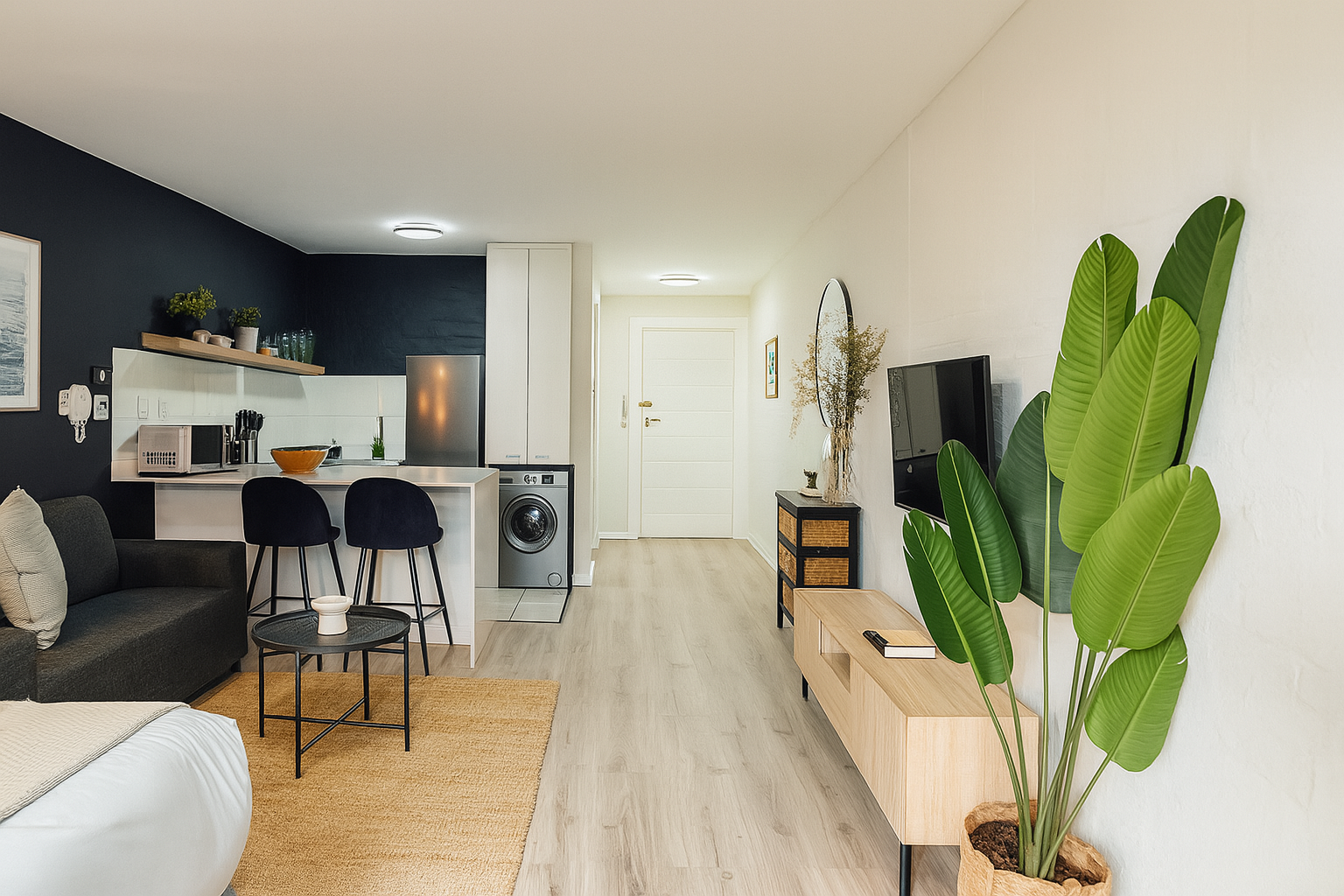 The open-plan layout maximizes functionality, offering a sleek kitchen, modern finishes, and a seamless flow that makes the unit feel far larger than its footprint.