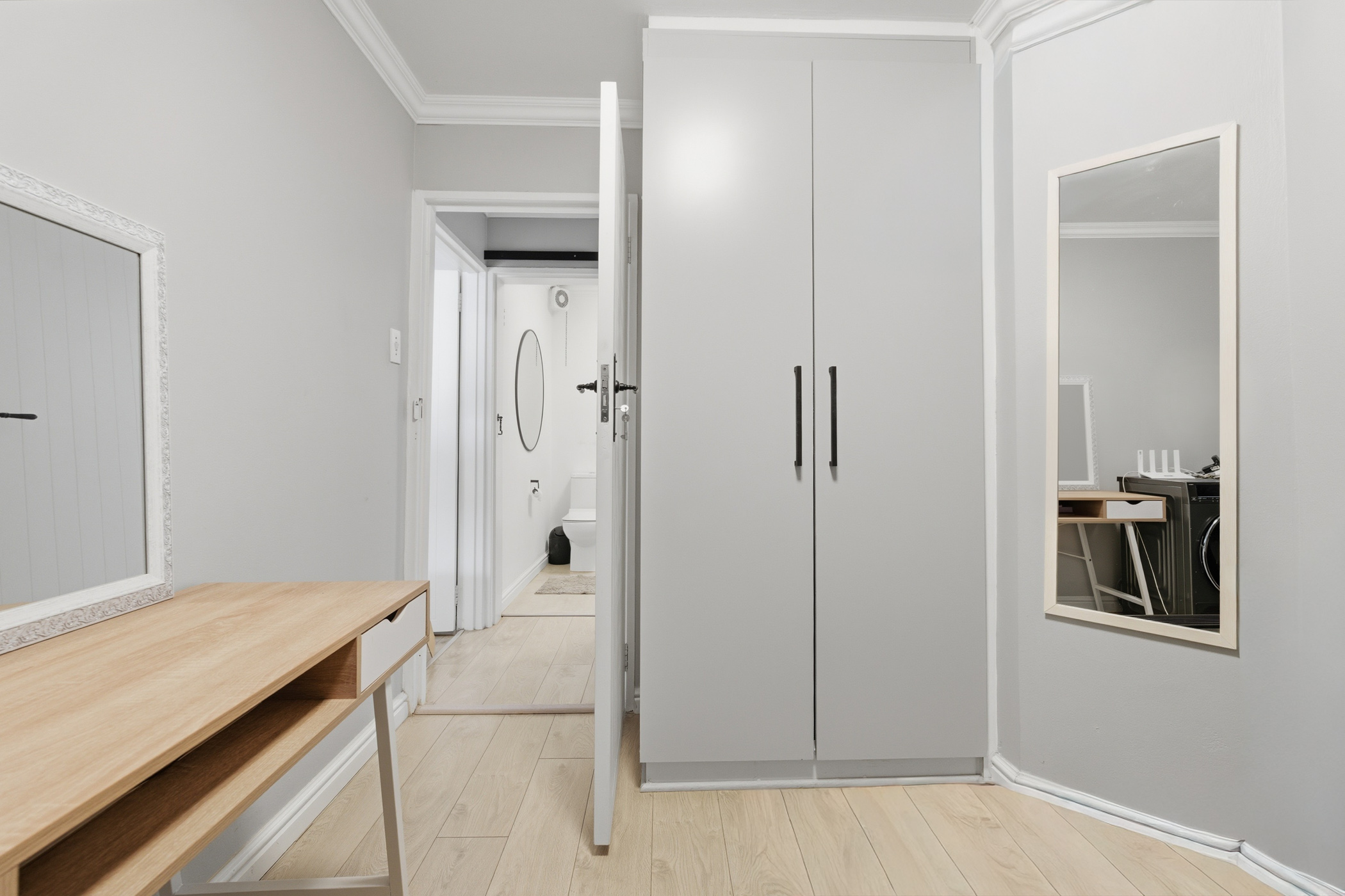 The apartment features two well-proportioned bedrooms, a neatly appointed bathroom, and a single lock-up garage, a true luxury in this part of the city. The layout is practical yet inviting, ideal for both permanent living and short-term stays. Whether furnished for immediate rental or styled as a personal city base, the space adapts effortlessly.