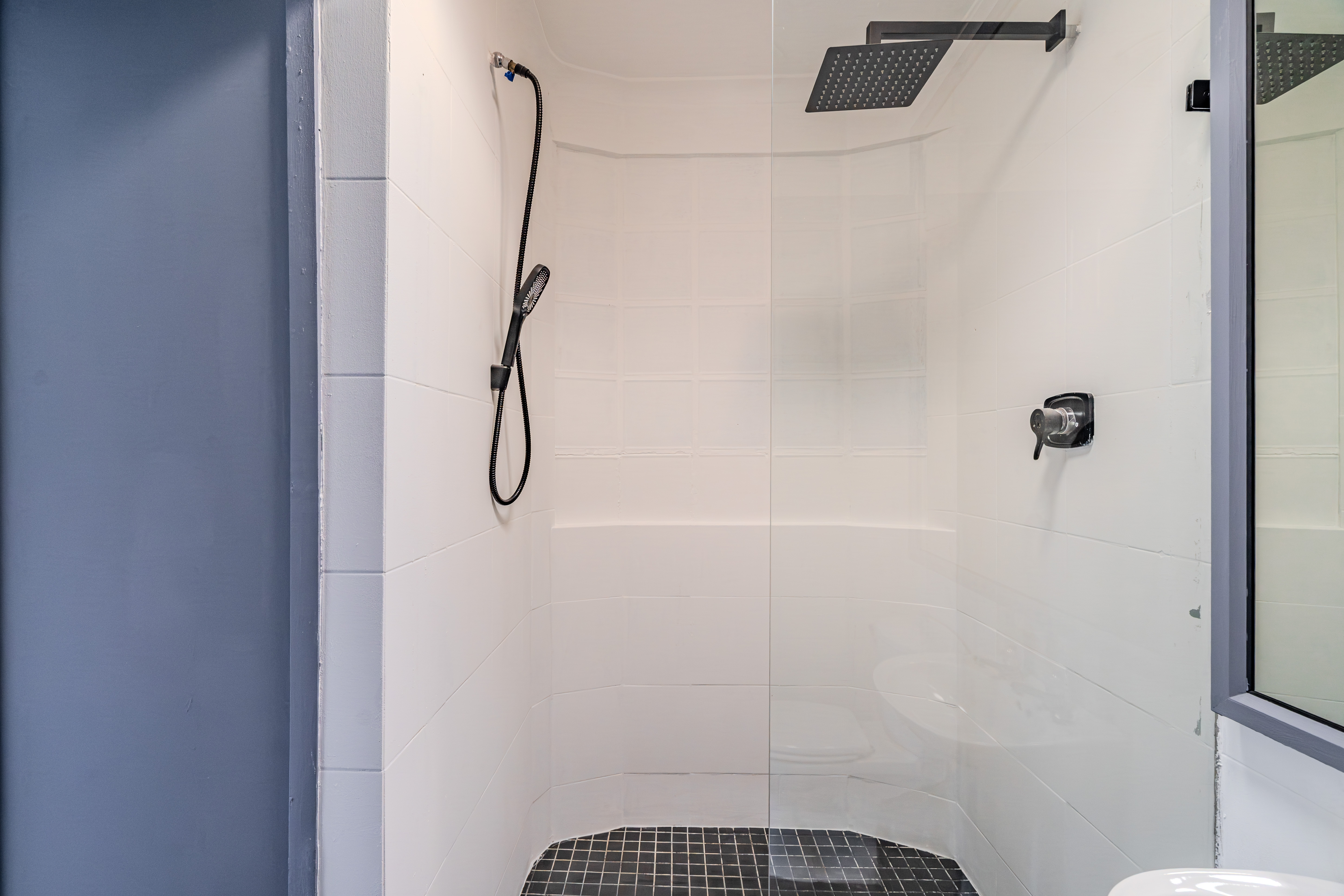 Both bedrooms are generously sized and include built-in cupboards, while the modern bathroom showcases elegant fittings and finishes. The renovation has been completed with attention to detail, offering a fresh, move-in-ready space that balances function and design.