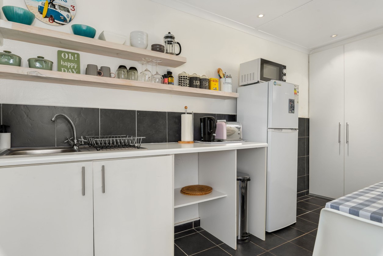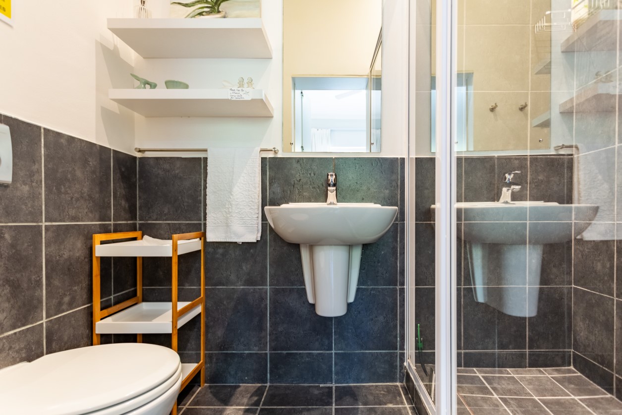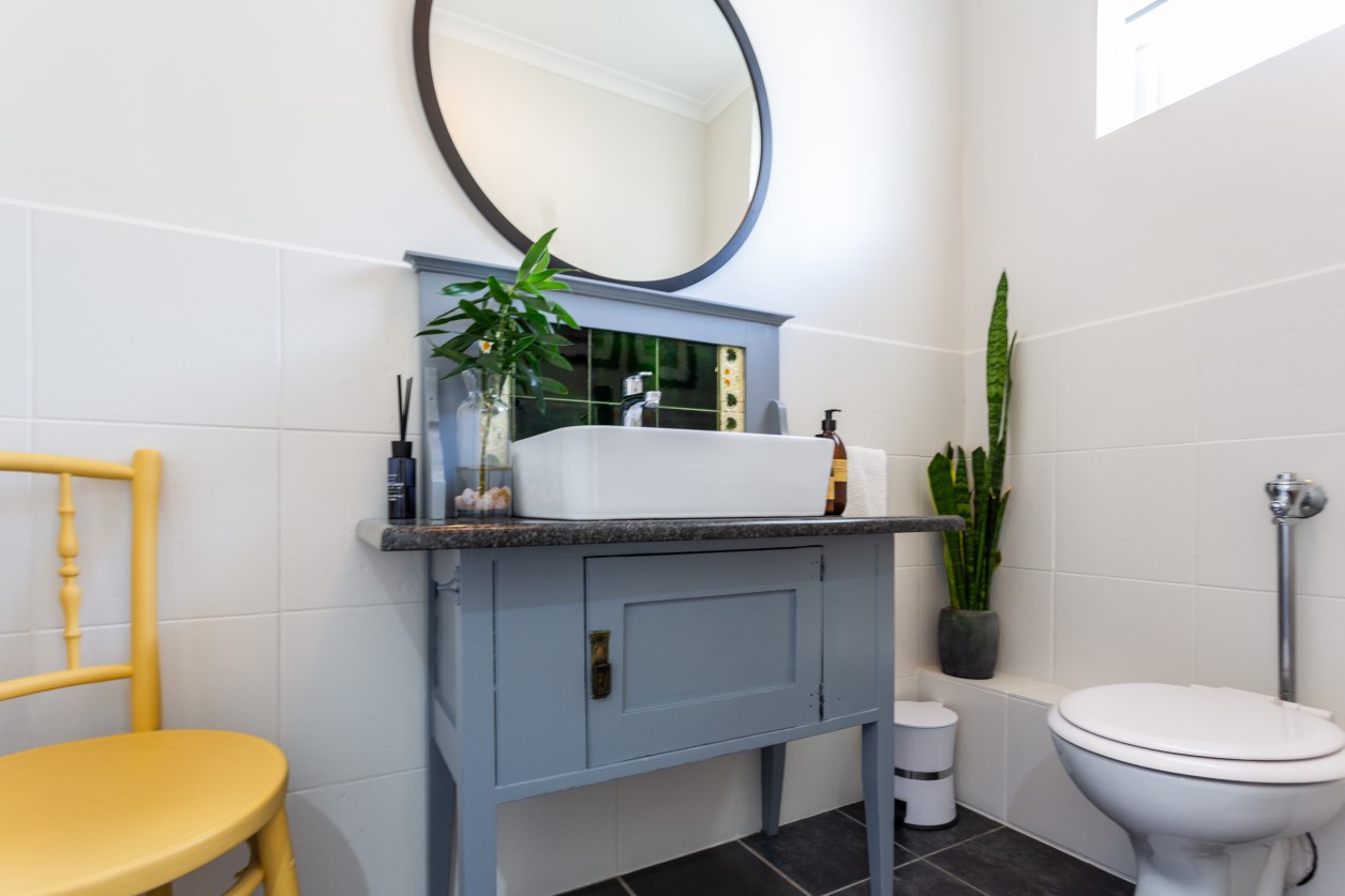 Beneath the main residence lies a charming, self-contained cottage. With its own entrance from a quiet lane, this beautifully decorated space includes an en-suite bathroom, a kitchenette, generous built-in storage, and a private, partially covered patio: ideal for short-term rentals or extended family stays. A large separate laundry and storage area completes this level.
