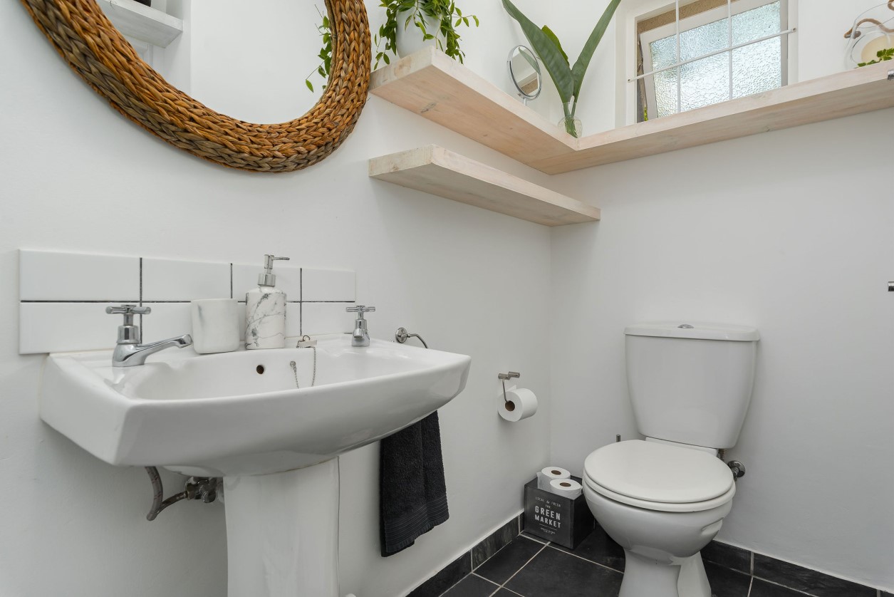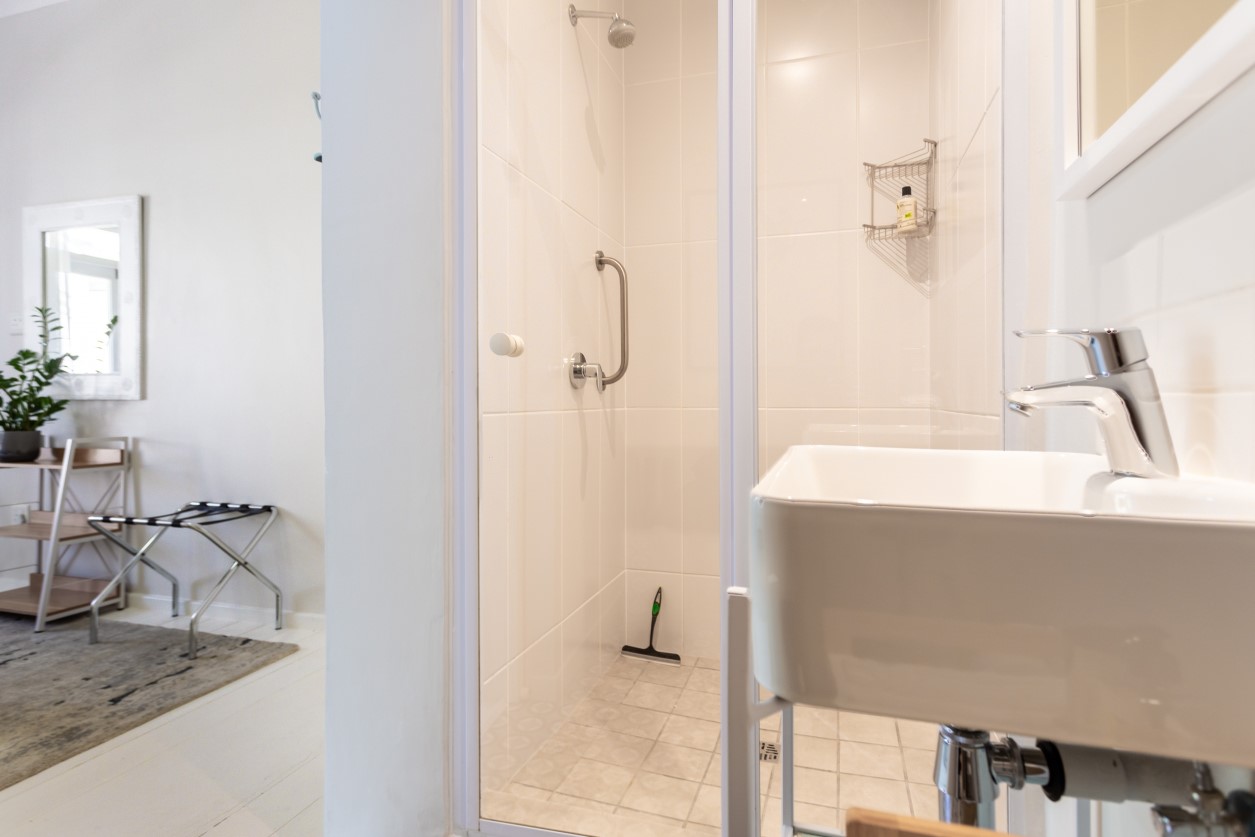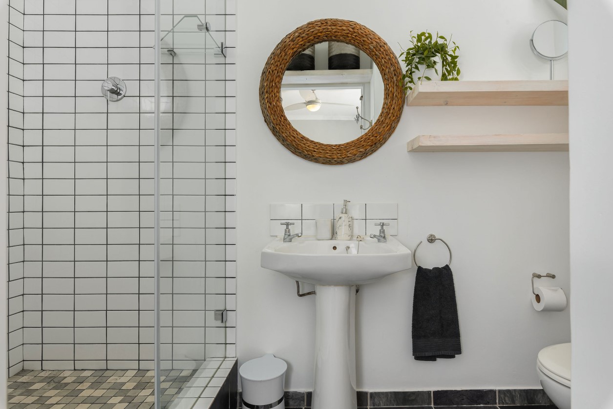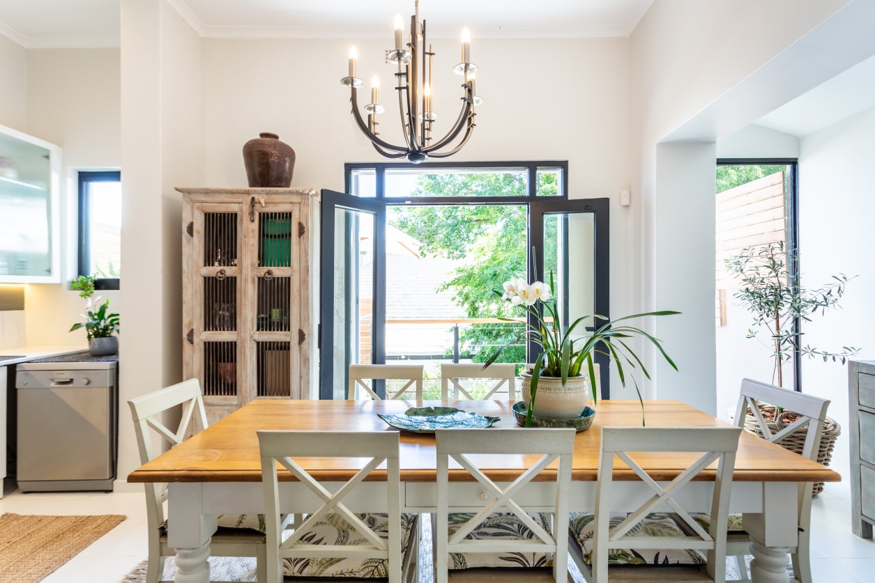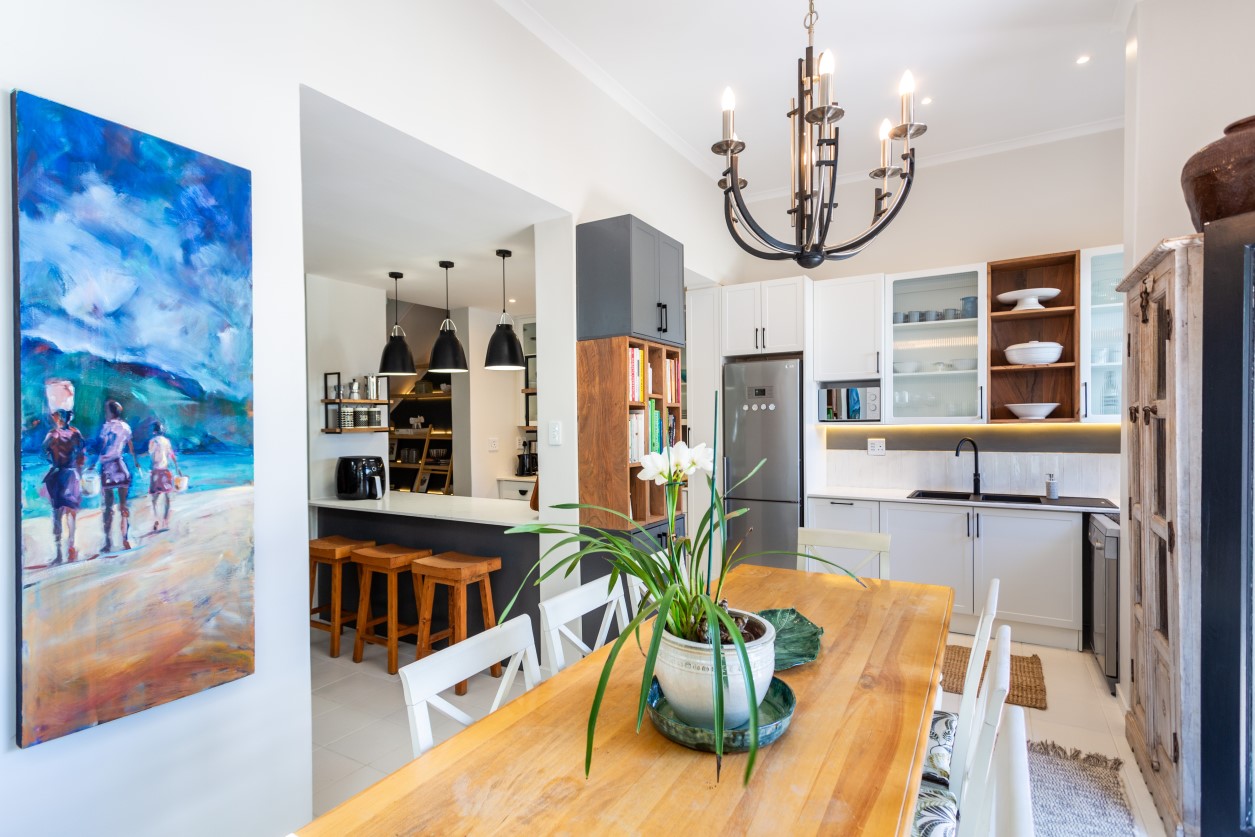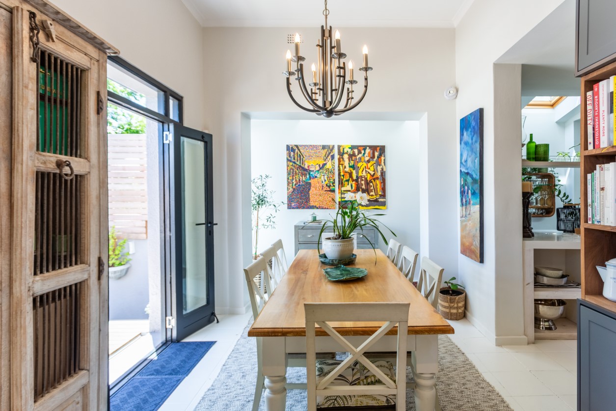 This gracious Victorian home seamlessly blends timeless charm with contemporary elegance. From the beautiful, character-filled façade to the sleek interiors, every detail has been thoughtfully curated. Inside, crisp tones of white and grey are softened by warm wooden accents, creating an atmosphere that is both contemporary and inviting. The spacious open-plan living area encompasses a lounge, a stylish kitchen, and a dining space that flows effortlessly out to a deck—perfect for entertaining or relaxing in the Cape Town sun. A guest toilet and direct-access garage, which offers both storage and secure parking for one car, complete the ground level.