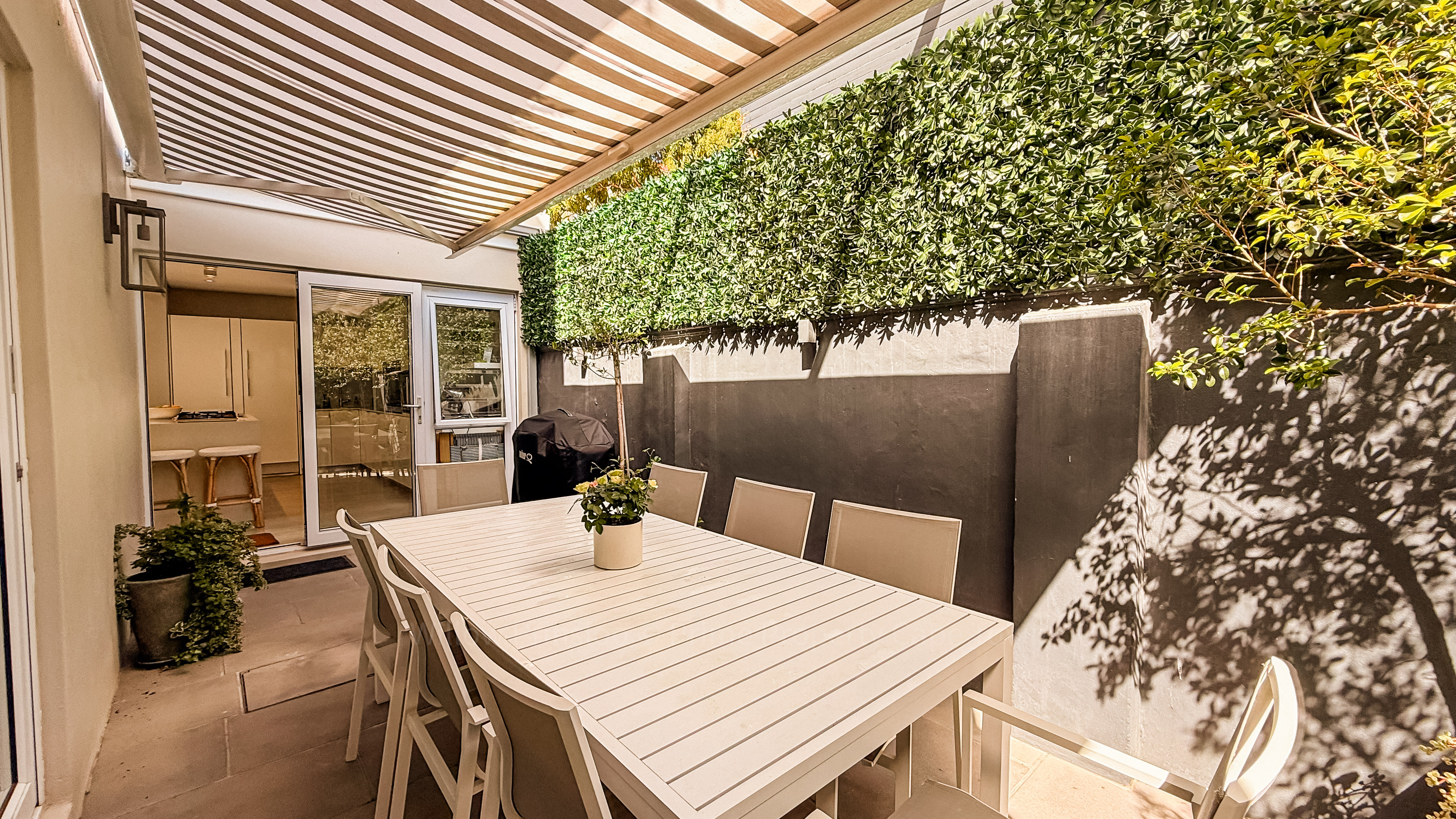 Flooded with beautiful natural light, the home features window shutters, seamless indoor-outdoor flow to a private patio, and a top-floor balcony perfect for morning coffees or sunset unwinding. Comfort is guaranteed year-round with air conditioning for summer and heaters for winter, creating the perfect environment in every season.