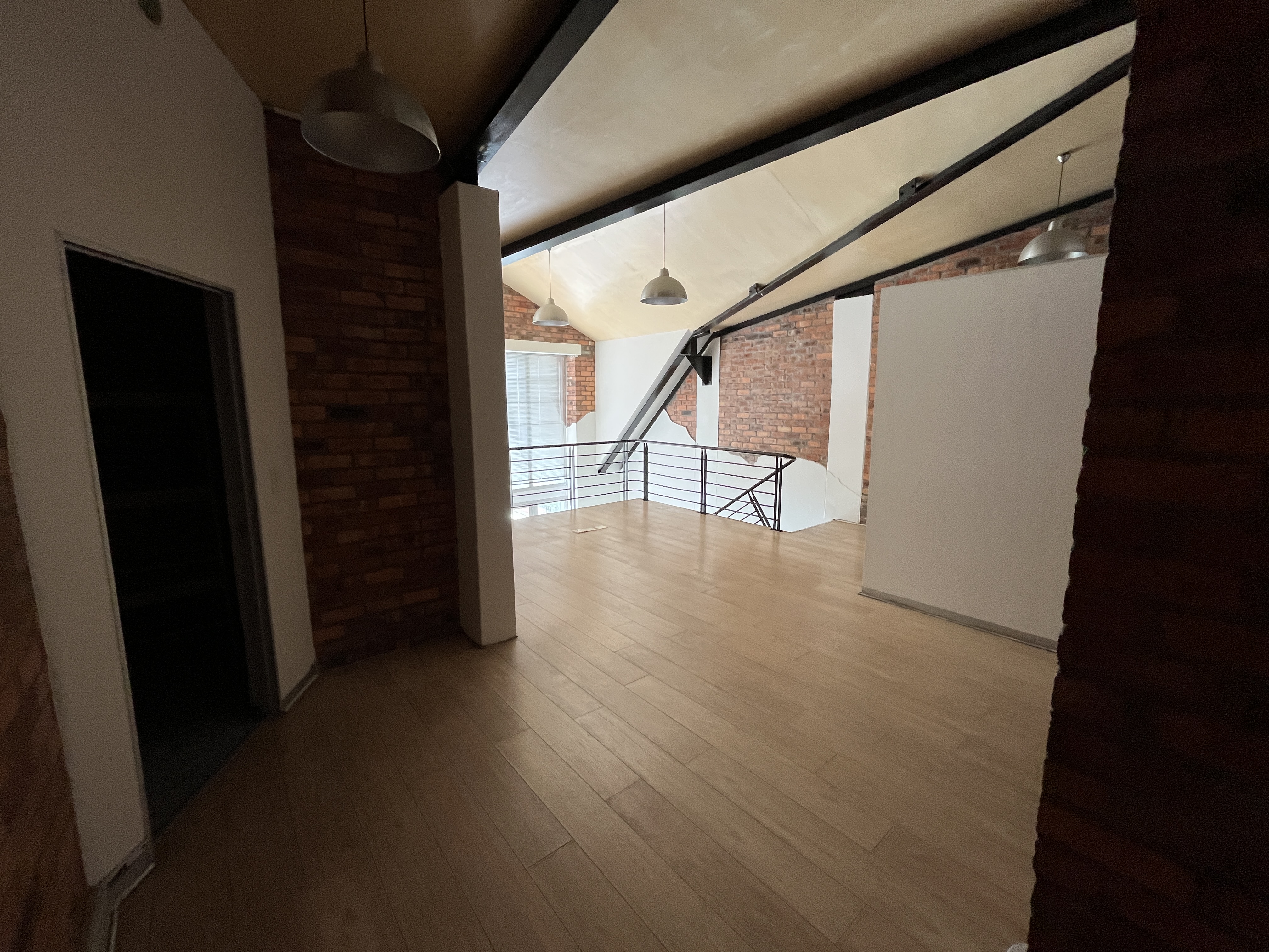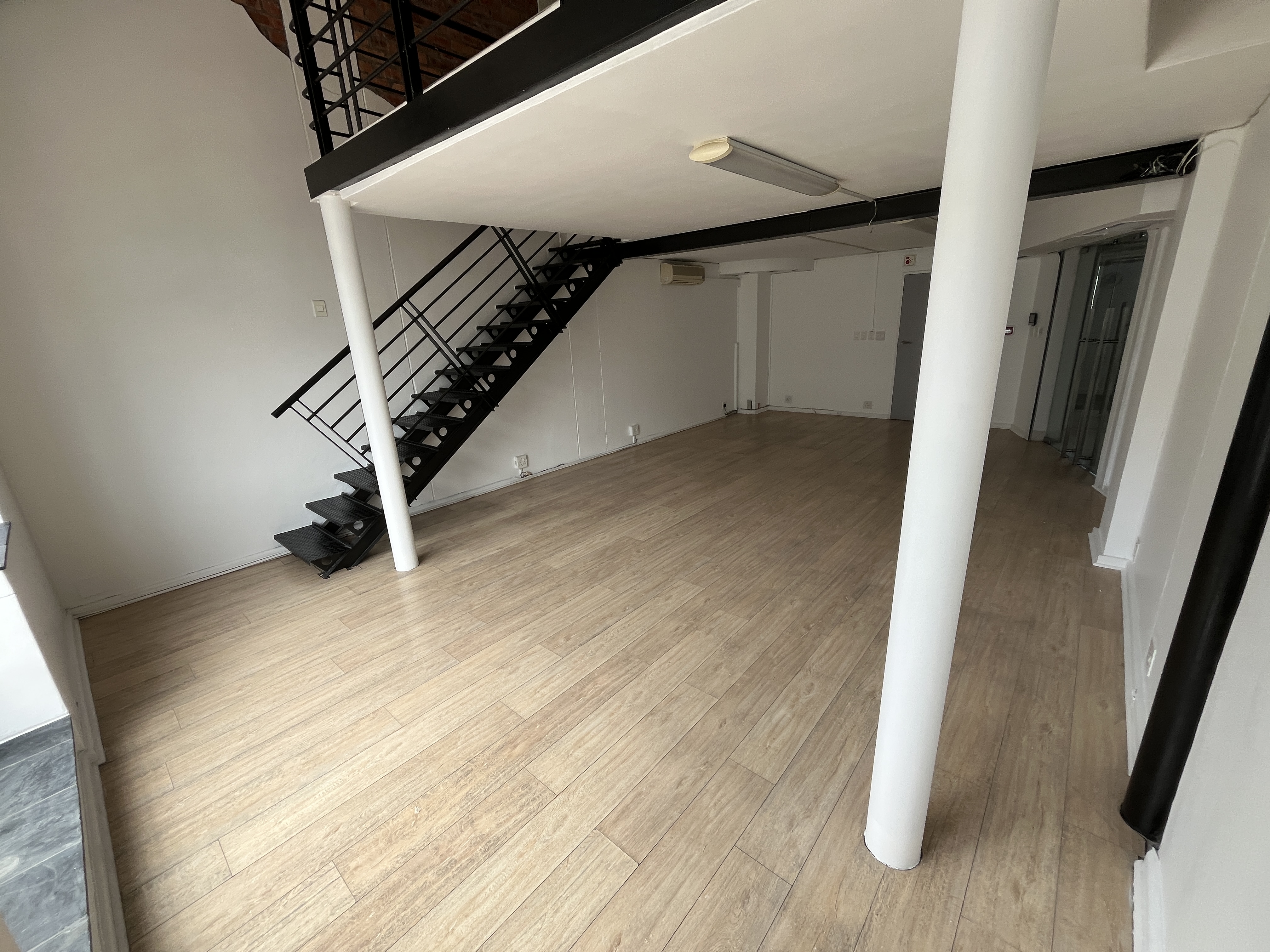The upper level features a private kitchenette, bathroom, and a dedicated storage or server room, ensuring day-to-day convenience without compromising on usable workspace. The loft design adds volume, natural light, and a contemporary edge that sets this office apart.