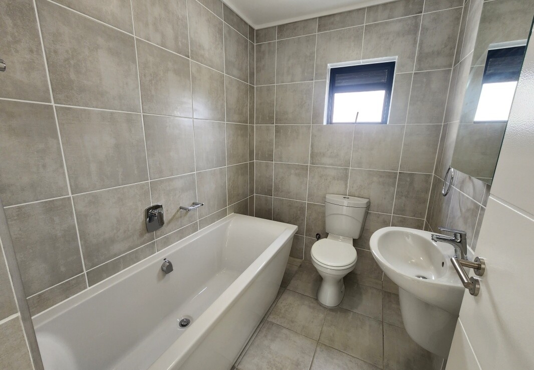 The primary bedroom boasts ample wardrobe space and overlooks the garden, with an en-suite bathroom featuring a fitted bath.