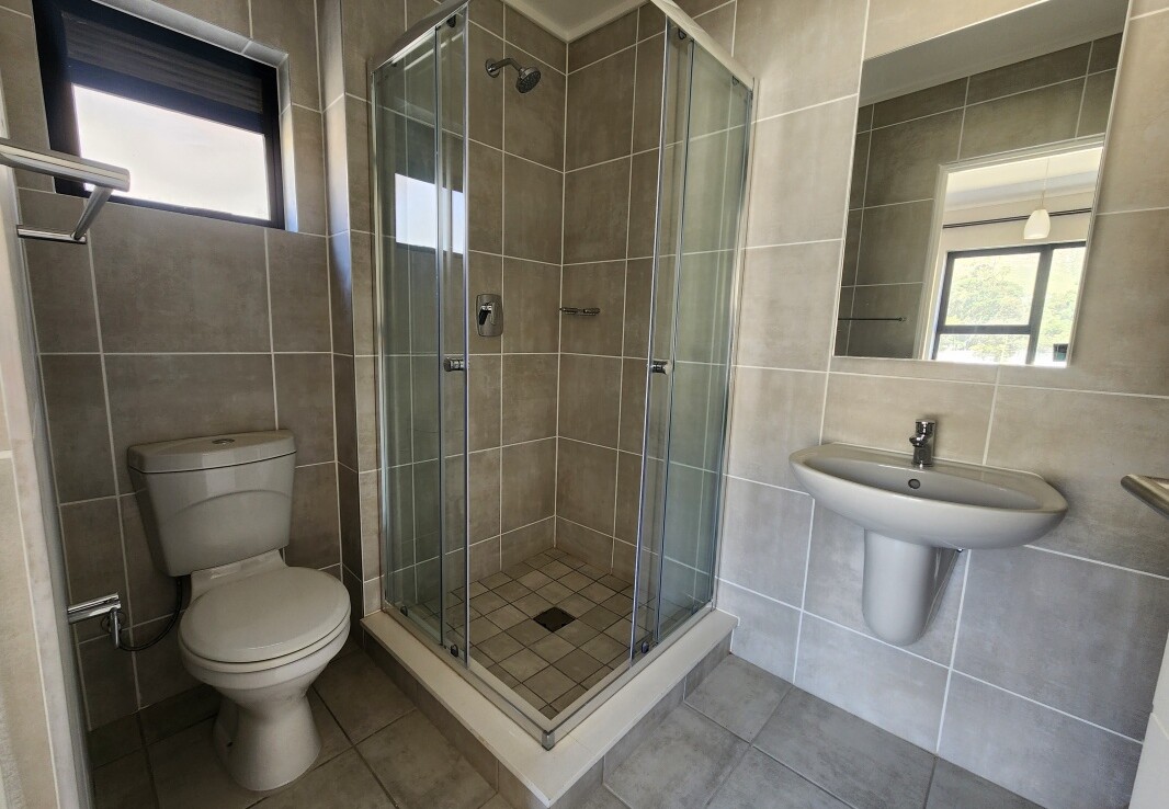 The main bathroom is fitted with a shower and a cabinet for additional storage.