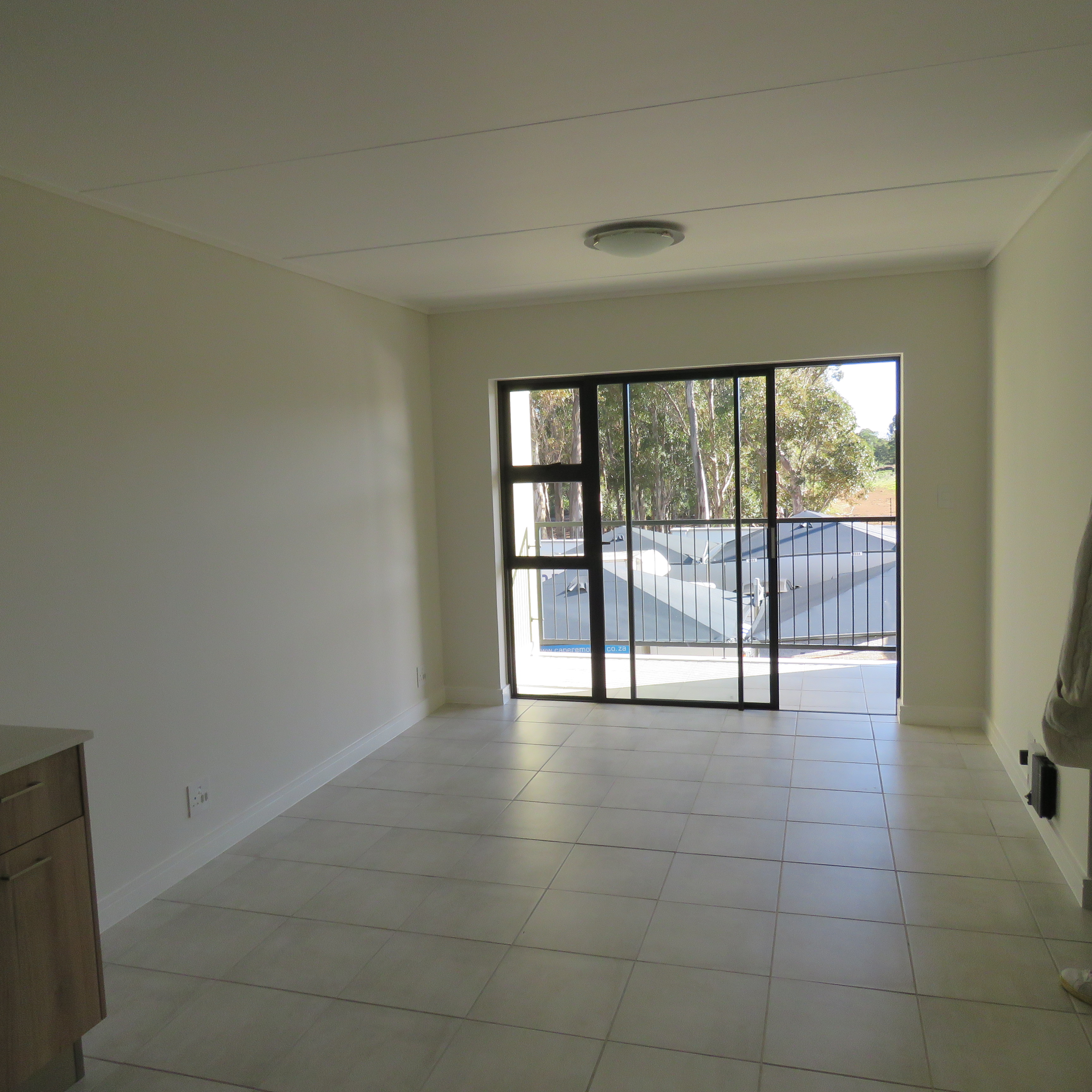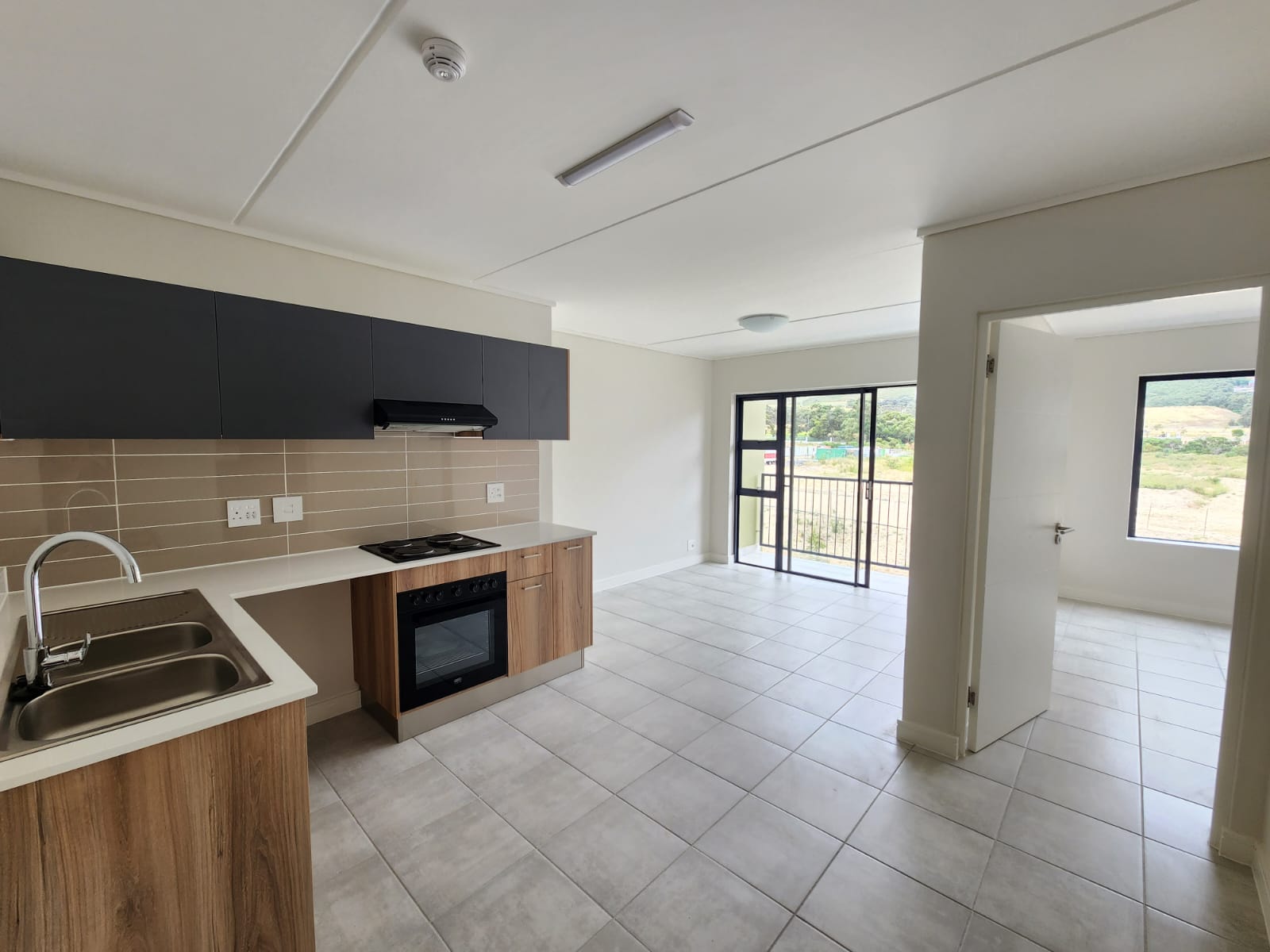 Open plan kitchen/lounge leads out onto a balcony.