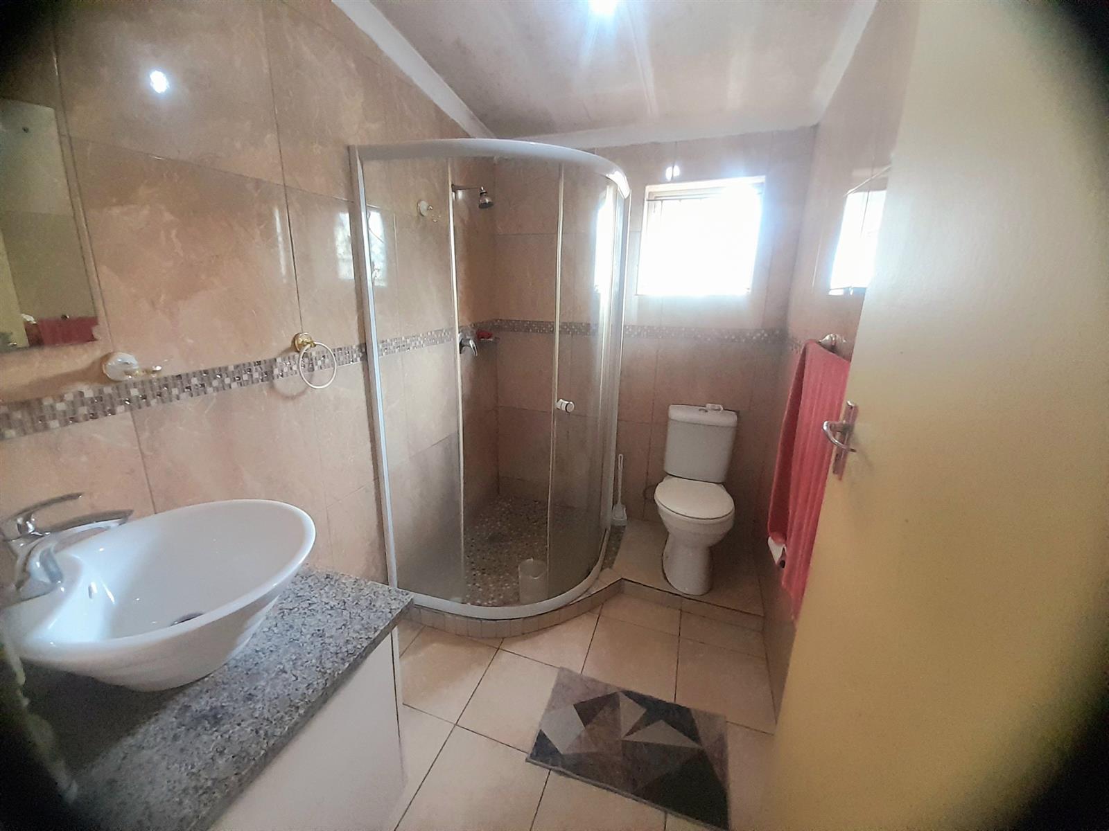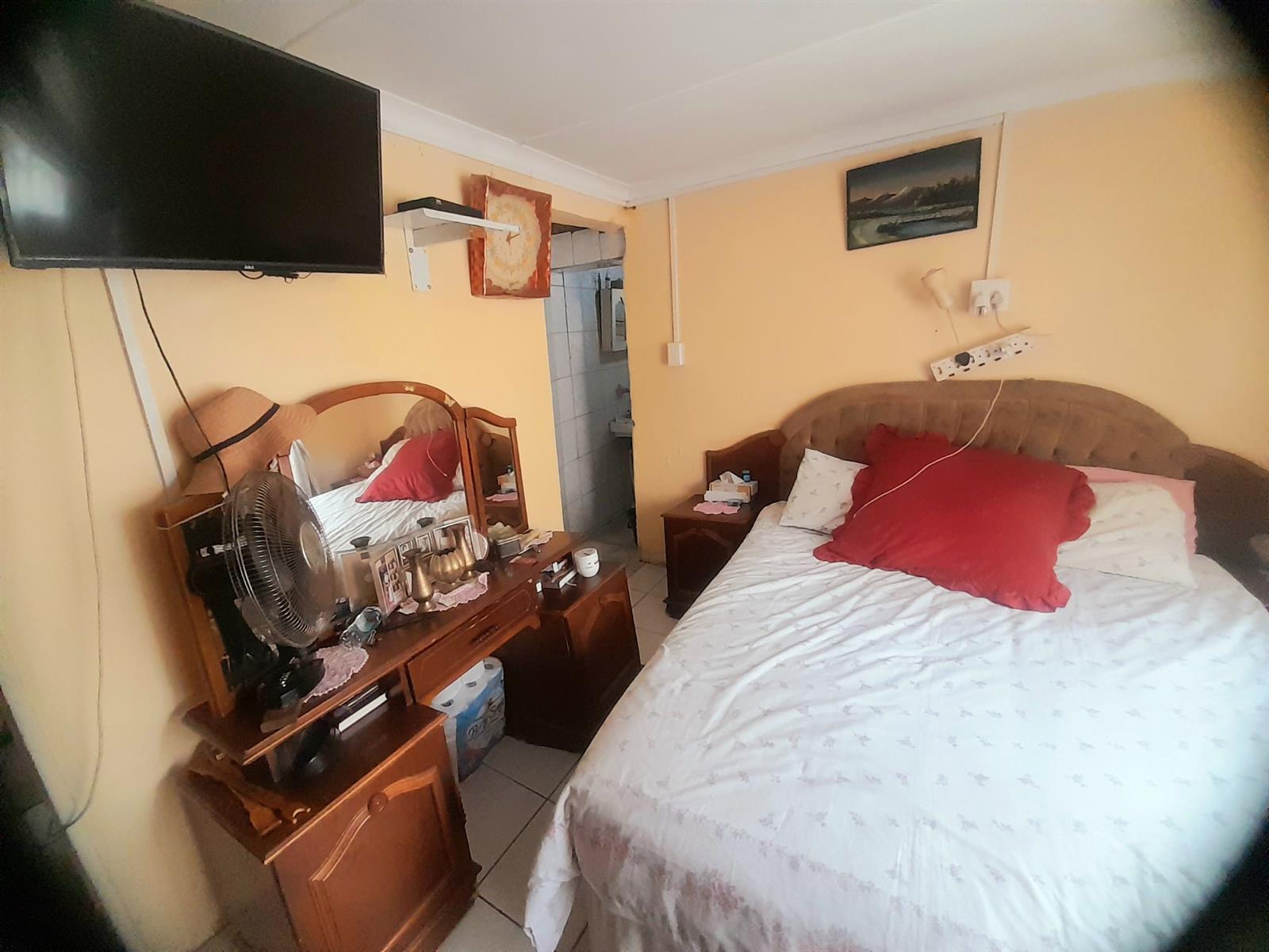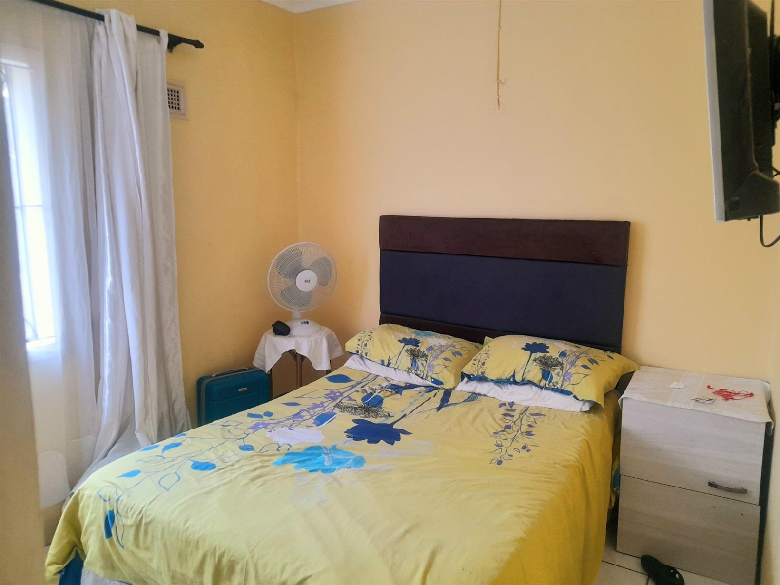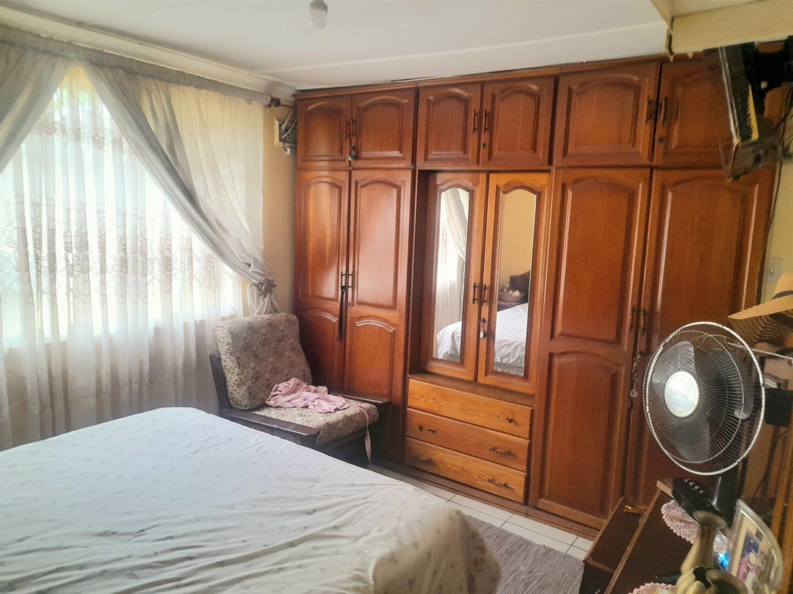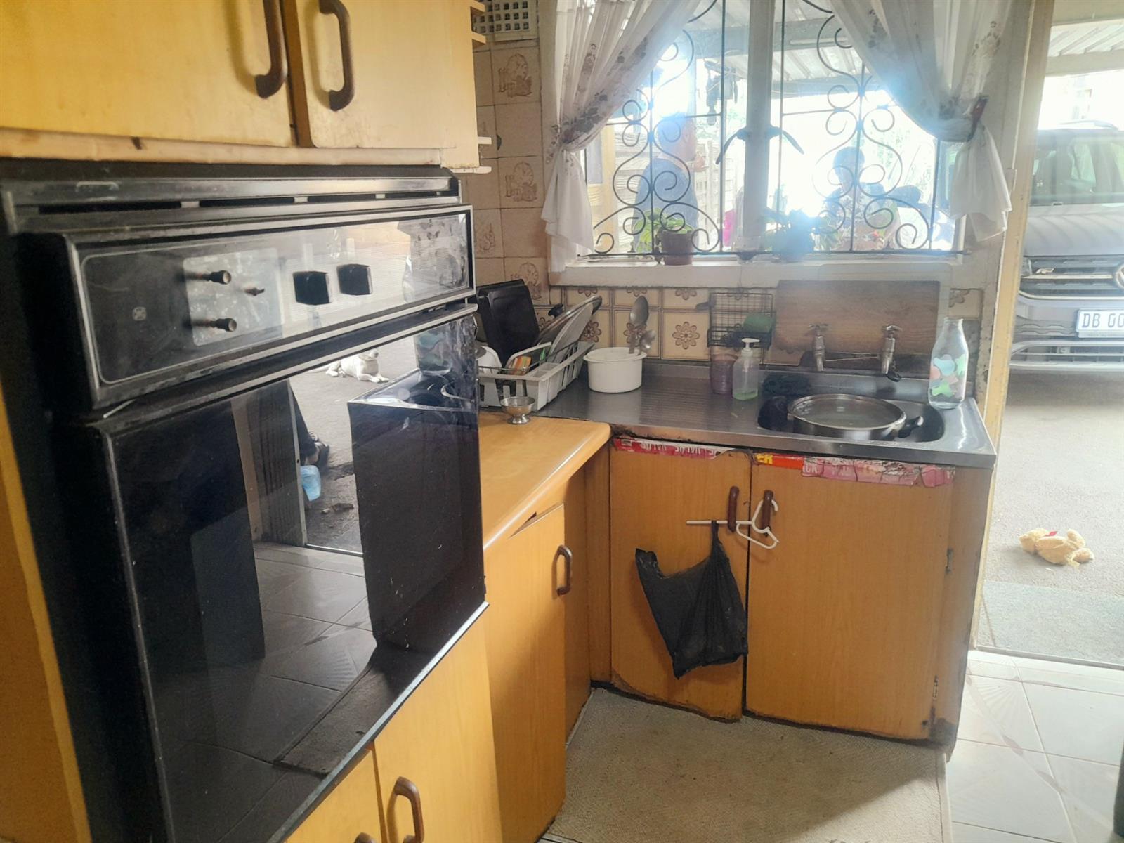 The kitchen is well‐equipped with built‐in cupboards, an eye‐level oven, hob, and extractor fan. All rooms are tiled, and every window and door is secured with burglar bars for peace of mind.