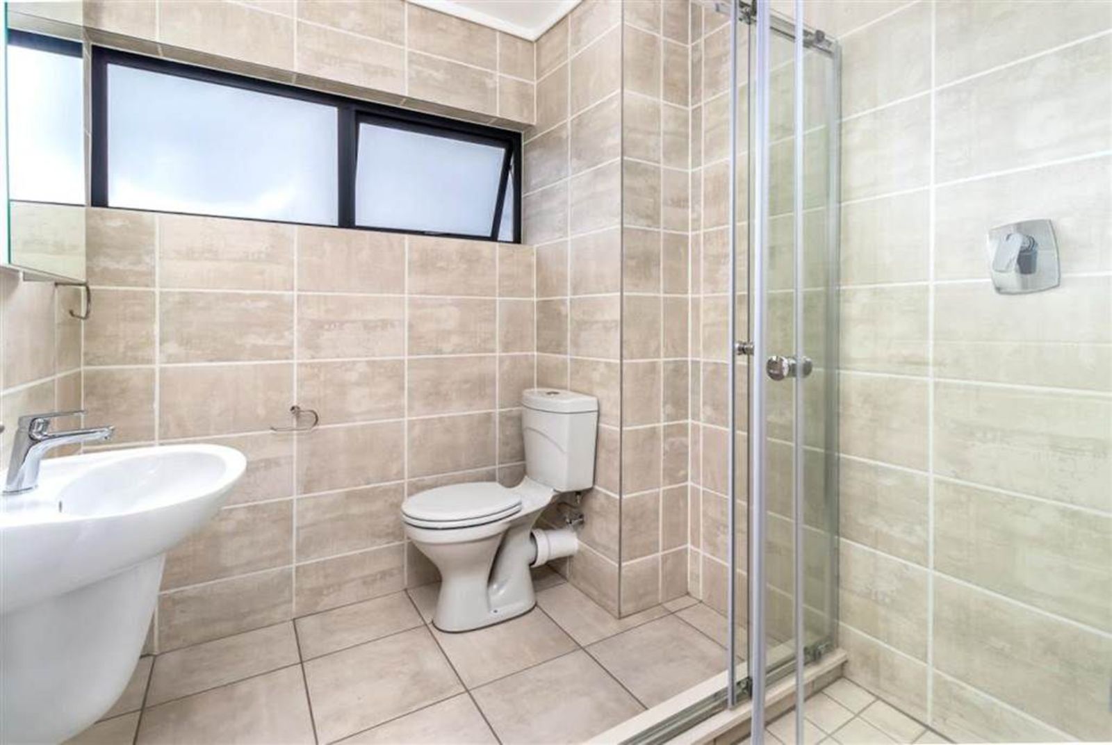 1 bathroom with shower, basin, and toilet (not en-suite)