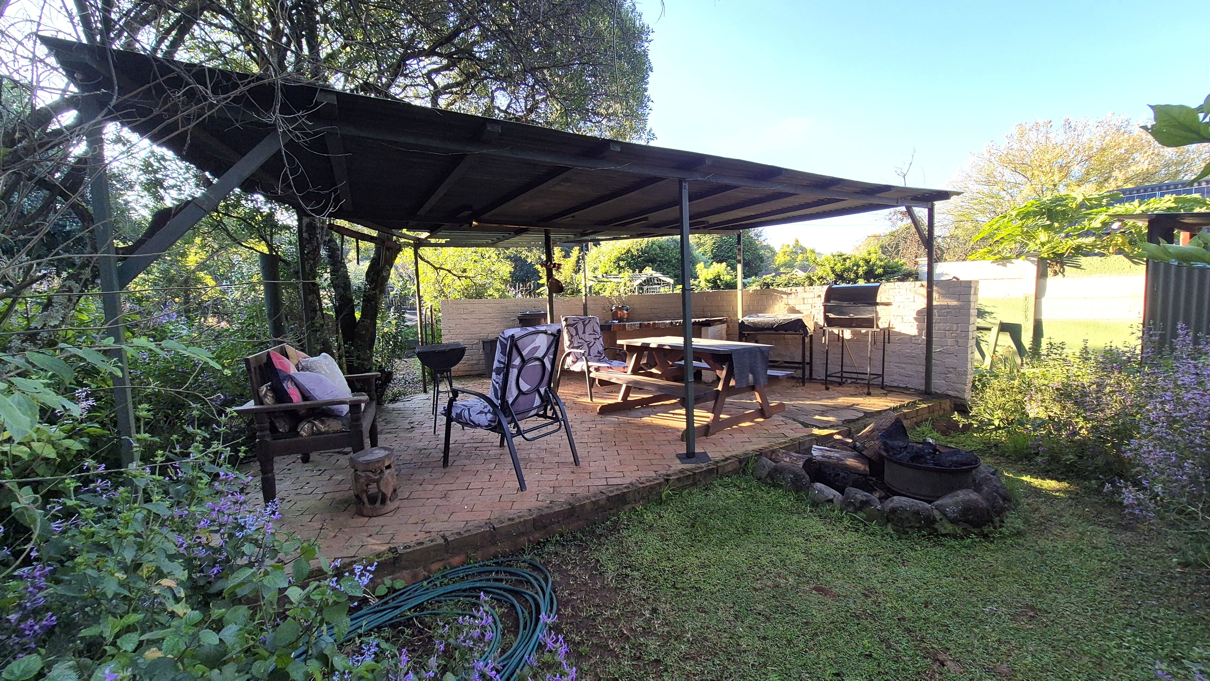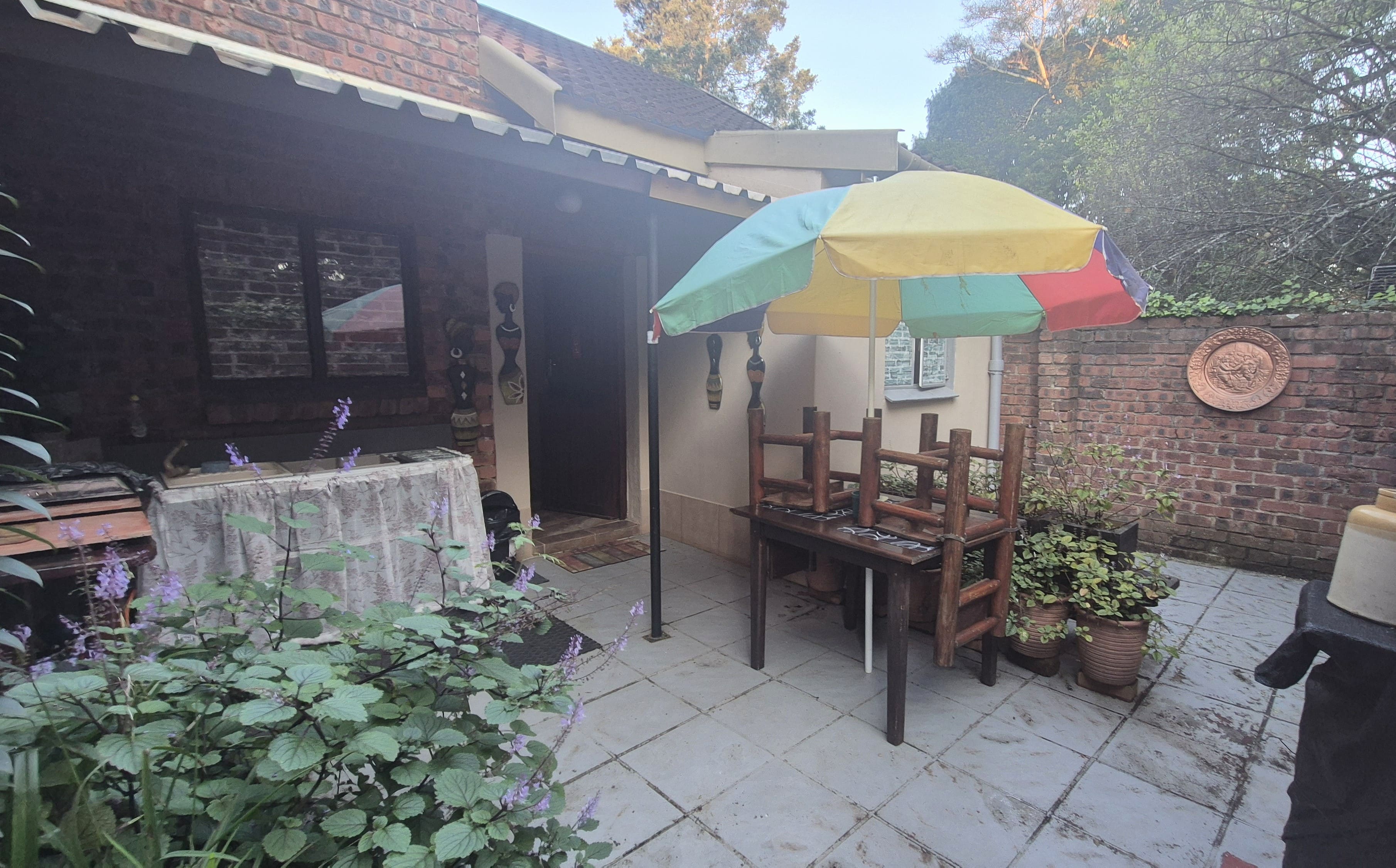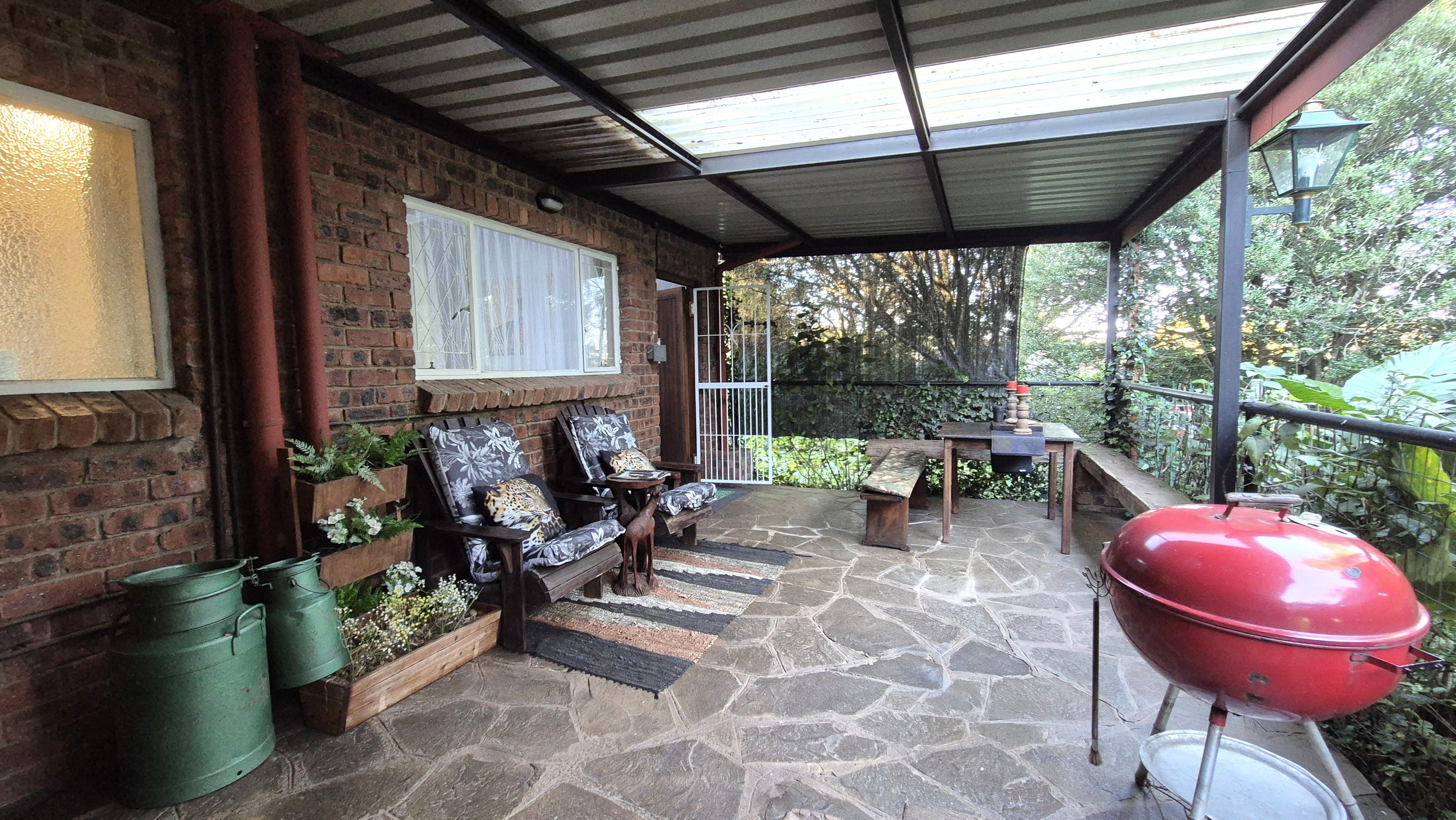 The garden is not just beautiful but functional too, with JoJo tanks on a pressure pump system for water savings, a brand-new boma and braai area for relaxed gatherings, and a prepaid electricity system in place. Security includes an alarm, external beams, and eight surveillance cameras for peace of mind.
