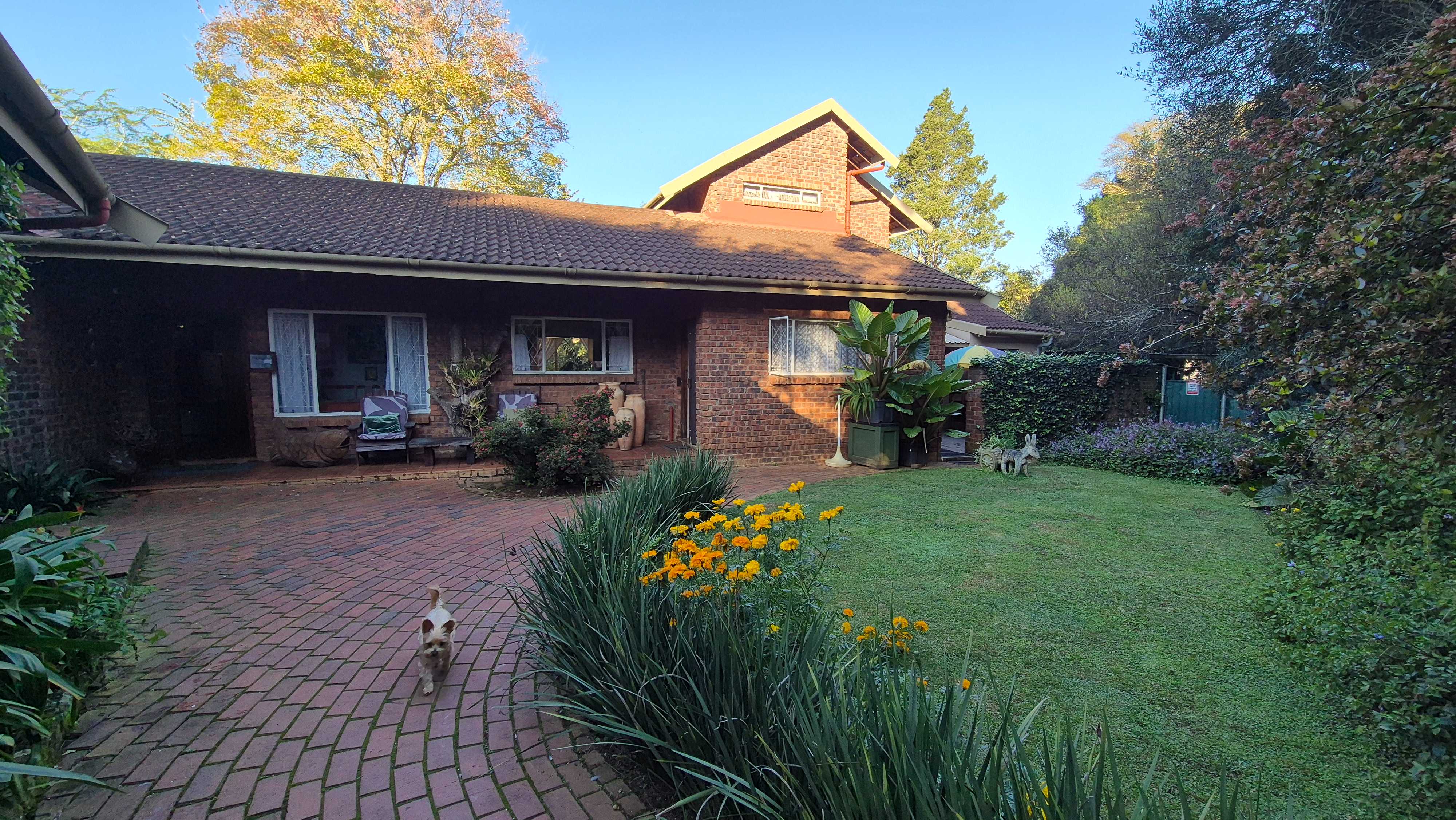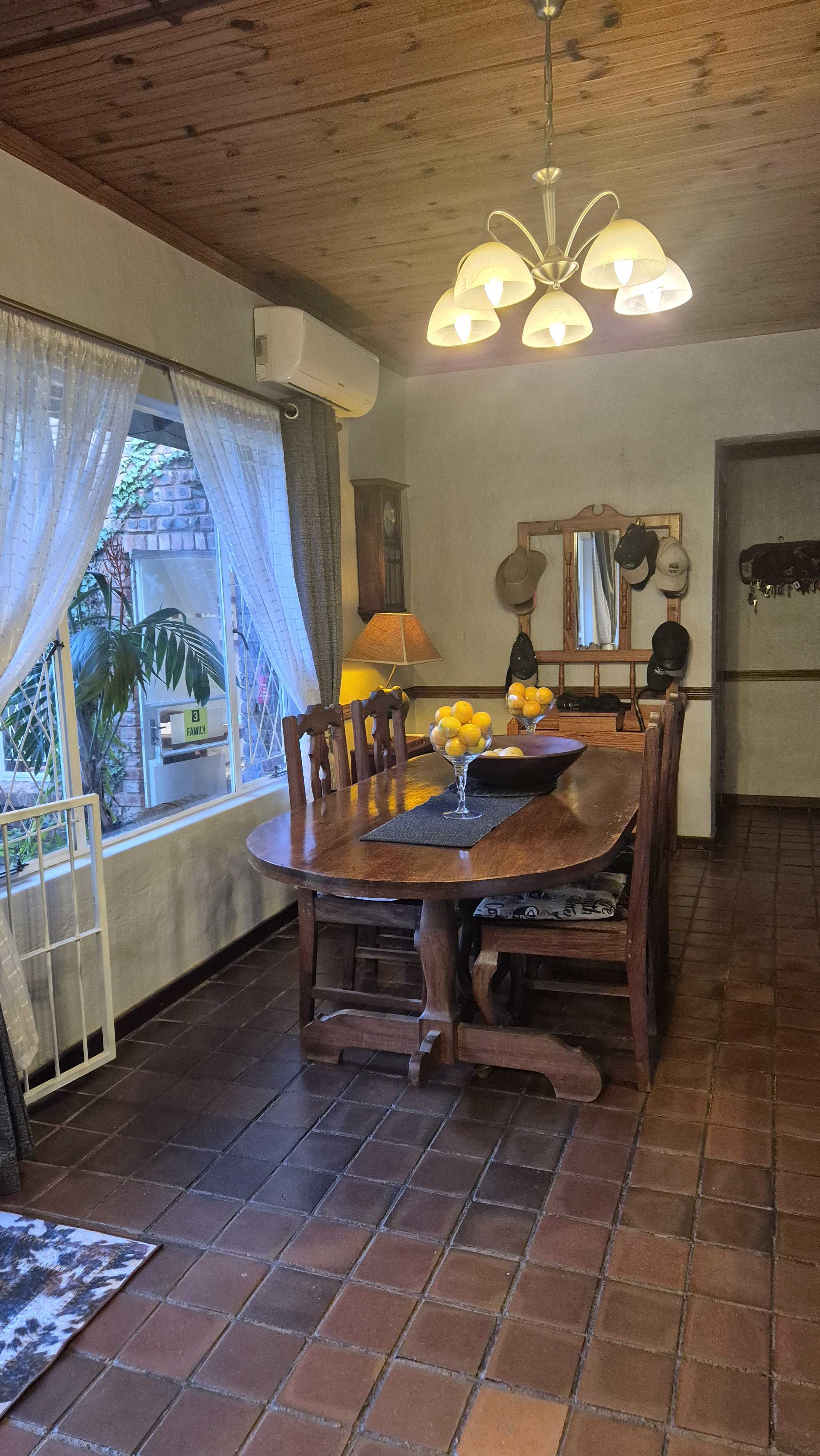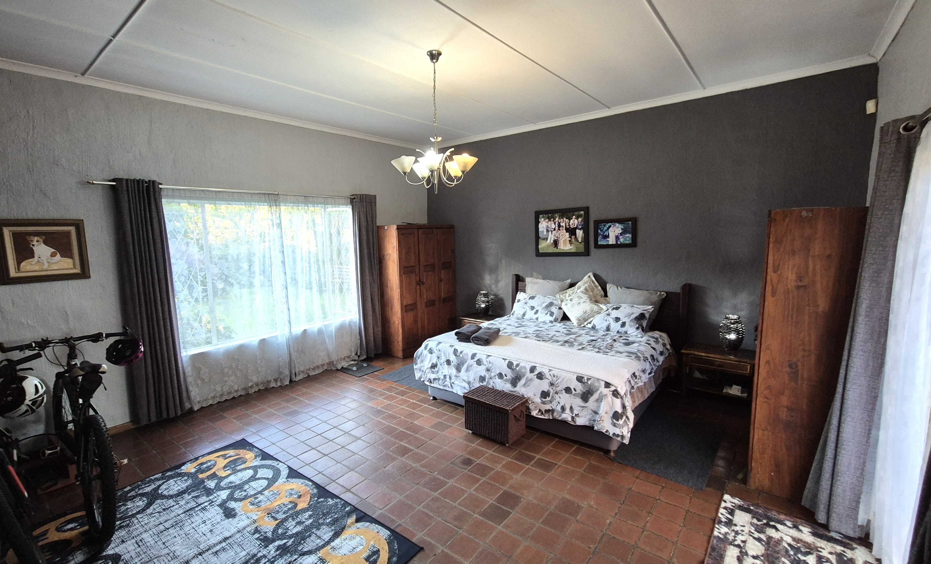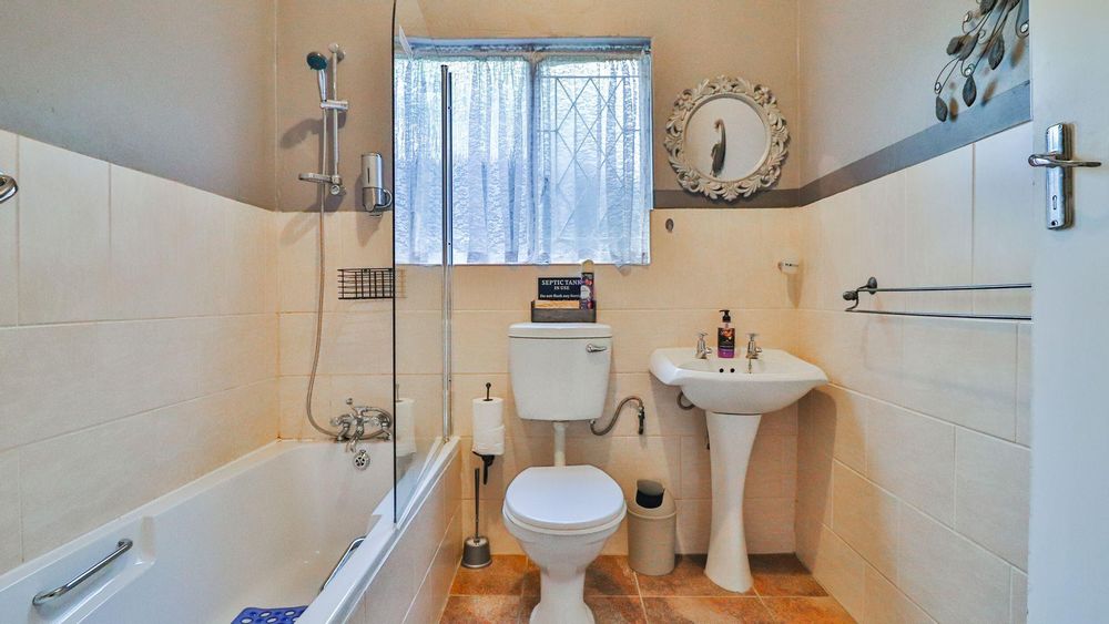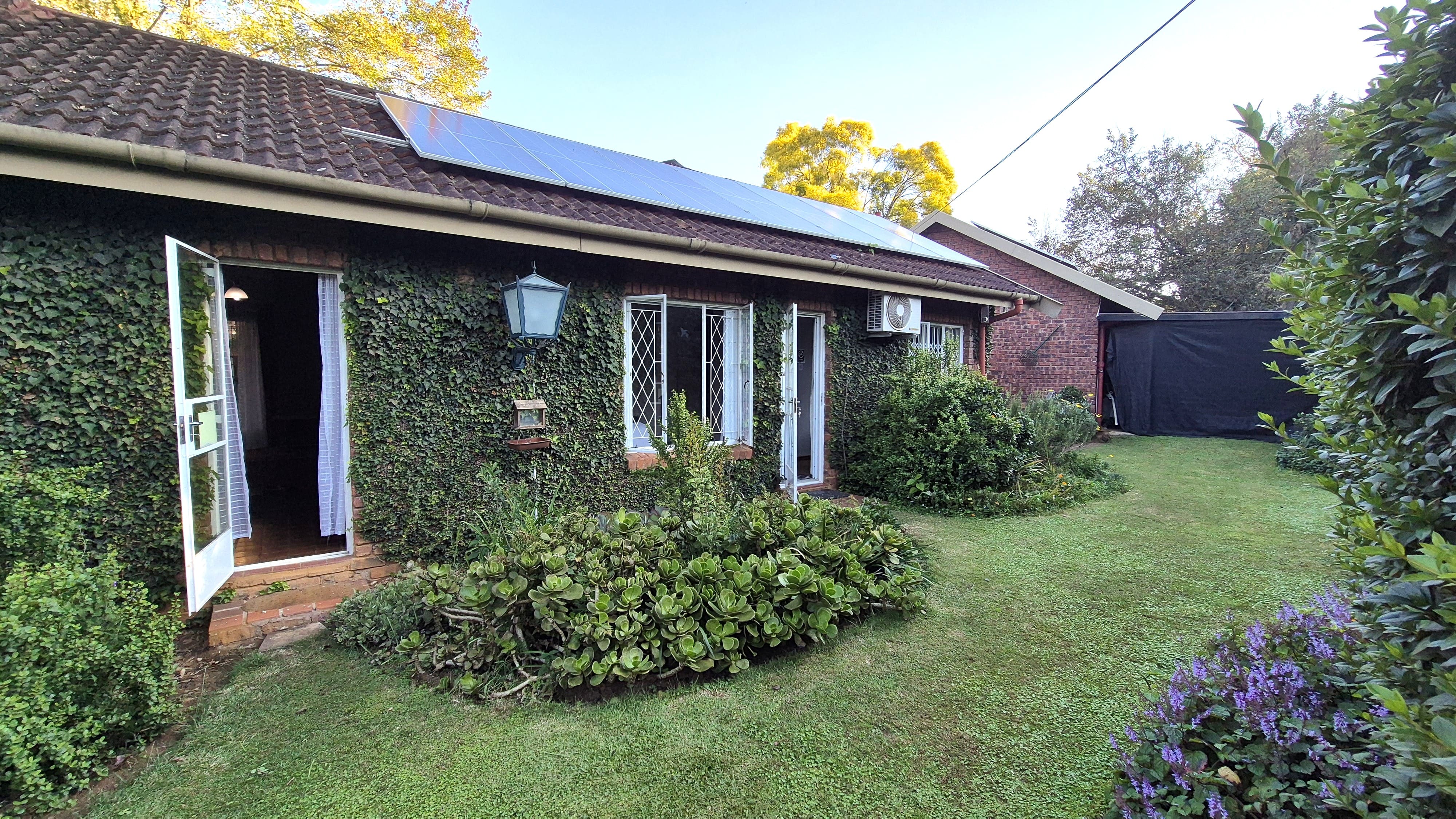 The garden is not just beautiful but functional too, with JoJo tanks on a pressure pump system for water savings, a brand-new boma and braai area for relaxed gatherings, and a prepaid electricity system in place. Security includes an alarm, external beams, and eight surveillance cameras for peace of mind.