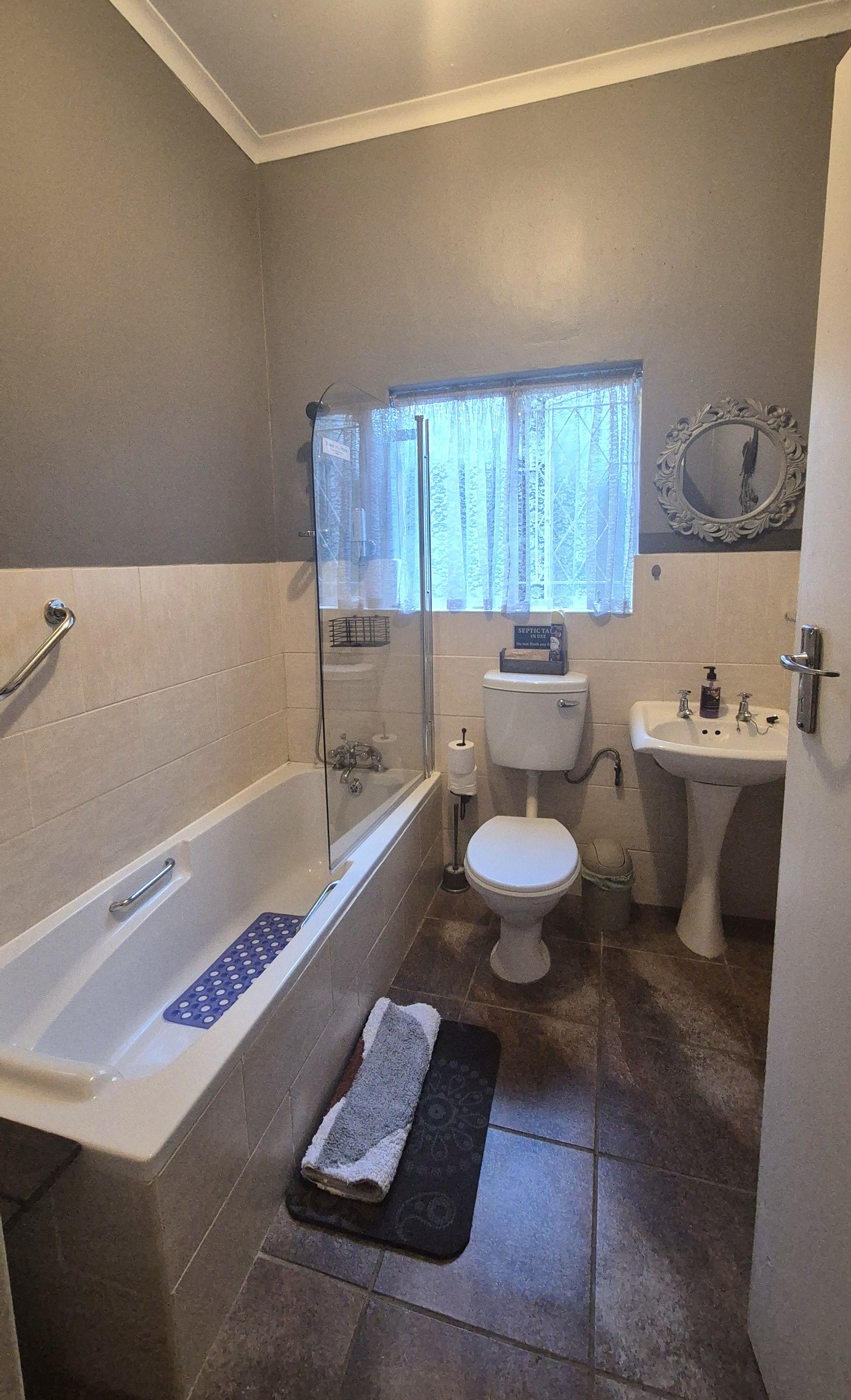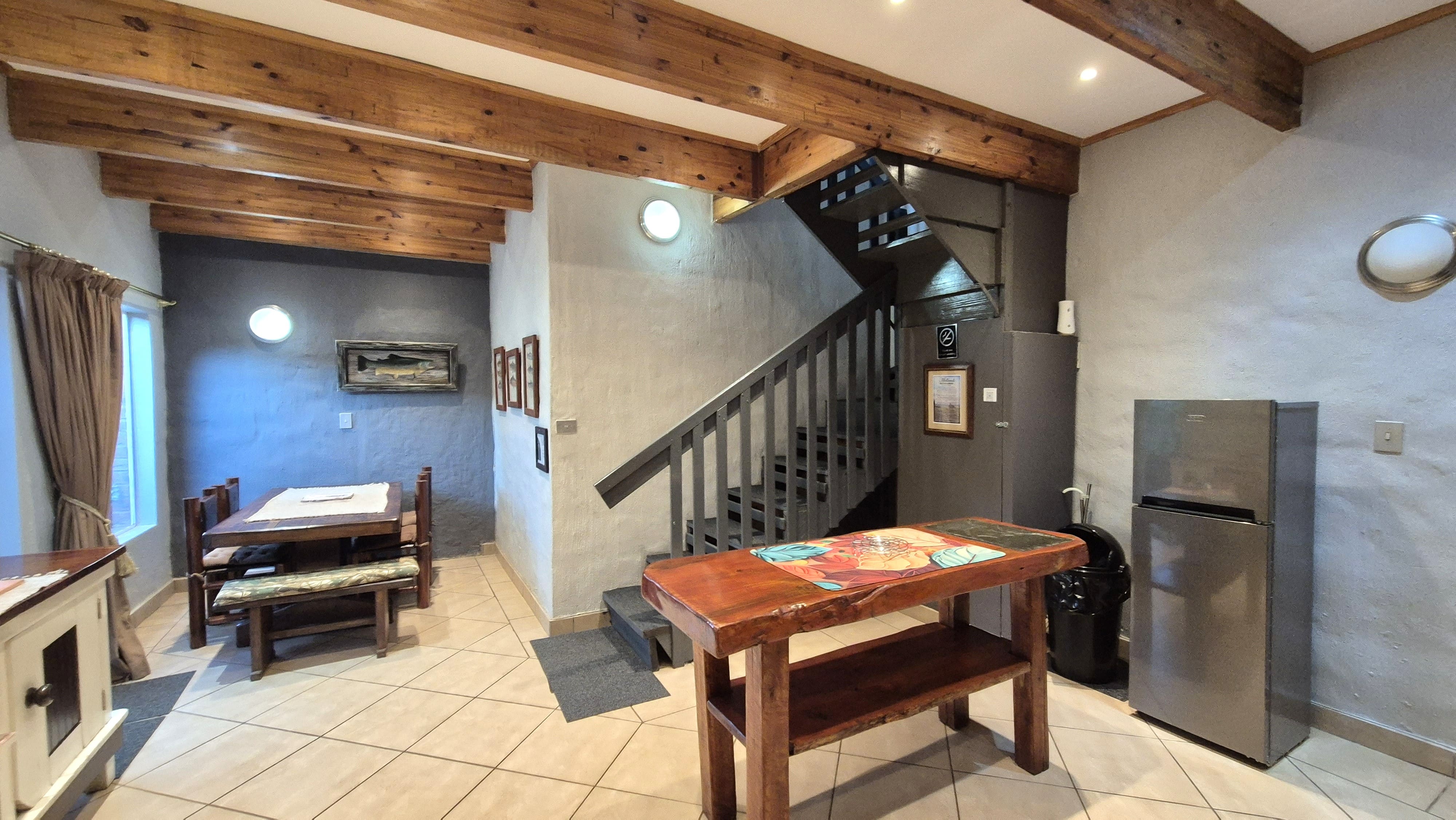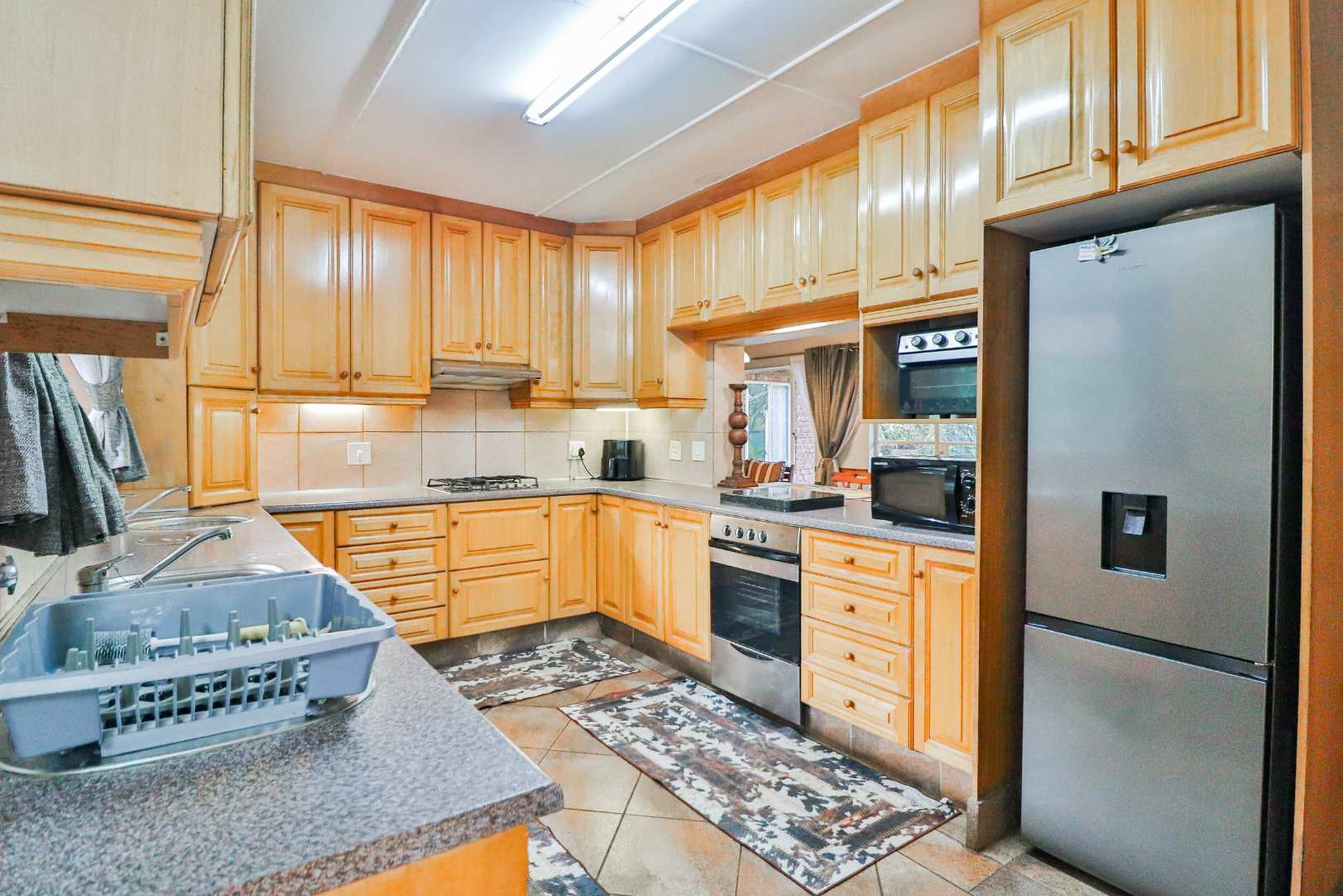 The garden is not just beautiful but functional too, with JoJo tanks on a pressure pump system for water savings, a brand-new boma and braai area for relaxed gatherings, and a prepaid electricity system in place. Security includes an alarm, external beams, and eight surveillance cameras for peace of mind.