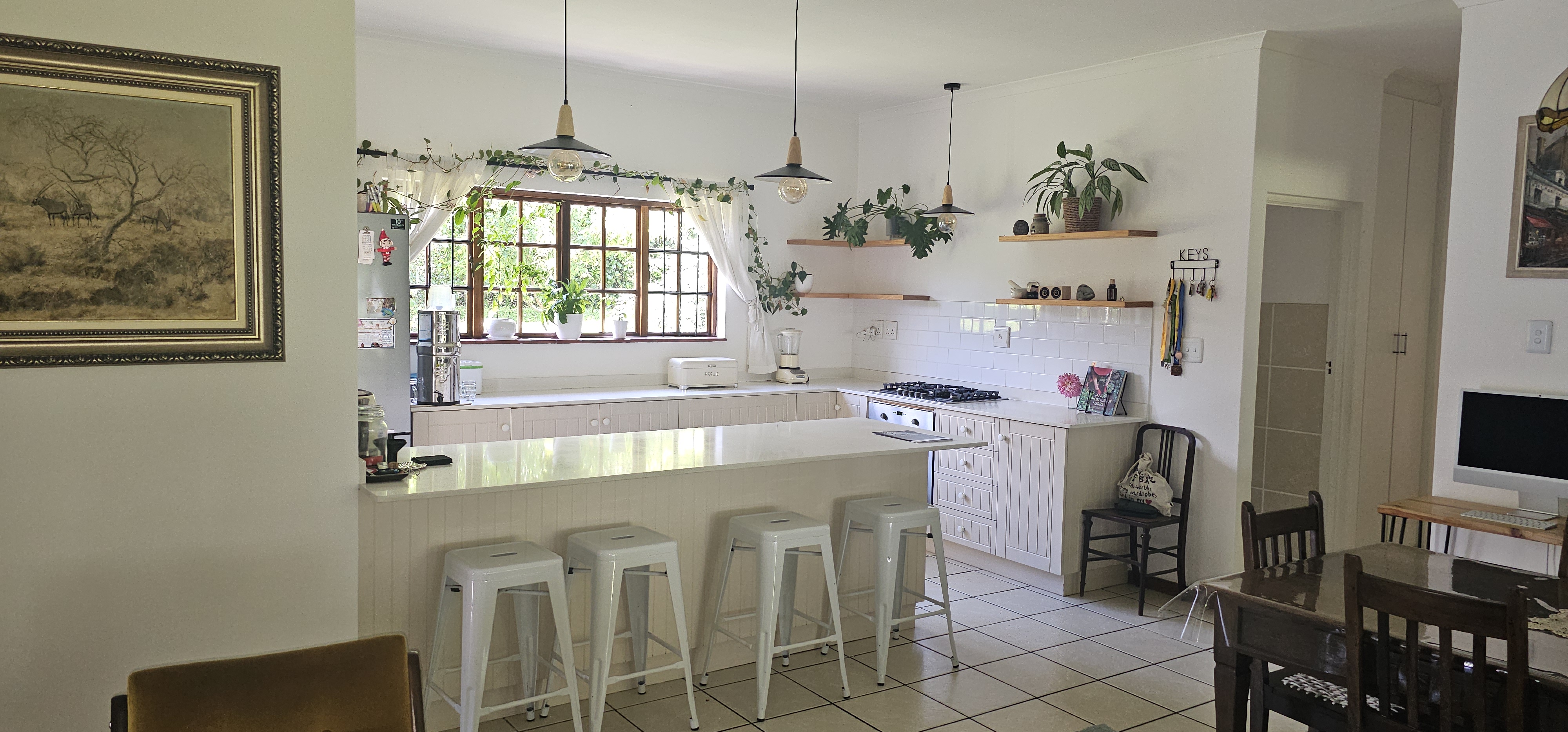 This lovely home offers open-plan living, a separate scullery, and a cozy fireplace for winter comfort. The main bedroom includes a full en-suite, with a second bathroom featuring a shower for convenience.