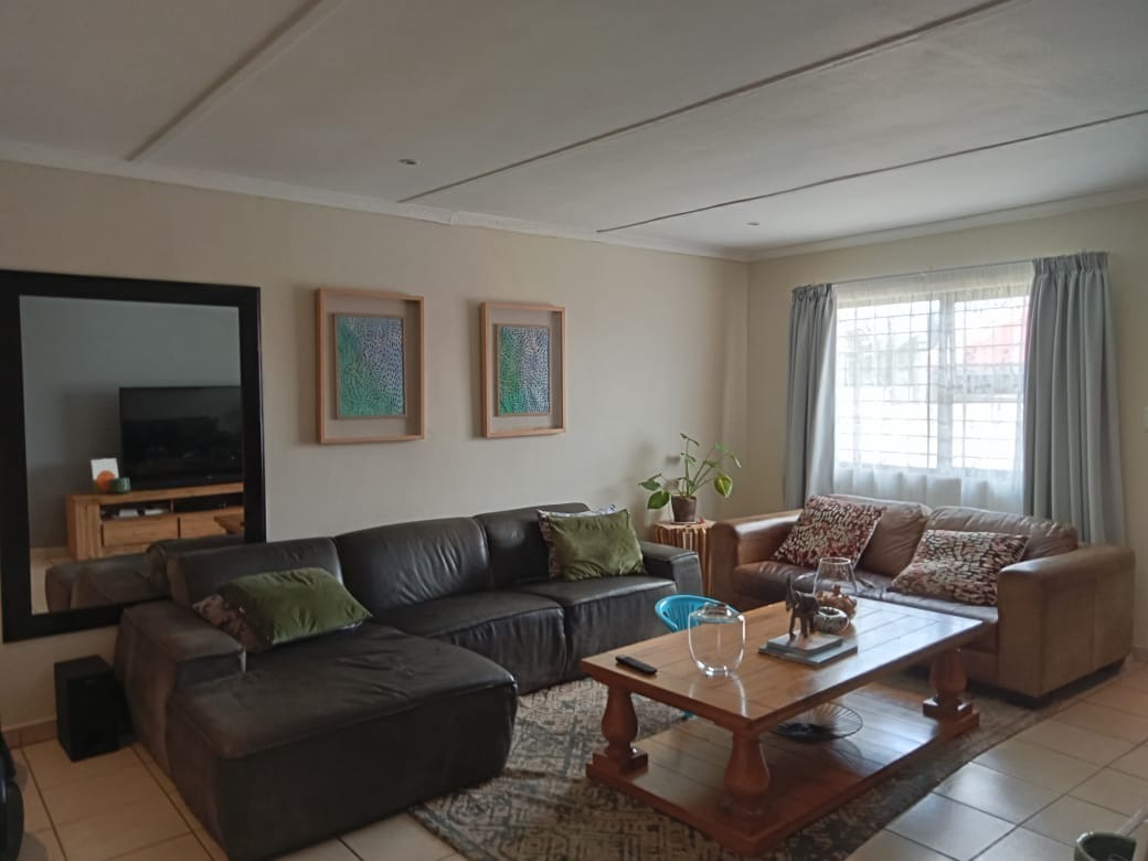 The open-plan lounge flows seamlessly into an extra-large kitchen, creating a warm and inviting space for family gatherings or entertaining guests. Step outside to a small, easy-to-maintain garden, complete with a built-in braai - perfect for weekend braais or relaxing evenings.