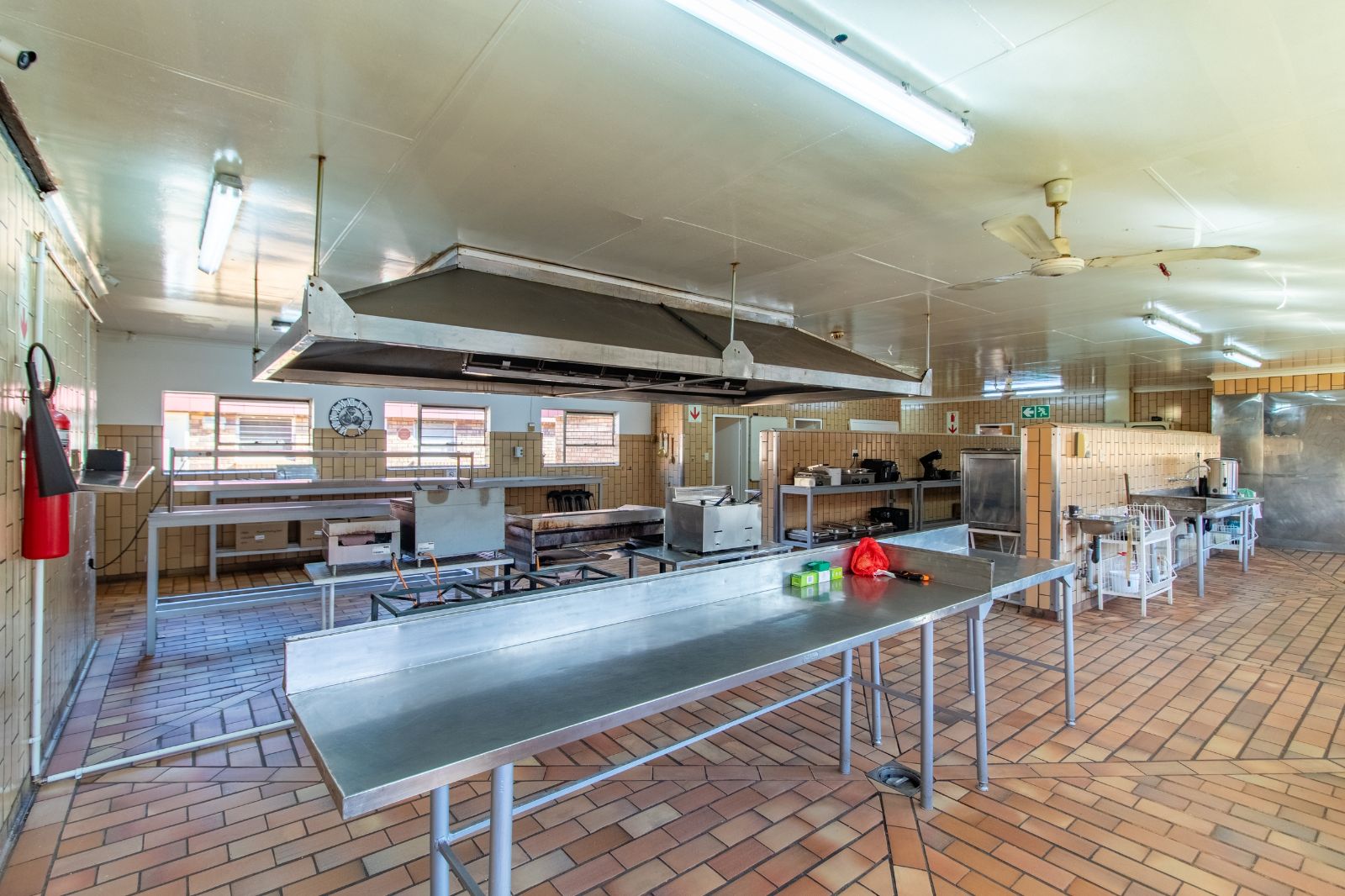 Well-equipped industrious kitchen, primed for catering large-scale events and daily dining operations, fitted with both gas and electricity supply. The kitchen has a walk-in cold room, crockery store-room, a dry-goods storage and walk-in pantry which makes it ideal for commercial catering and even culinary training or a hotel-school.