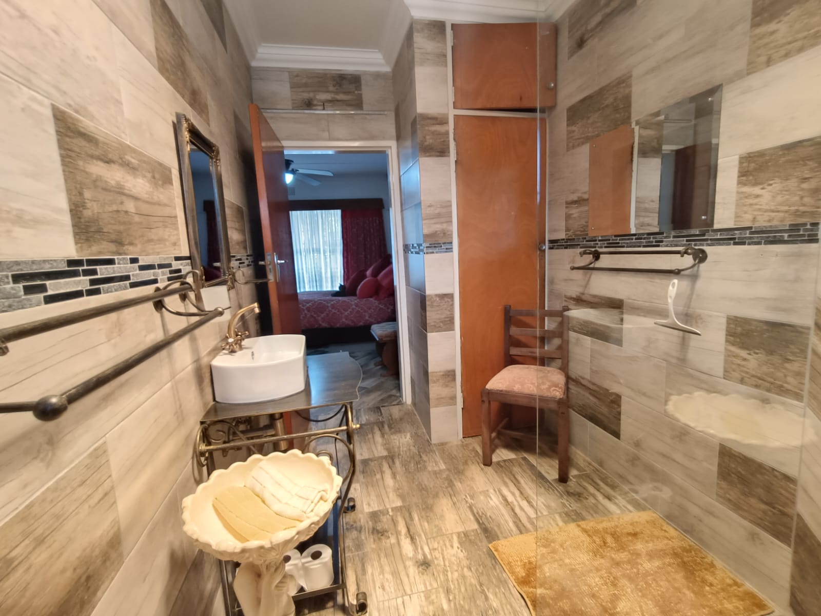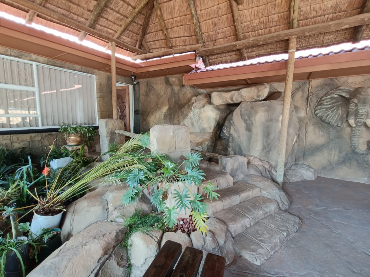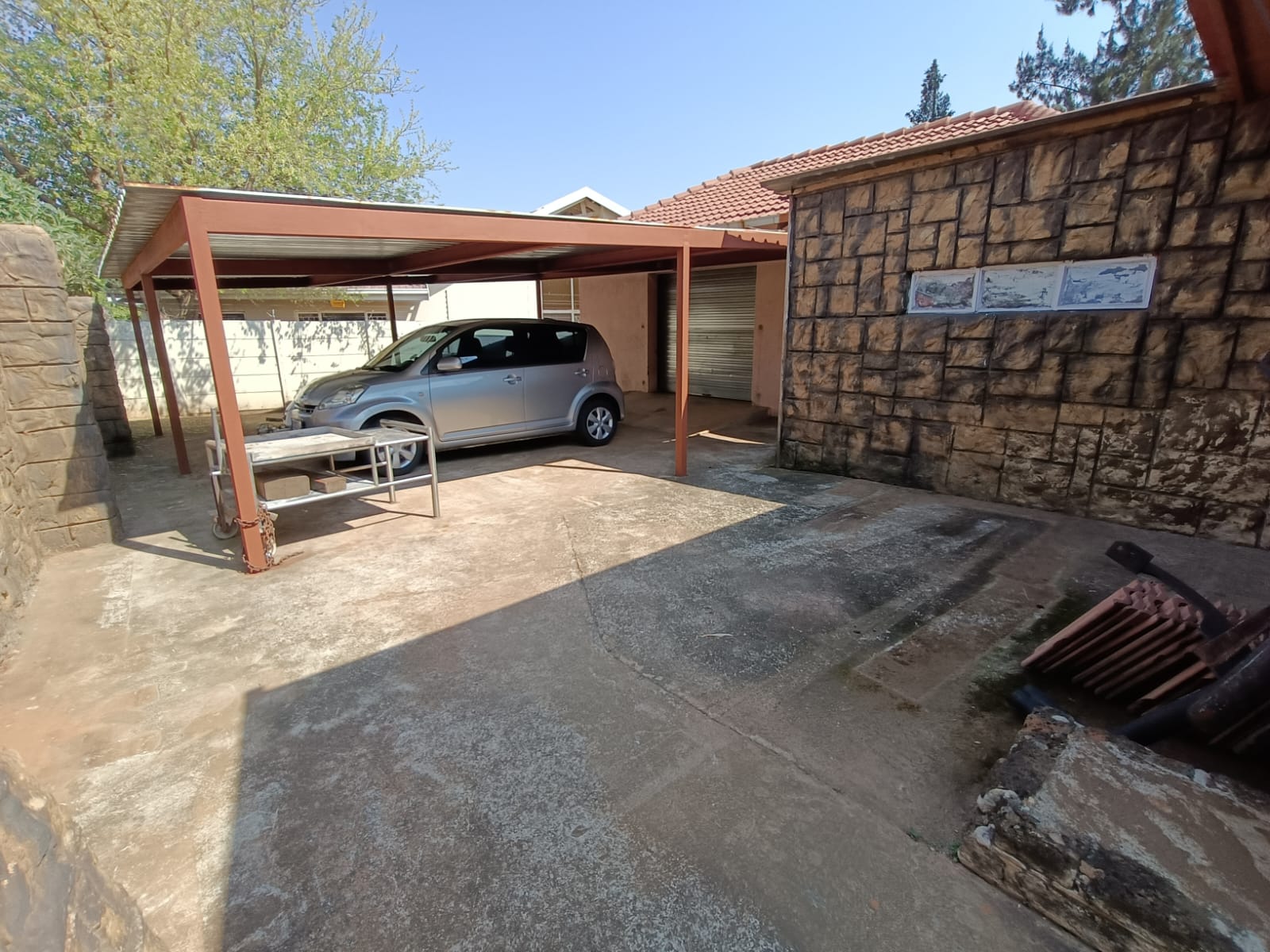 Double garage, and single carport. Outside room and storage room, as well as outside toilet.