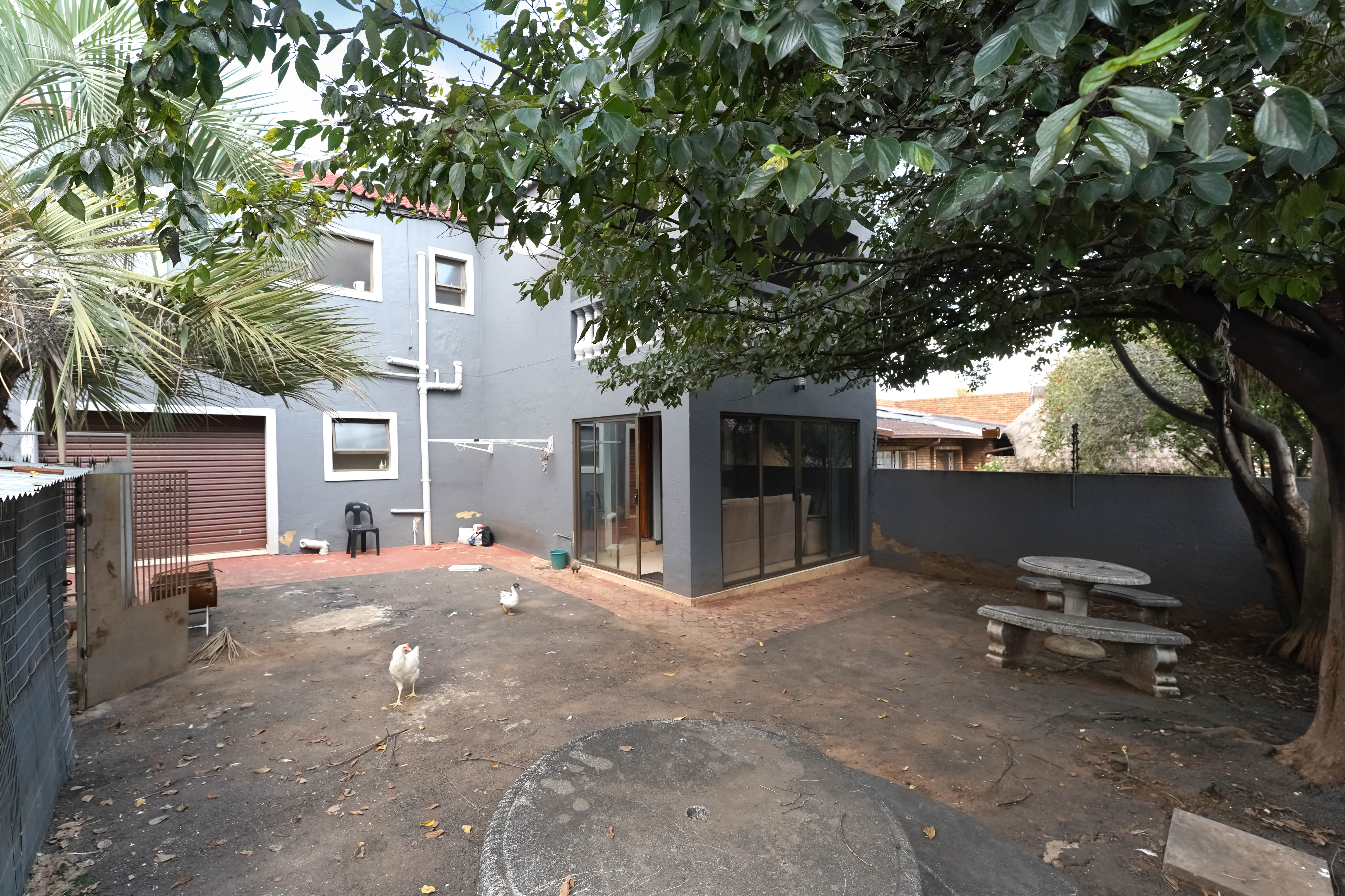 Low maintenance garden with front and back yard, front wall fencing and pallaside with electric gate and motor paved driveway Double garage with automated garage doors, drive through to the back garden.