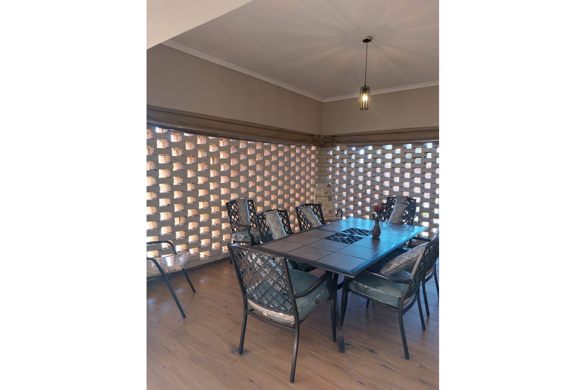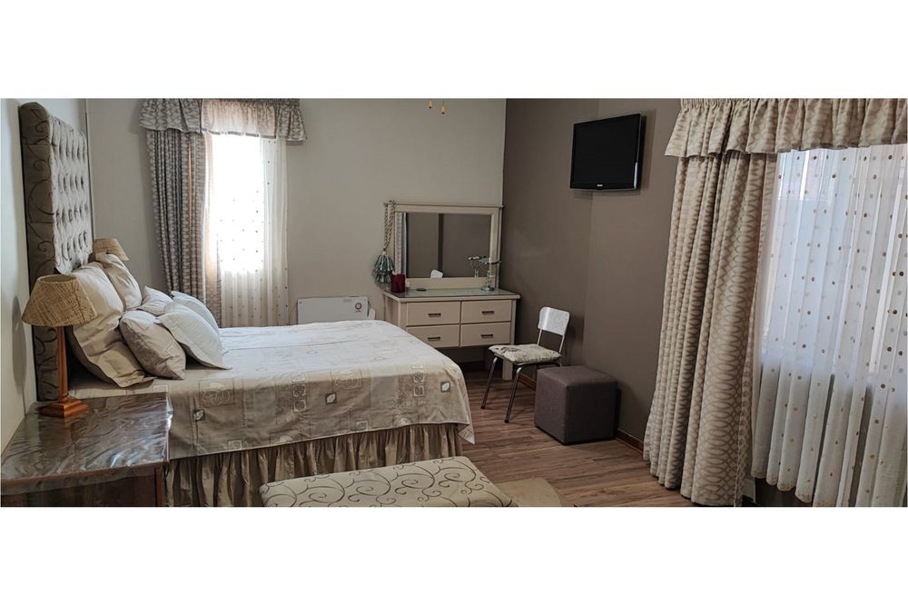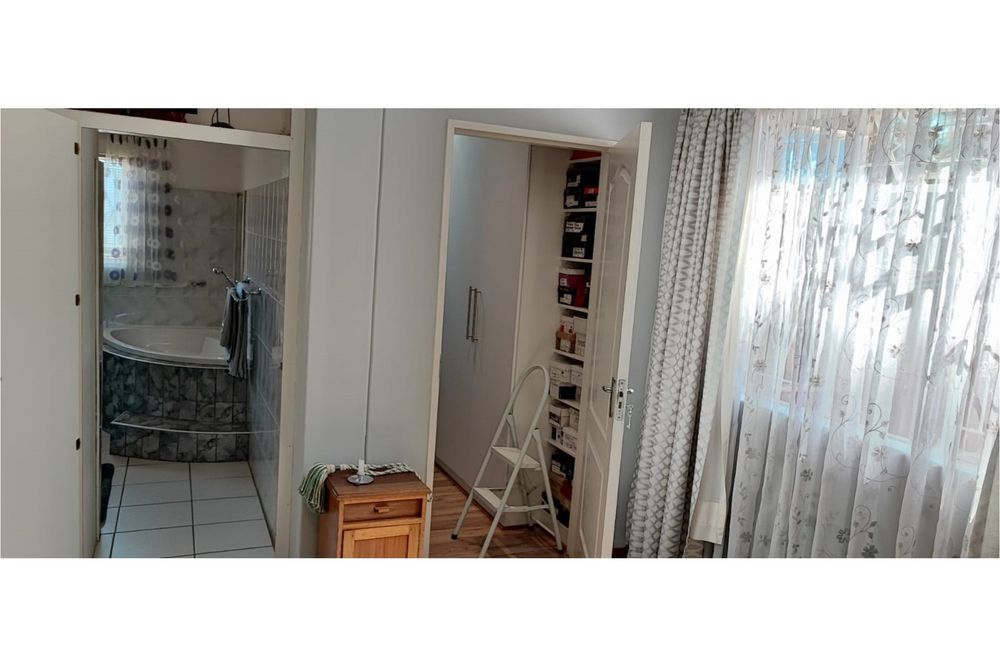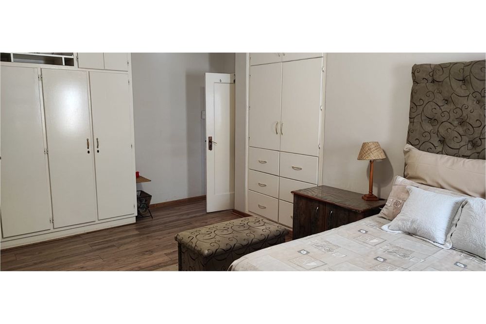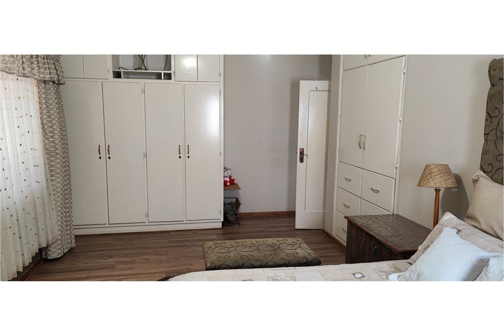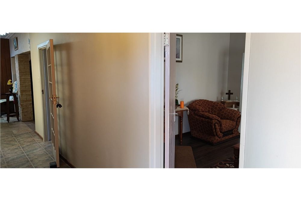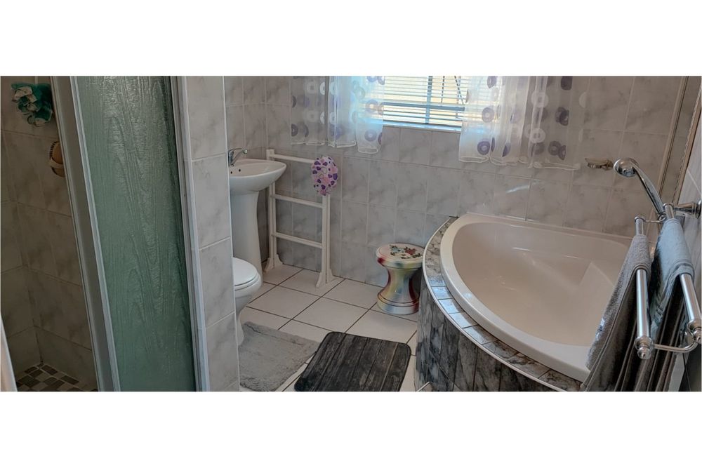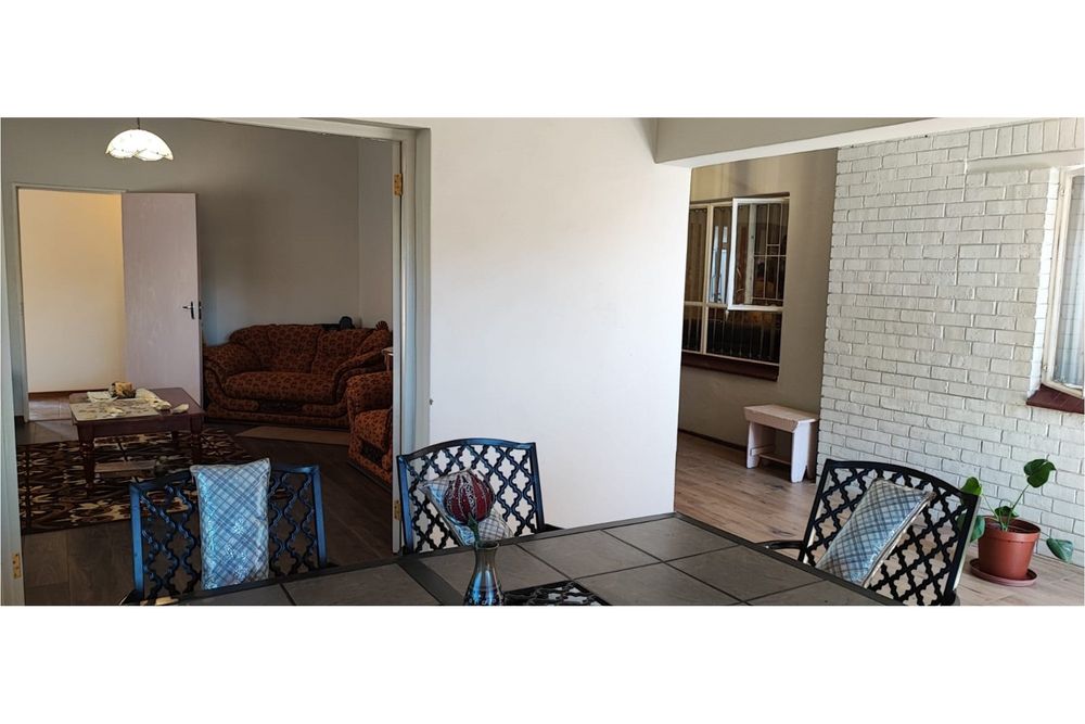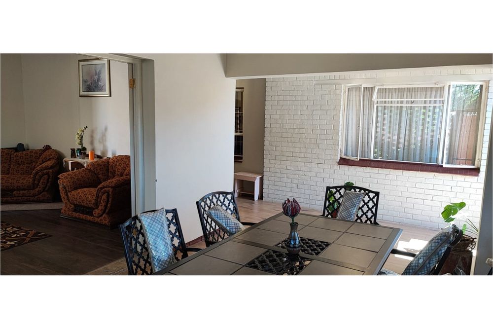 Key Features:Bedrooms:Three spacious bedrooms designed for relaxation and rest.Bathrooms:Two well-appointed bathrooms for added convenience.Living Spaces:A versatile family room, a cozy lounge, and a dining room perfect for hosting gatherings. The second lounge features underfloor heating, ensuring warmth and comfort during cooler months.Kitchen:A fully equipped kitchen with built-in cupboards, an eye-level oven, hob, and extractor fan, complemented by an outside laundry for added practicality.Outdoor Living:Enjoy the outdoors on the covered patio, complete with patio furniture included in the sale.Parking:Ample parking space for up to eight vehicles, ideal for families with multiple cars or visitors.Extras:A beautifully maintained garden, a storage room for added functionality, and the peace of mind that comes with a fenced property fitted with burglar bars and an alarm system.