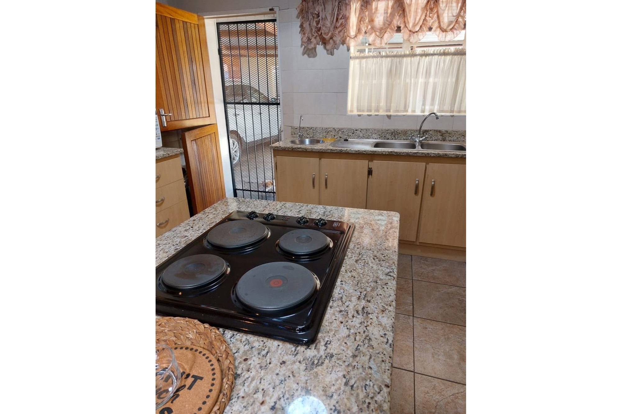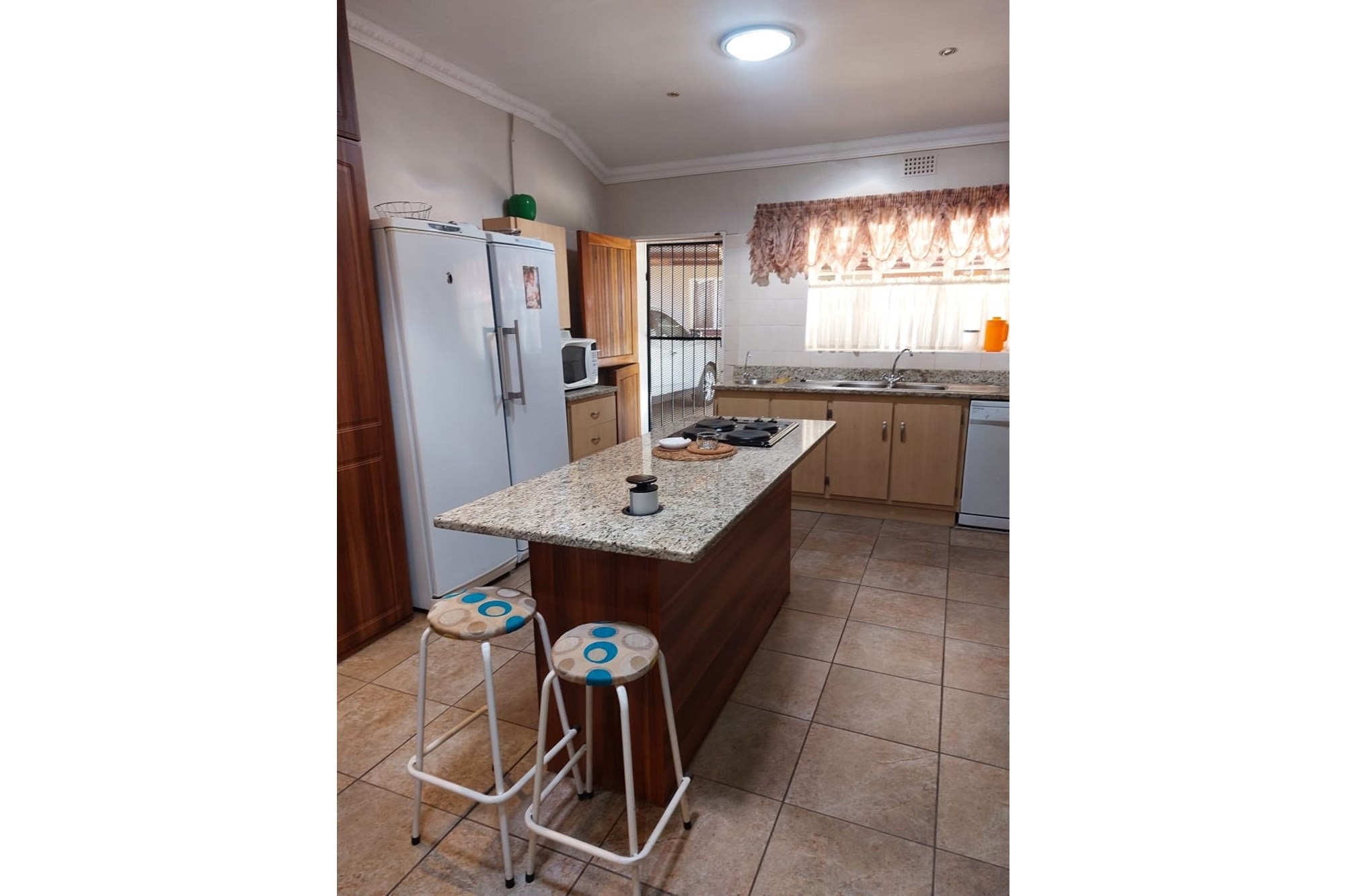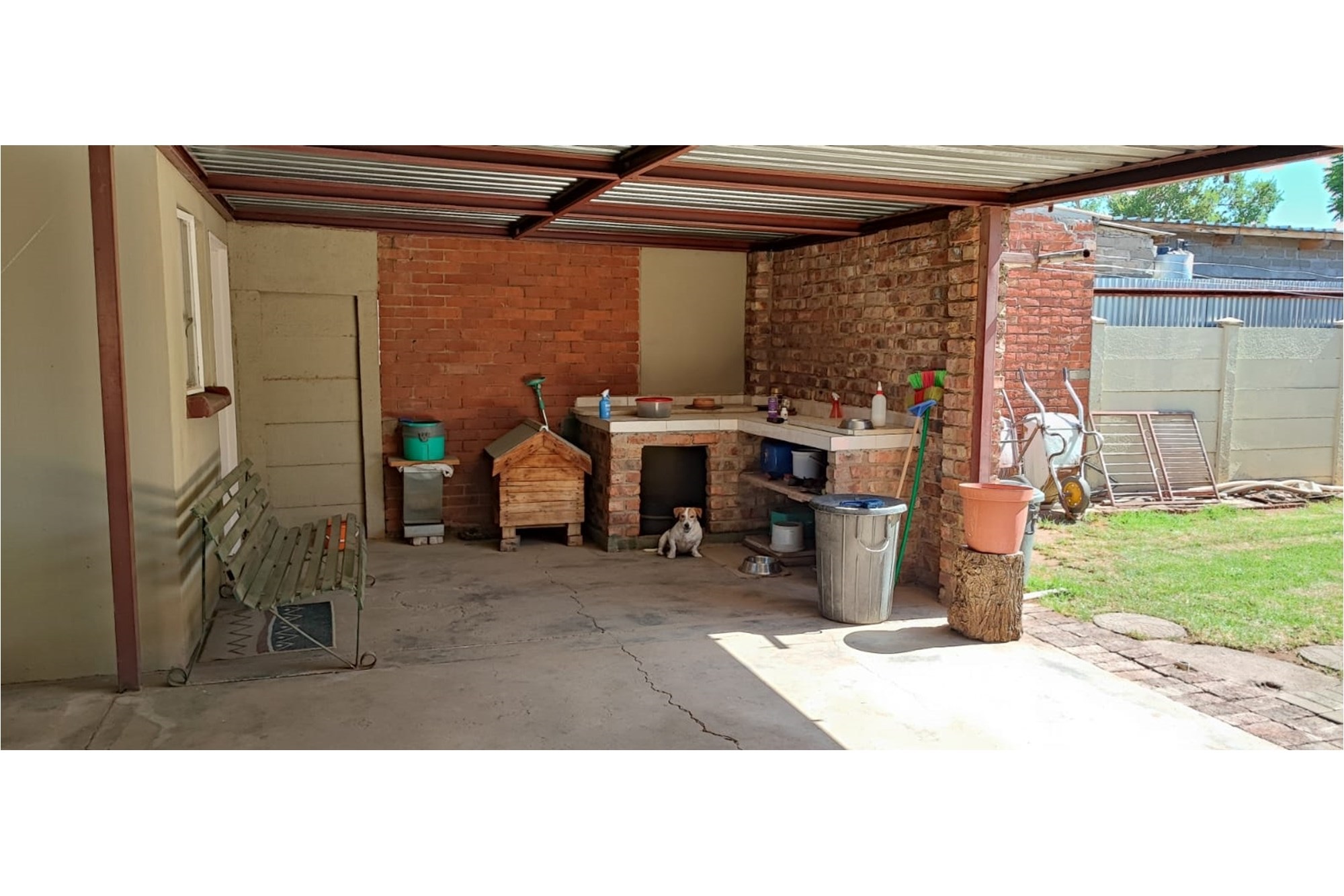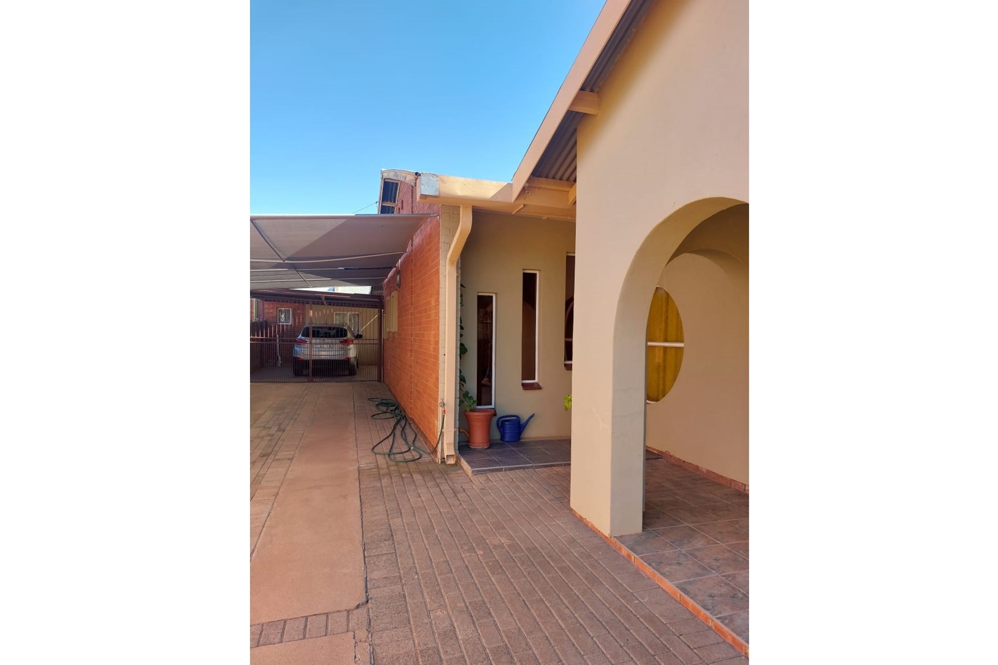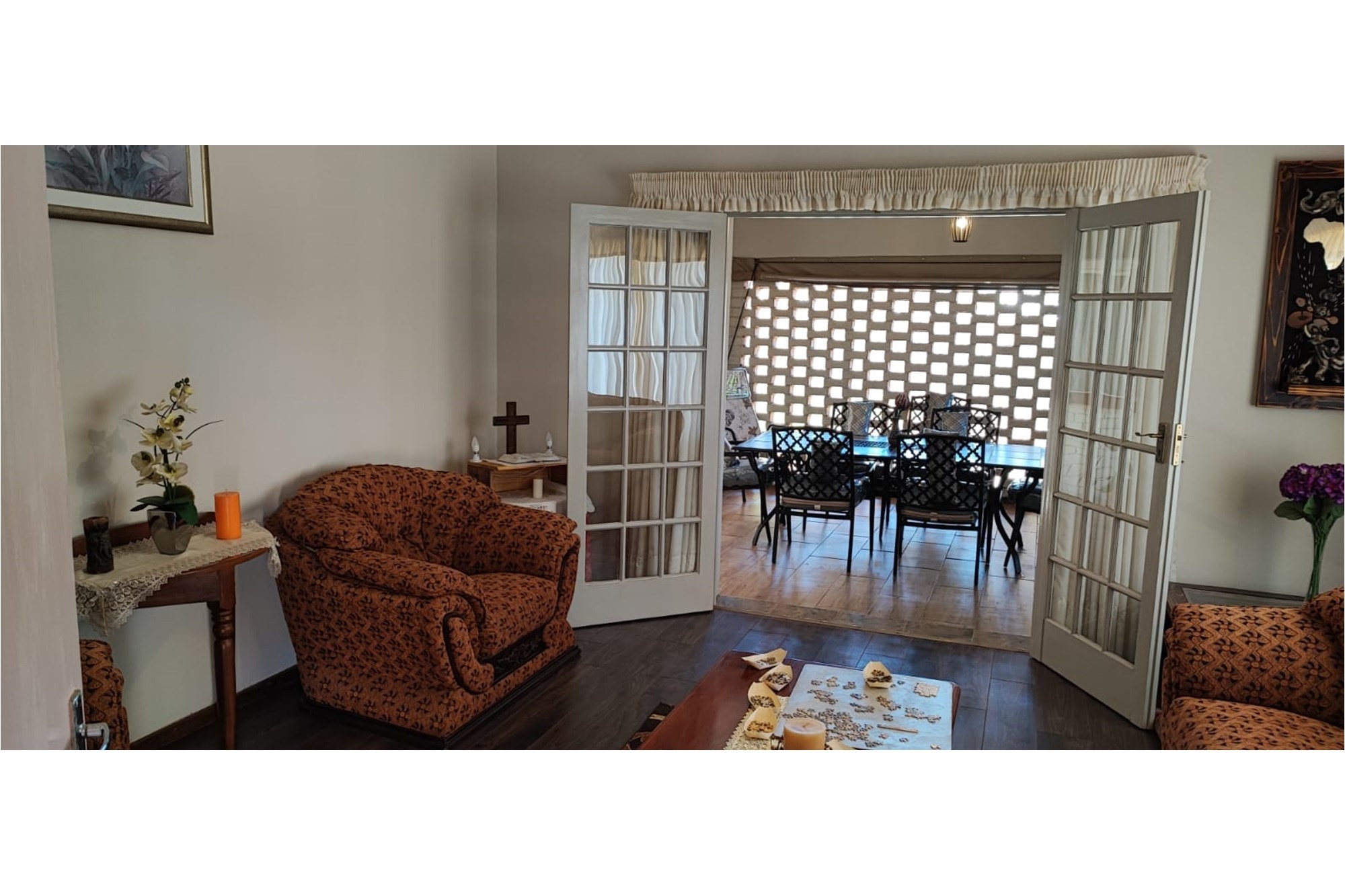 Key Features:Bedrooms:Three spacious bedrooms designed for relaxation and rest.Bathrooms:Two well-appointed bathrooms for added convenience.Living Spaces:A versatile family room, a cozy lounge, and a dining room perfect for hosting gatherings. The second lounge features underfloor heating, ensuring warmth and comfort during cooler months.Kitchen:A fully equipped kitchen with built-in cupboards, an eye-level oven, hob, and extractor fan, complemented by an outside laundry for added practicality.Outdoor Living:Enjoy the outdoors on the covered patio, complete with patio furniture included in the sale.Parking:Ample parking space for up to eight vehicles, ideal for families with multiple cars or visitors.Extras:A beautifully maintained garden, a storage room for added functionality, and the peace of mind that comes with a fenced property fitted with burglar bars and an alarm system.