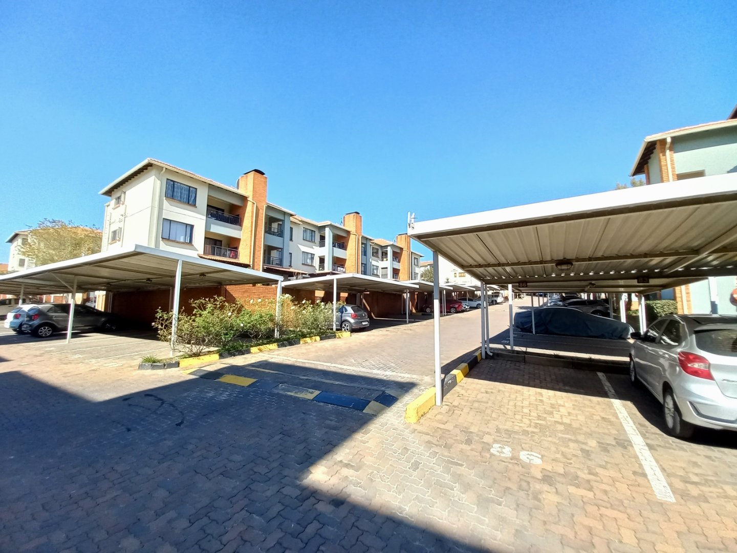 Outdoor & Communal Perks: Two covered carports, extra parking, communal pool, braai area, fully equipped gym, squash courts, clubhouse, playgrounds, baby pool, on-site crèche