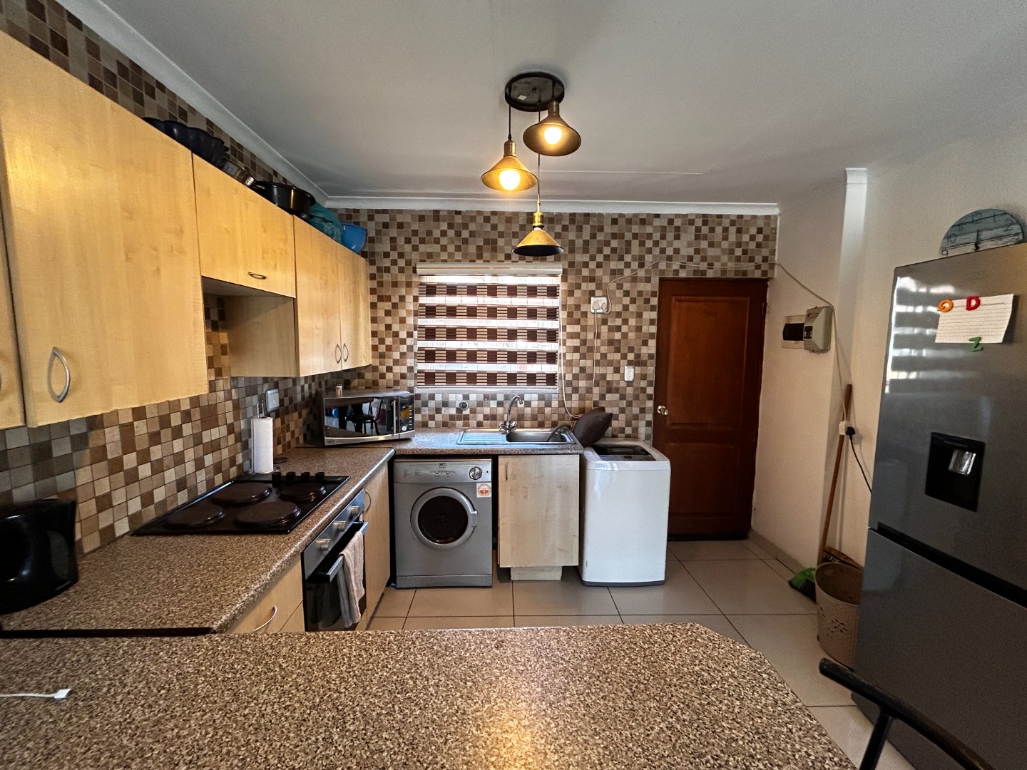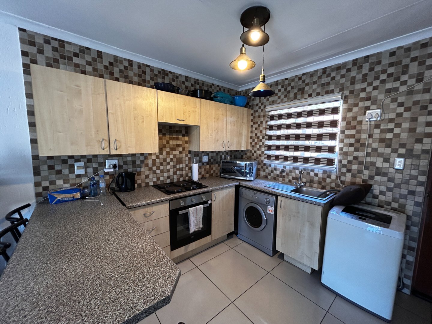 The stylish kitchen is fitted with granite countertops and prepaid electricity is available for added convenience. The full bathroom is clean and functional, and both bedrooms are well-sized with good natural light.