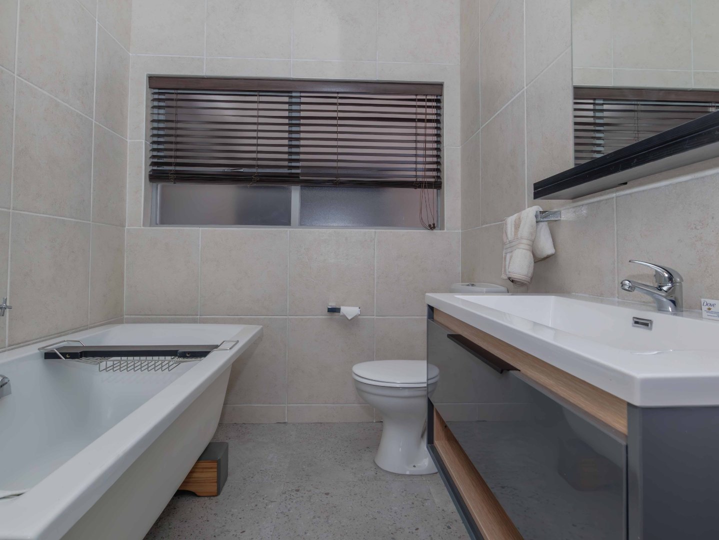 Discover this modern 59 m2 flat boasting tiled flooring throughout and a sleek granite kitchen countertop. The unit features a spacious lounge, two bedrooms, and a well-appointed bathroom. The kitchen is designed with a stylish, up-market aesthetic, including a breakfast nook for casual dining. Outside, enjoy access to a garden, pool, and braai area, perfect for relaxation and outdoor entertaining. Additional amenities include covered parking and 24-hour security with gated manned access and clever "dancing" lights for added safety. Residents also benefit from exclusive access to a gym and squash court. Don't miss out on this opportunity to own a sophisticated urban retreat with all the conveniences for modern living.