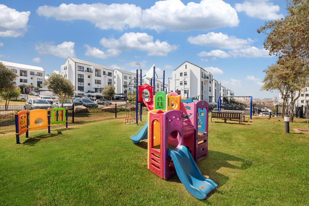 Spacious 2 Bedroom, 2 bathroom unit on the 3rd floor in Greenstone Ridge. Open plan modern kitchen with loads of cupboard space. Sun filled North facing lounge leading out onto patio. 2 parking bays. Lifestyle Centre with gym, swimming pool, Spa, restaurant and play area for the kids