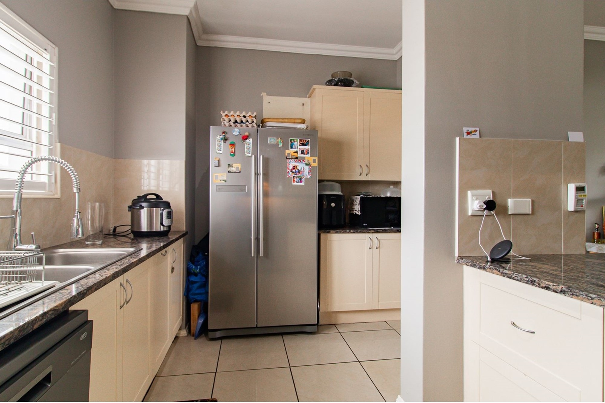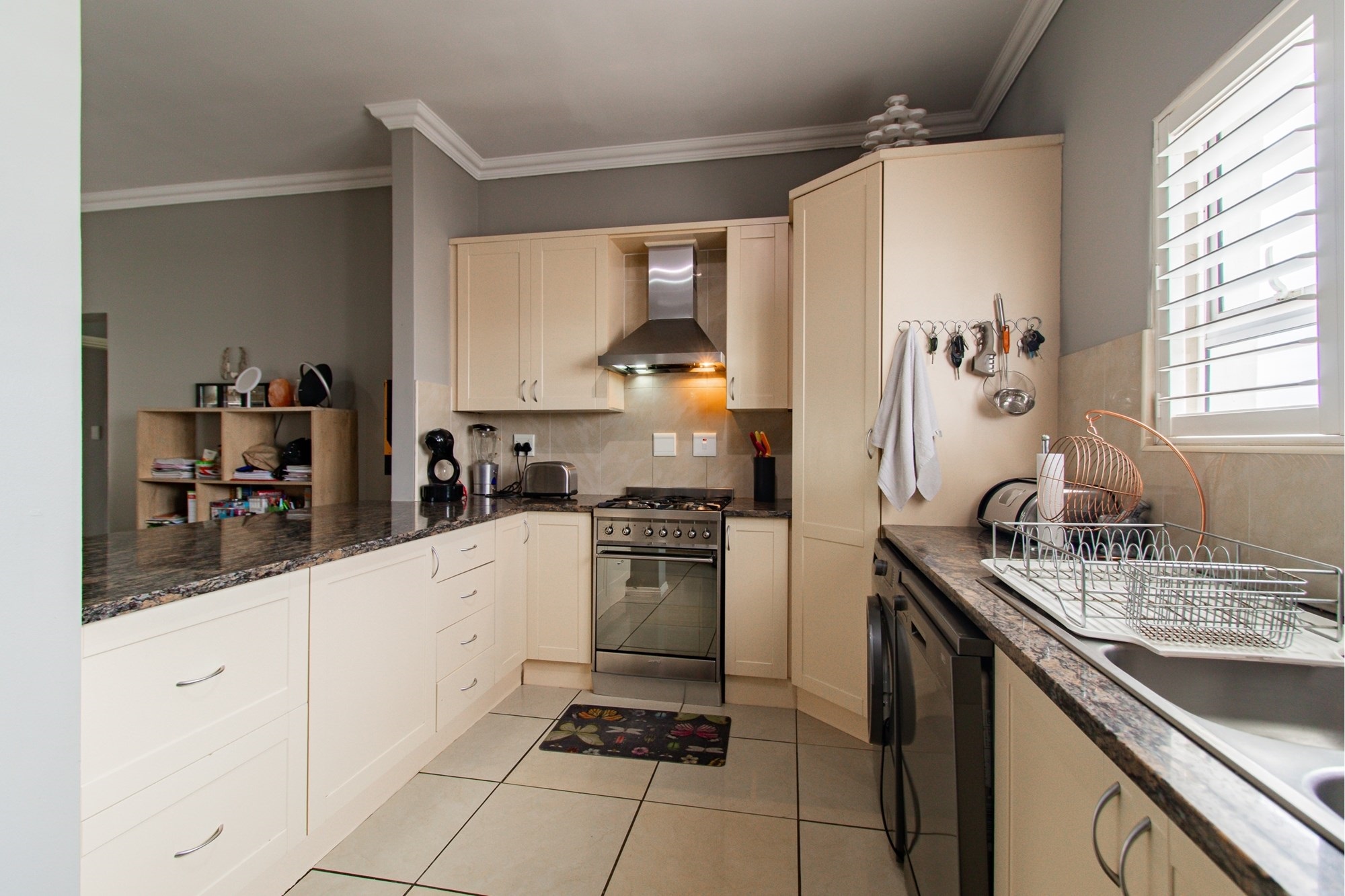 The spacious living area is bathed in natural light, which seamlessly extends to a sun-drenched balcony, complete with a built-in braai—ideal for relaxed evenings or entertaining guests. The sleek, modern kitchen is well-appointed with ample storage, generous counter space, a gas hob and oven, room for water appliances, and space for a double-door fridge, the sunset views offered from the kitchen window are just breathtaking.