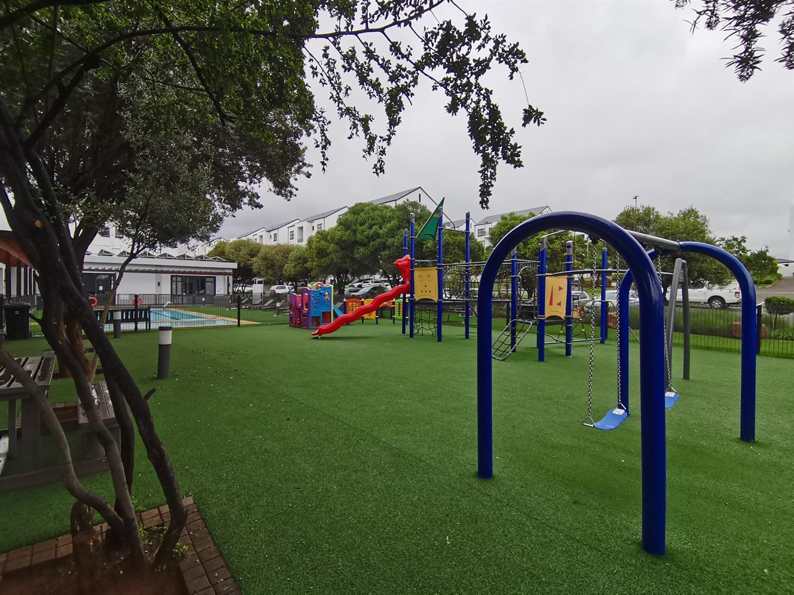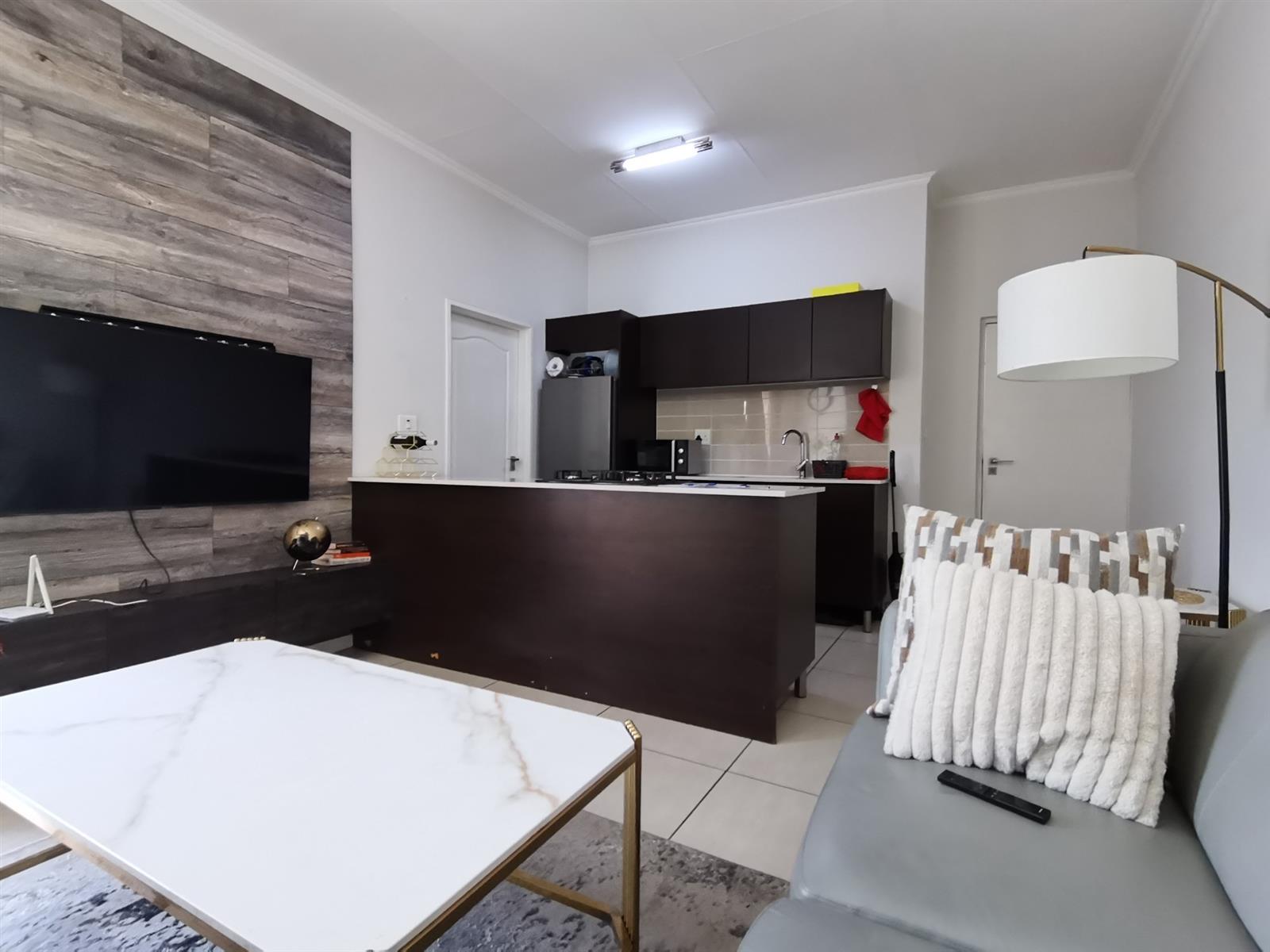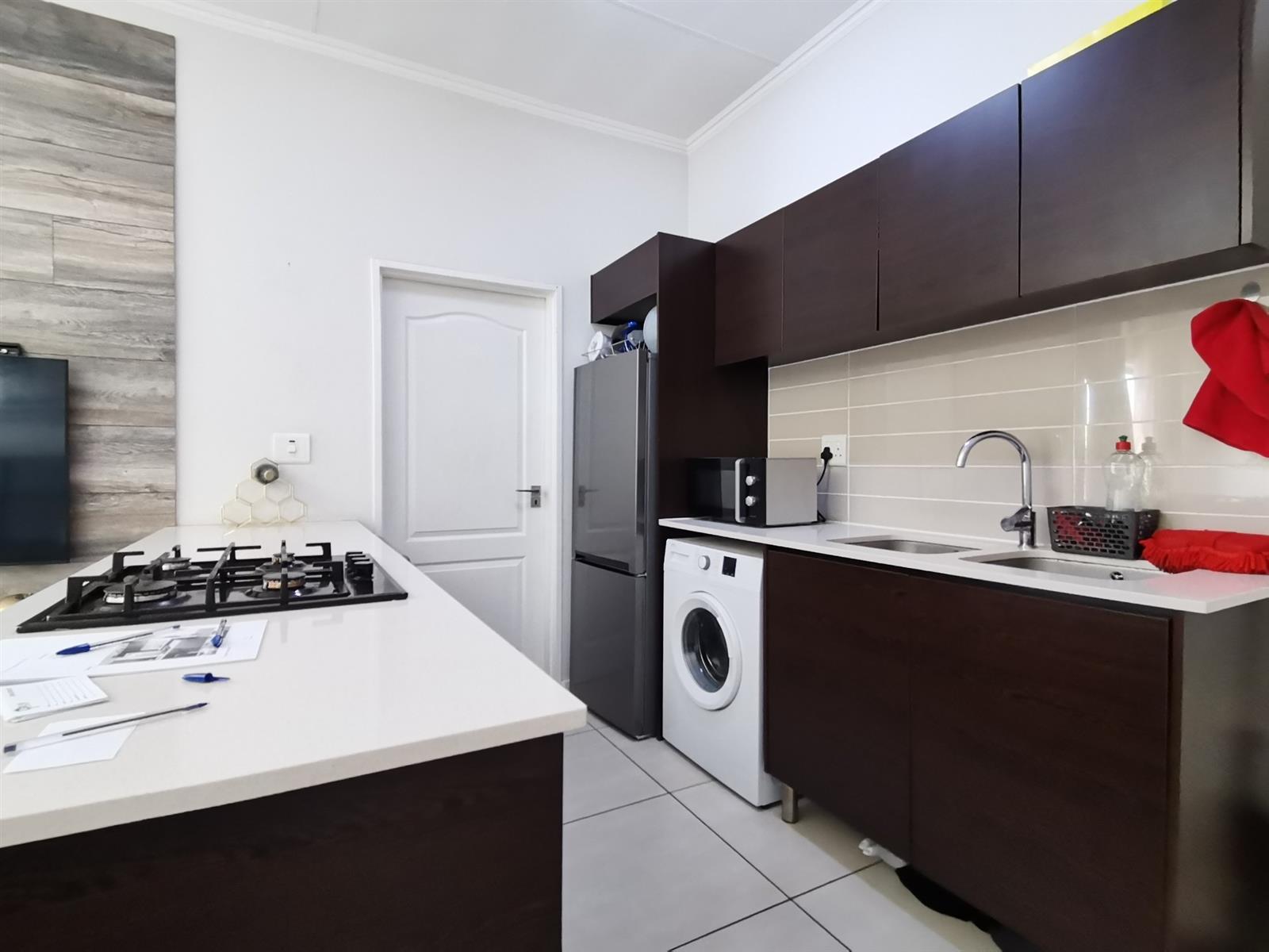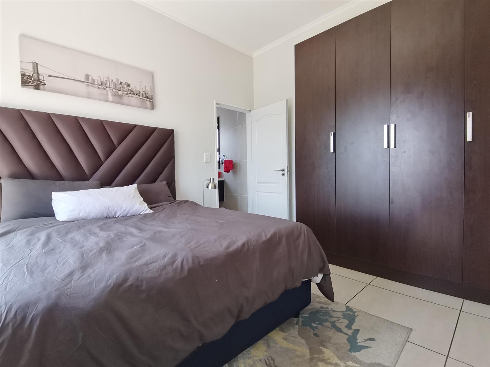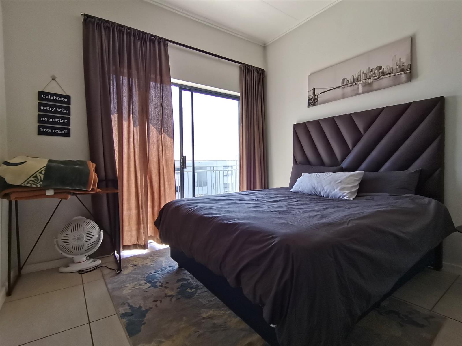 The open-plan layout features a spacious lounge and a well-appointed kitchen, complete with three quality appliances—a fridge, washing machine, and dishwasher—as well as a gas hob and electric oven. The well-sized bedroom offers floor-to-ceiling built-in cupboards, direct balcony access, and a sleek en-suite bathroom. Both the lounge and bedroom open onto a private balcony, the perfect spot for a morning coffee or a relaxed sundowner.