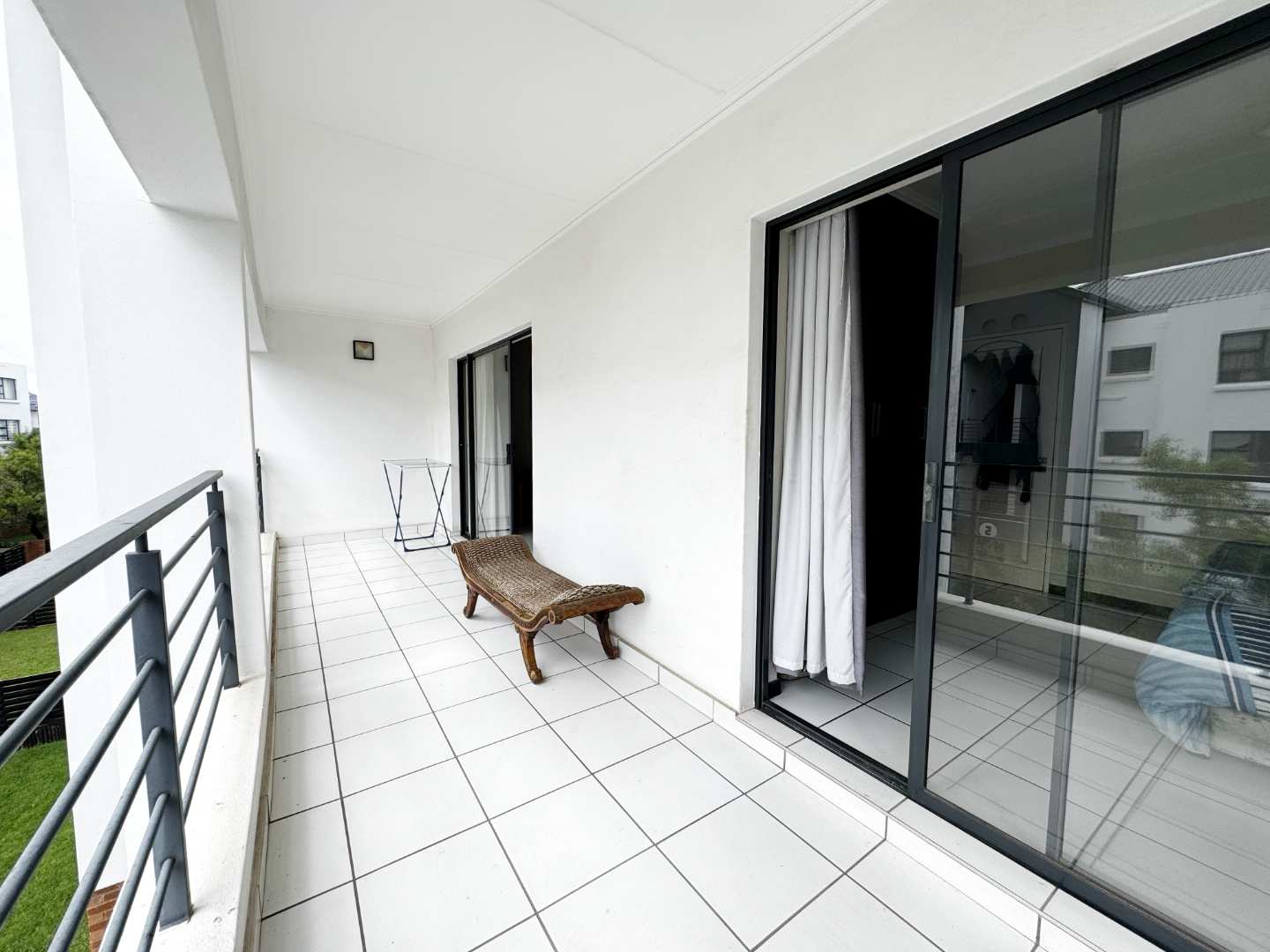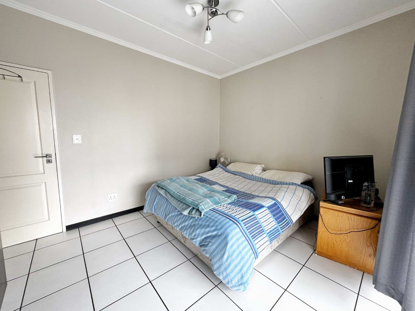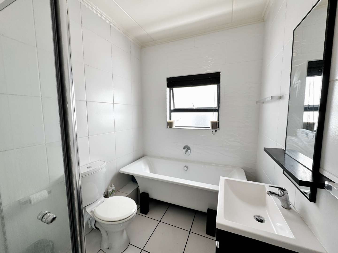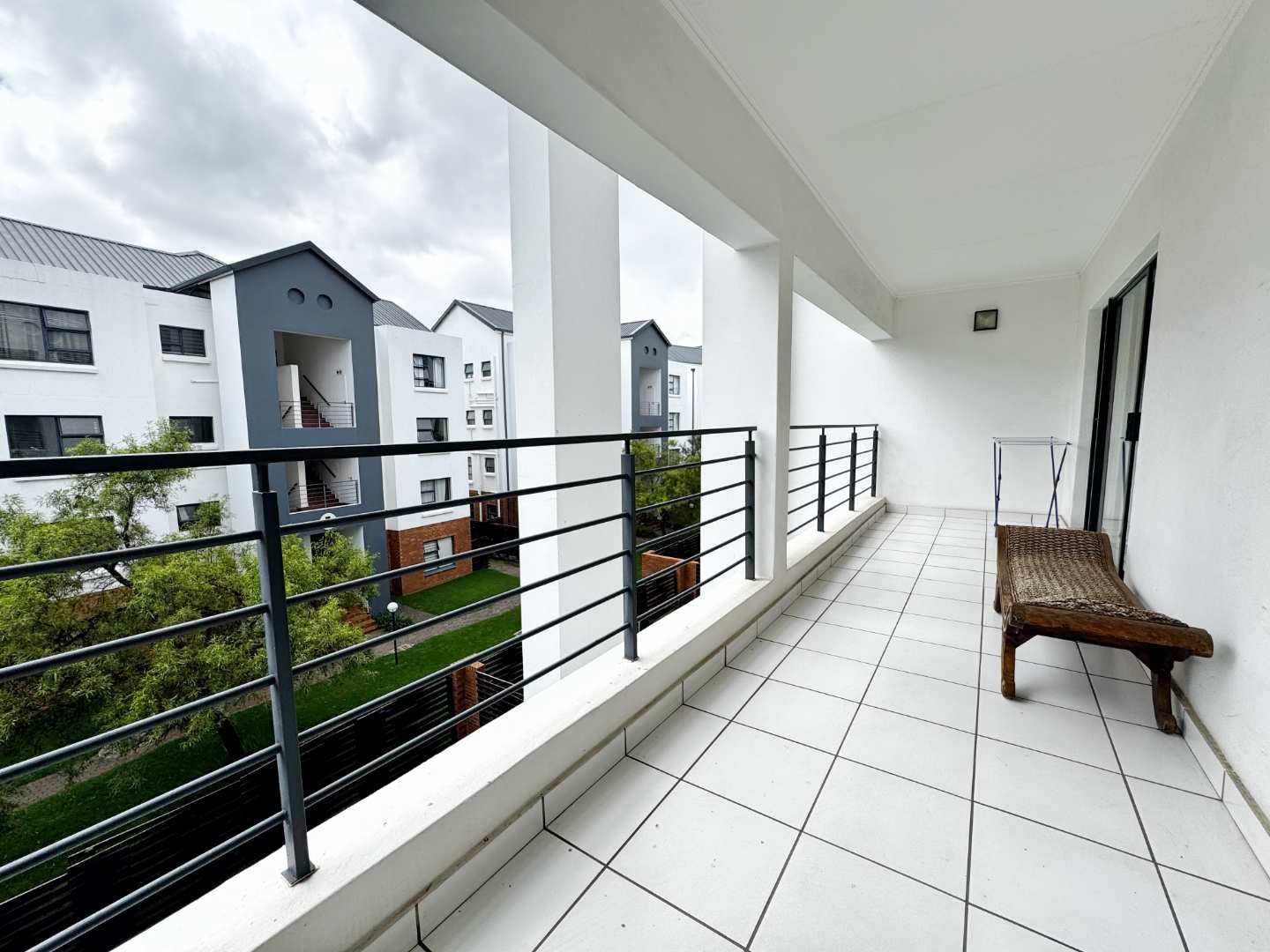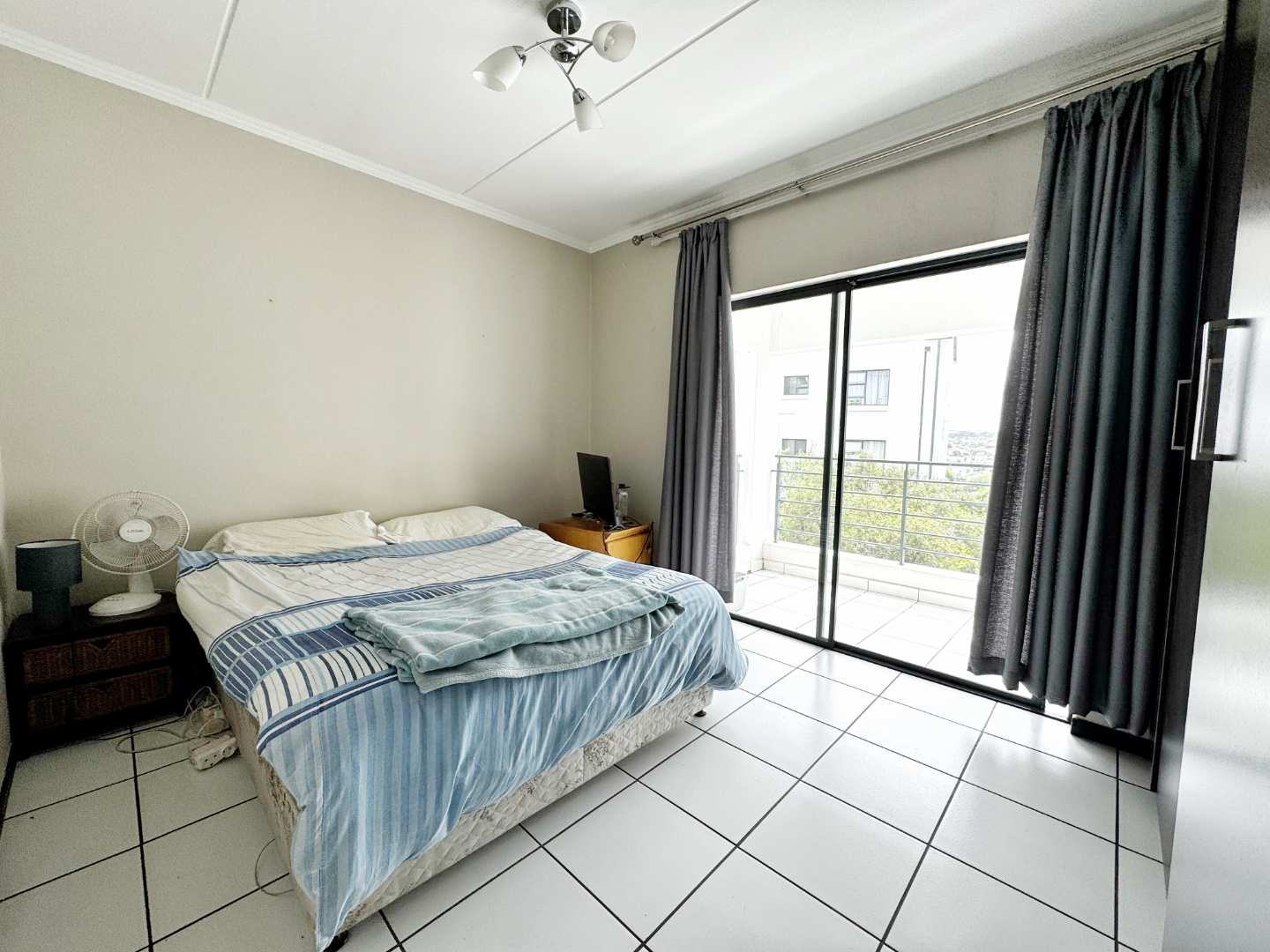 Chic one- bedroom apartment in a secure complex, featuring an open- plan lounge and kitchen adorned with modern fittings.