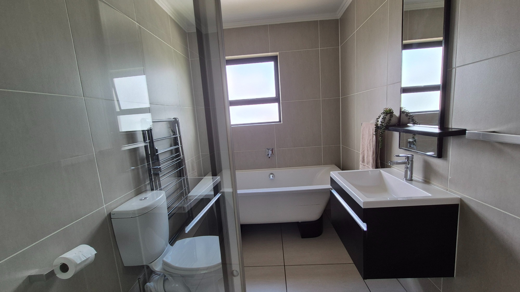 Minutes away from Greenstone Shopping Centre and Stoneridge Centre. Modderfontein Nature Reserve is nearby for scenic walks and outdoor activities. Emperors Palace Casino is a short drive away for dining and entertainment.