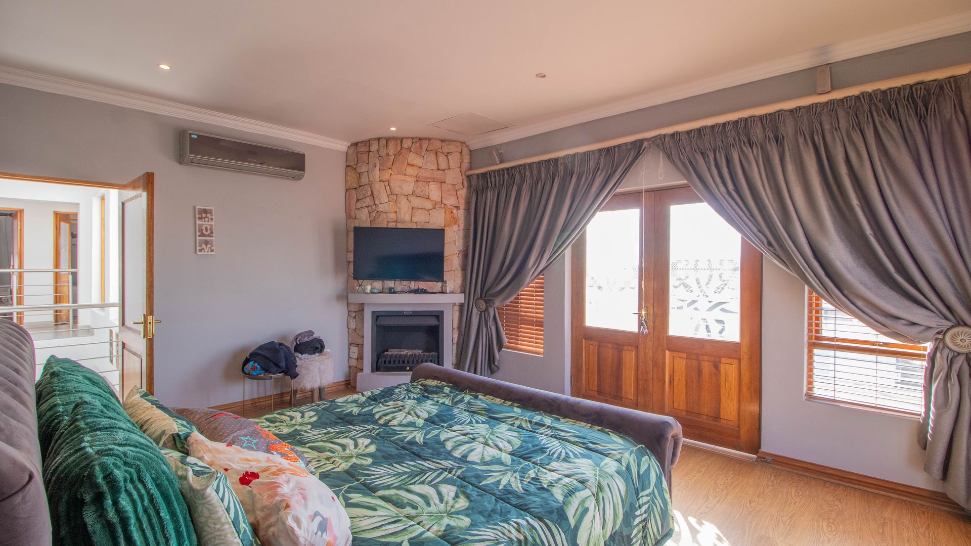 Main bedroom gas fireplace, underfloor heating with en-suite bathroom and private balcony large shower, large bath tub, heated towel rail