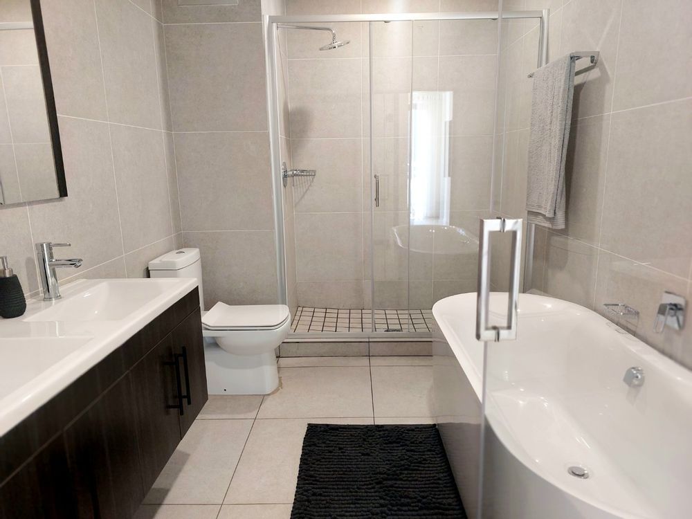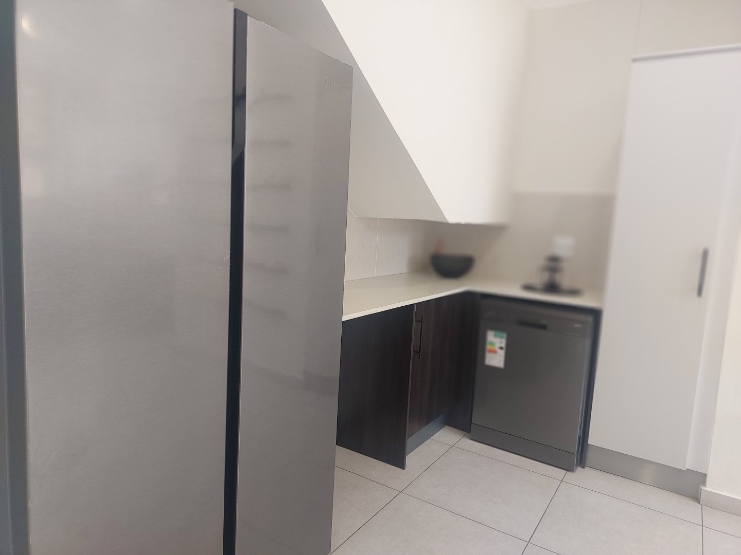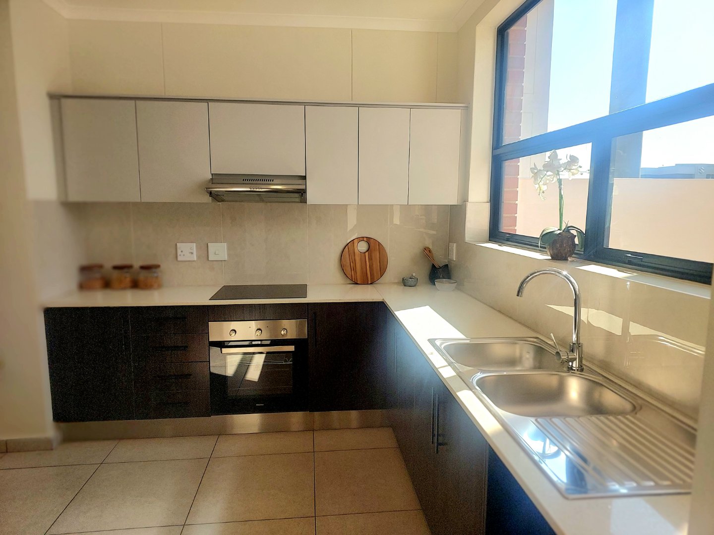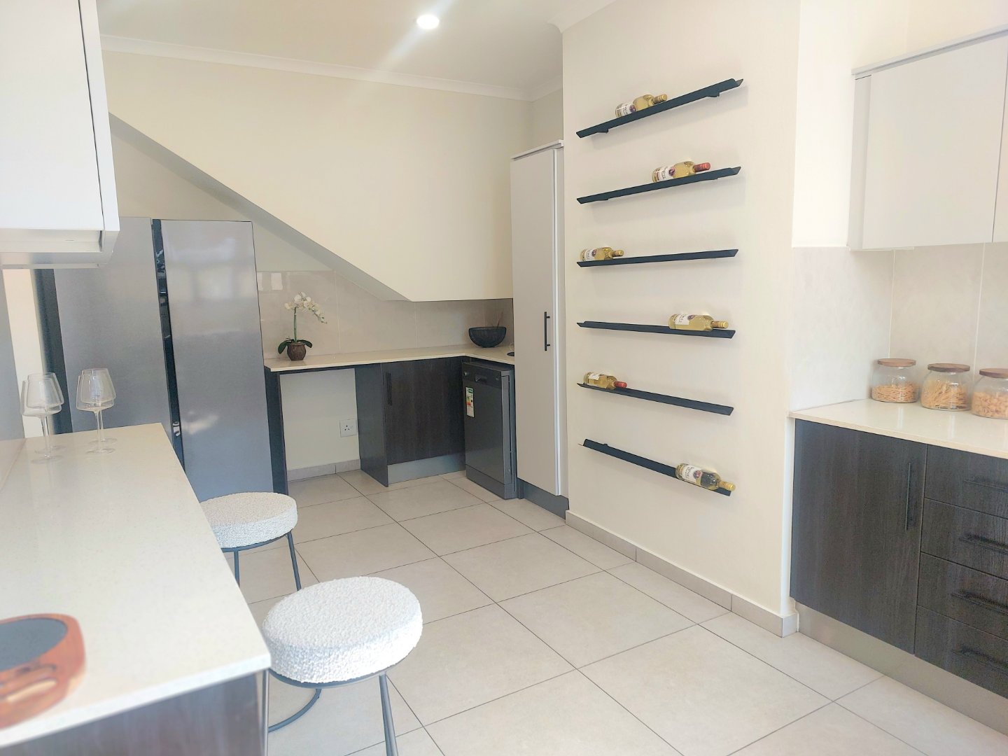 Live your life in comfort and style, all set inside the very secure Emerald Skye lifestyle Estate. From the first moment you walk into this 3 bedroom 3.5 bath room duplex, you will fall in love with the modern finishes, abundant light, space and outlay, designed to elevate your living environment. Functionality, is added, with the open plan kitchen, and living space flows seamlessly onto the covered patio, and medium sized pet friendly, private garden. The kitchen is fitted with beautiful Caesarstone tops, modern finishes, fitted with an electric Glass Hob and oven with extractor fan. The 3 bedrooms offers modern built in, cupboards, and provide ample space for Queen size beds. Each Bedroom has got it's own private bathroom, and there is a guest toilet and basin downstairs to ensure convenience. The potential is endless. Added benefits of living in Emerald Sky:
