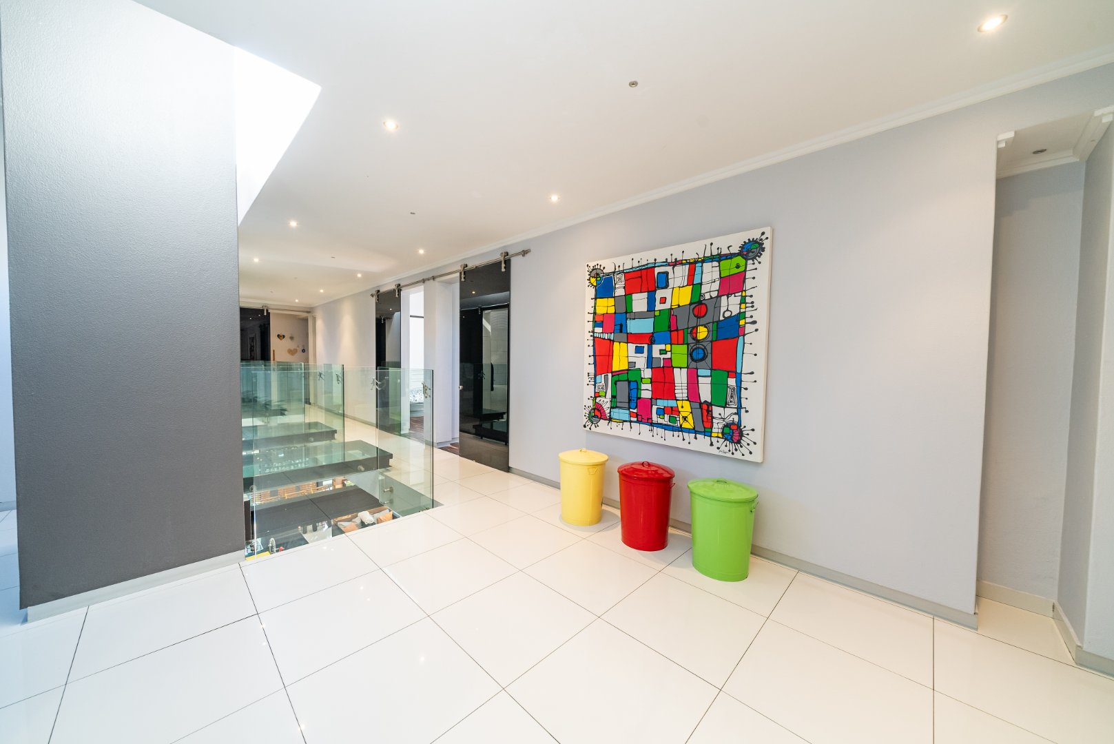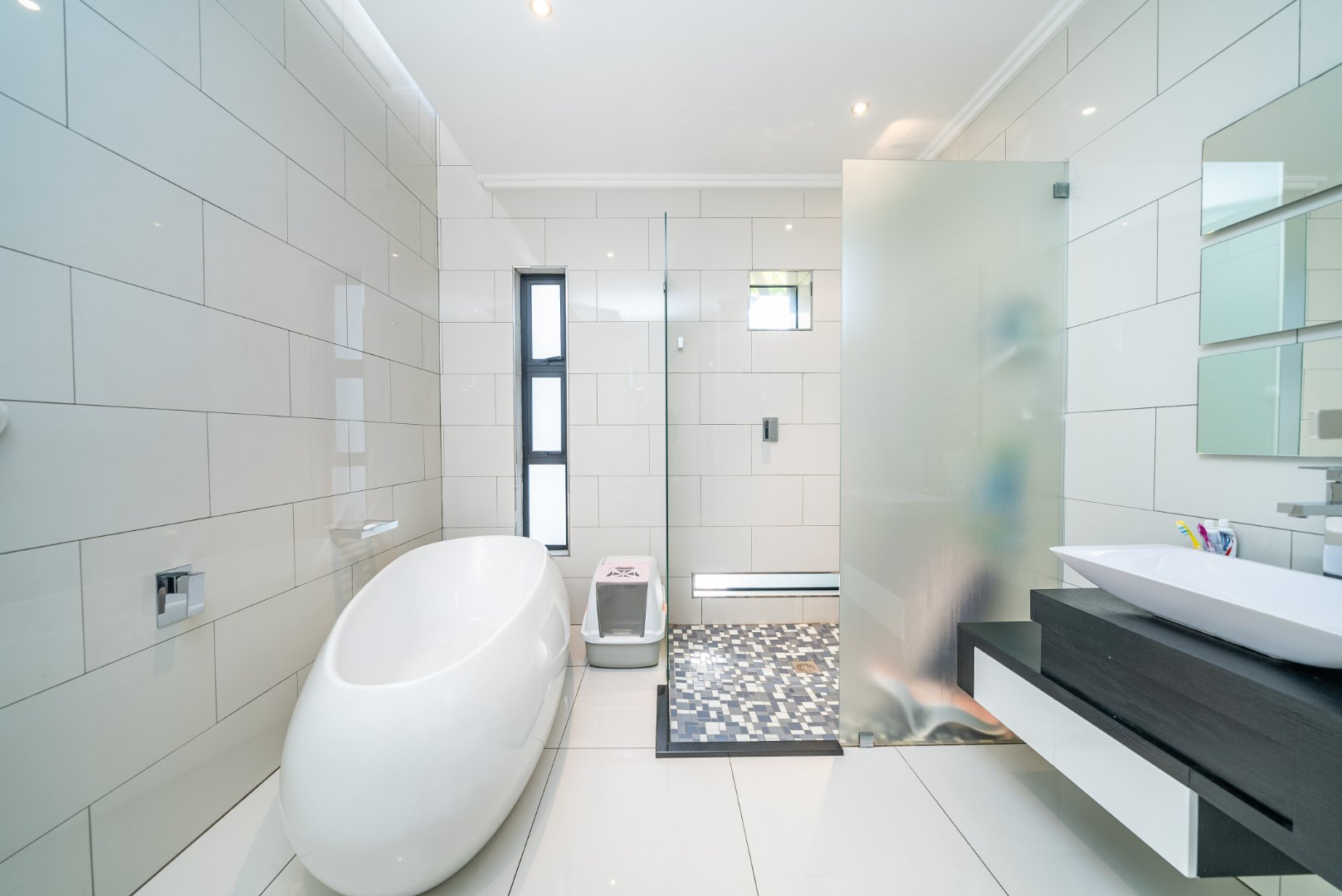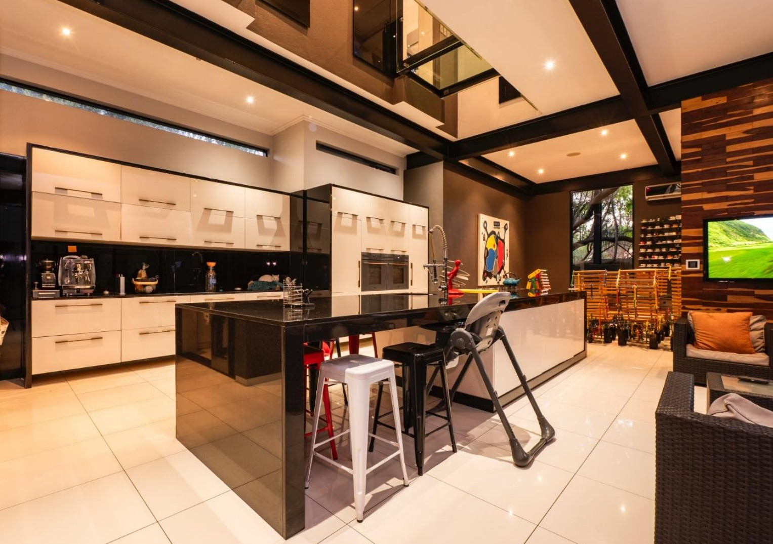 An elegantly curved staircase leads to the rooftop entertainment area, designed for memorable evenings under the stars. With built-in braai facilities and sweeping views of Greenstone and its magnificent sunsets, it’s the ideal space for entertaining family and friends.