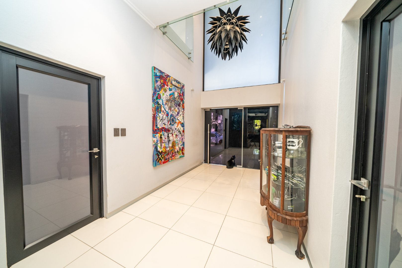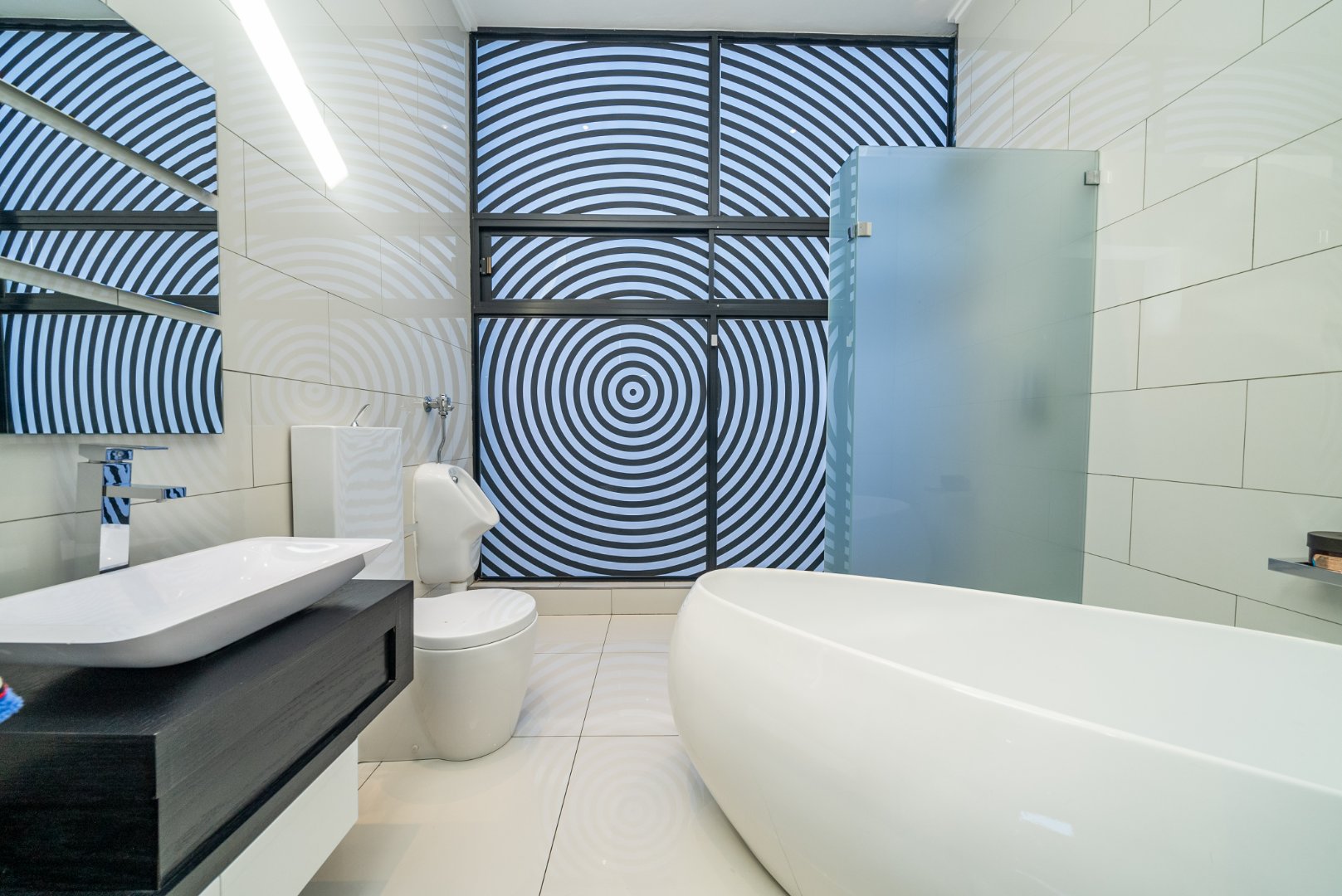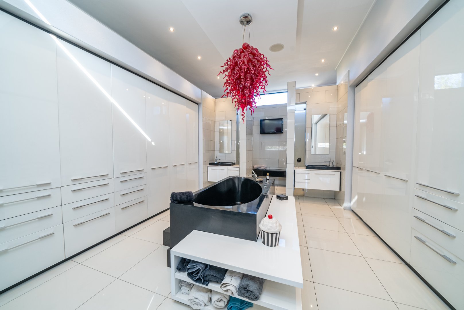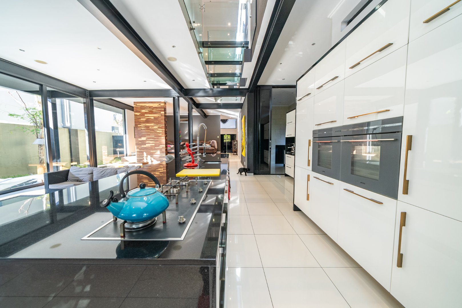 An elegantly curved staircase leads to the rooftop entertainment area, designed for memorable evenings under the stars. With built-in braai facilities and sweeping views of Greenstone and its magnificent sunsets, it’s the ideal space for entertaining family and friends.