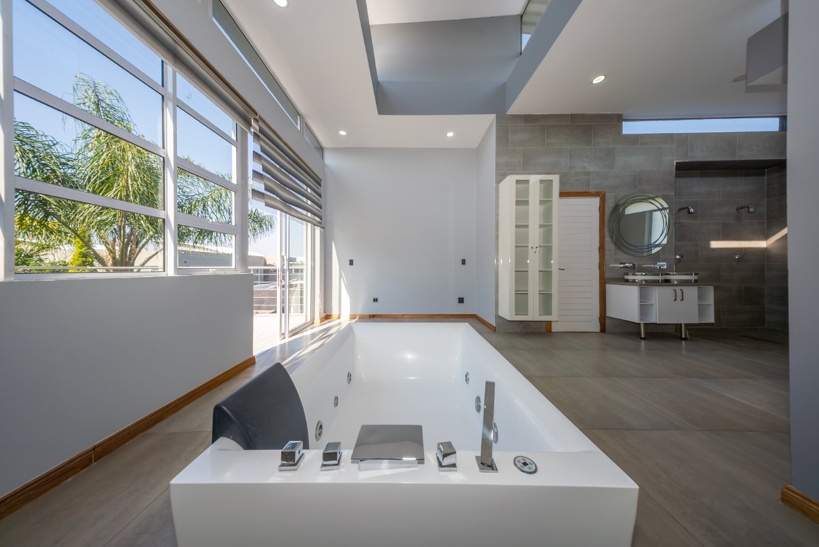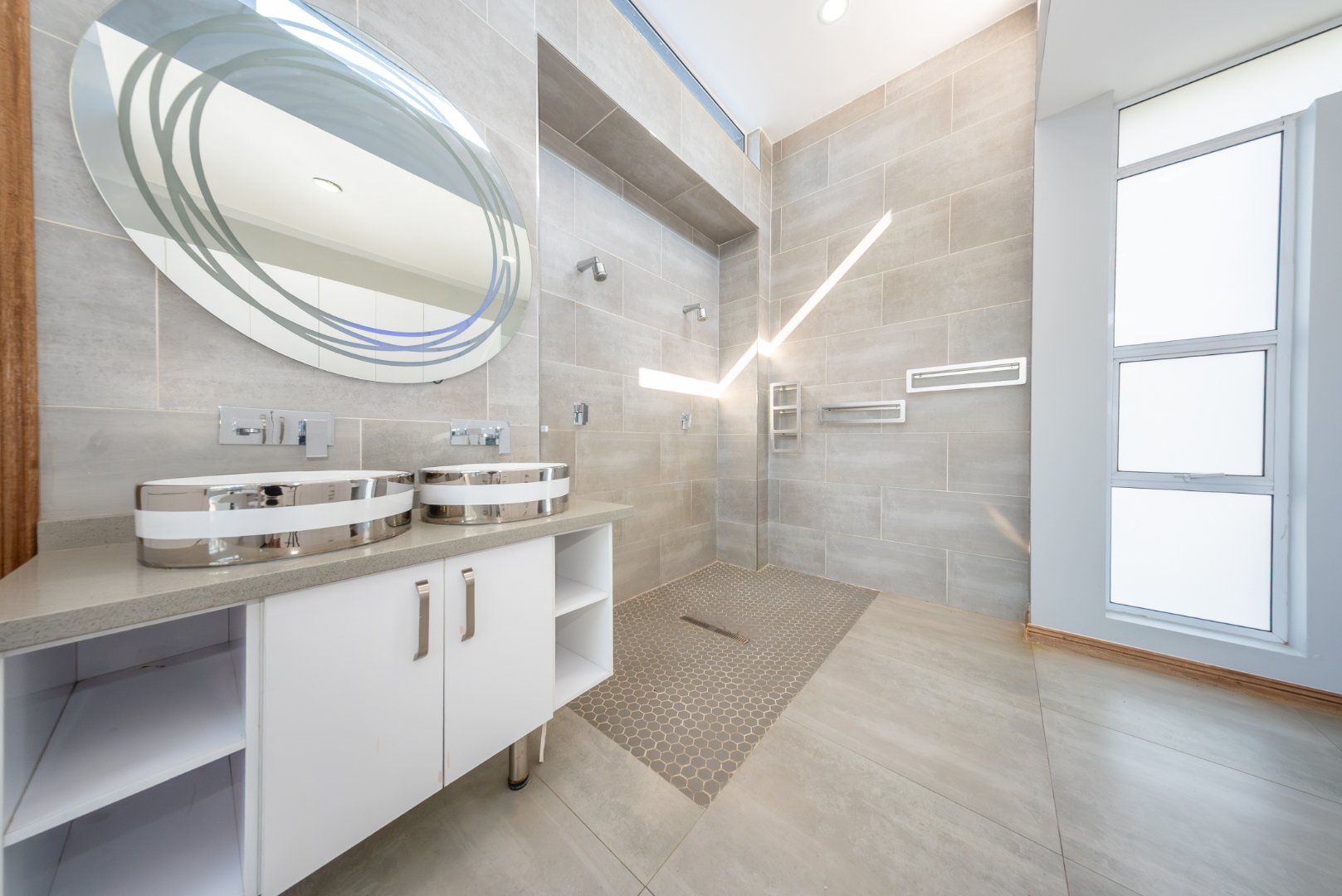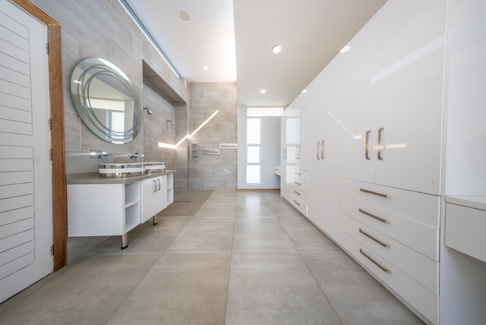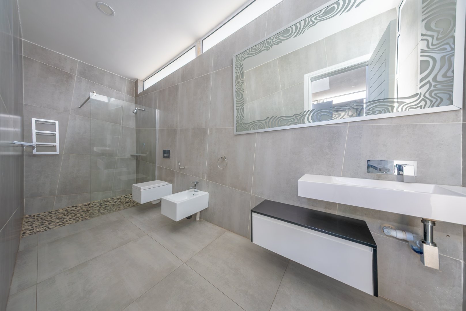 Upstairs boasts a second lounge and three generous bedrooms, each with its own modern bathroom. The master suite is a true standout, complete with a jacuzzi, expansive shower, and direct access to a sunny private patio — perfect for relaxing and unwinding.